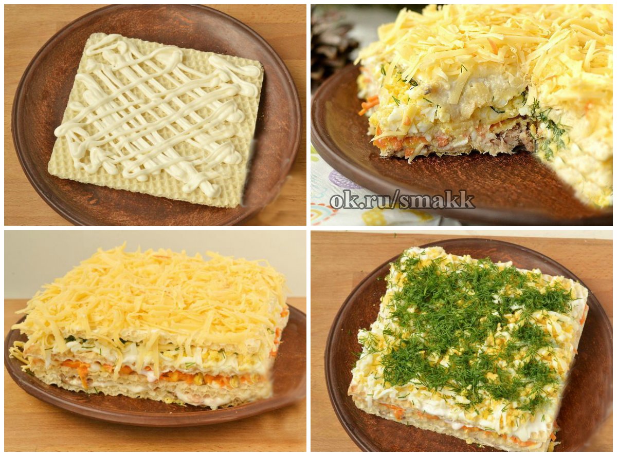 Салат с вафельными коржами