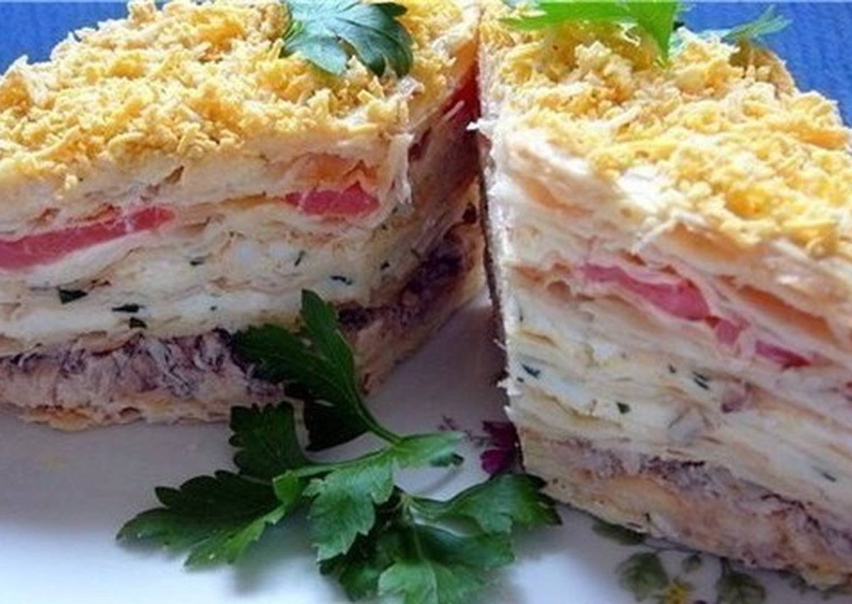 Закусочный торт Наполеон с консервой