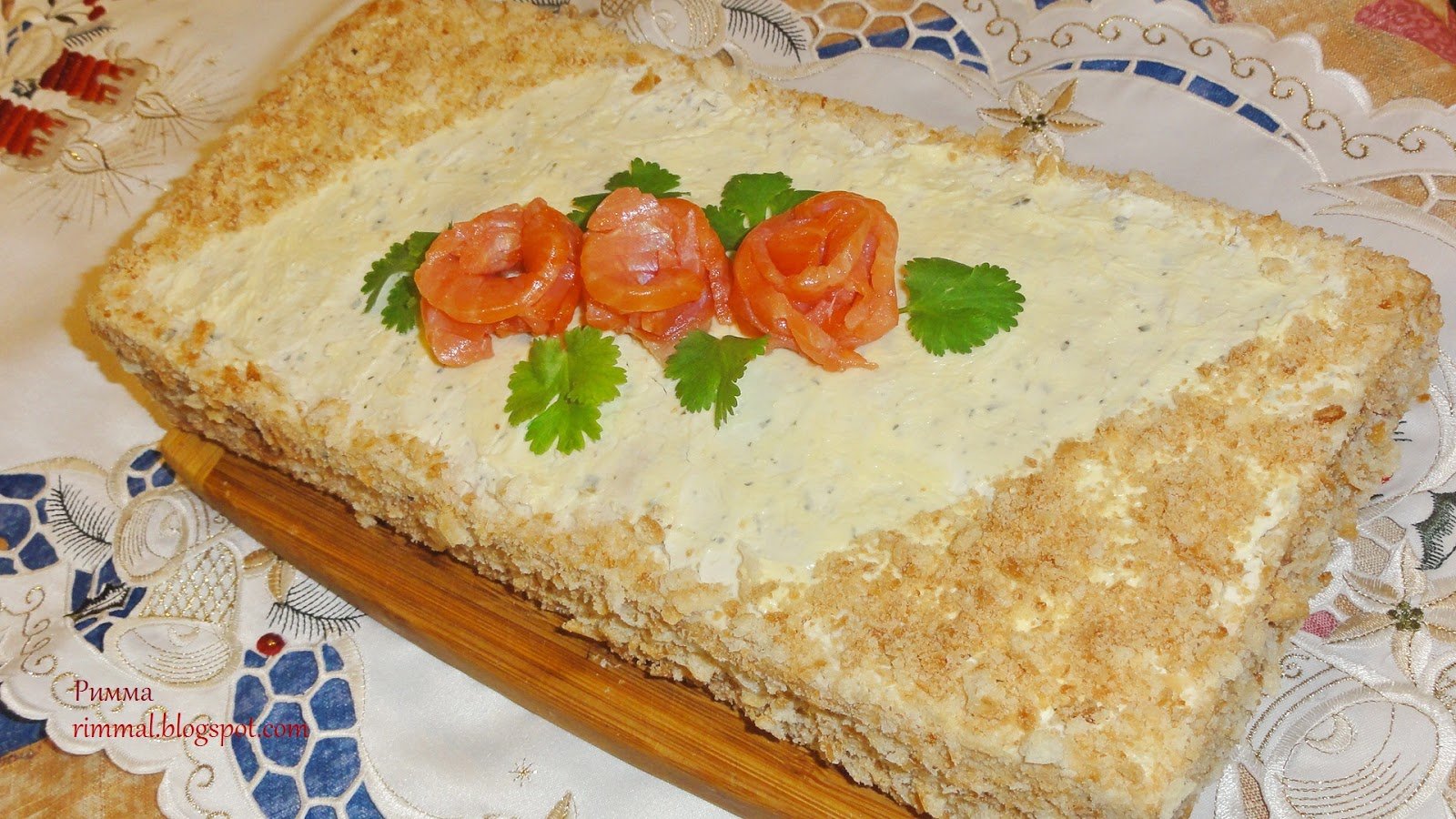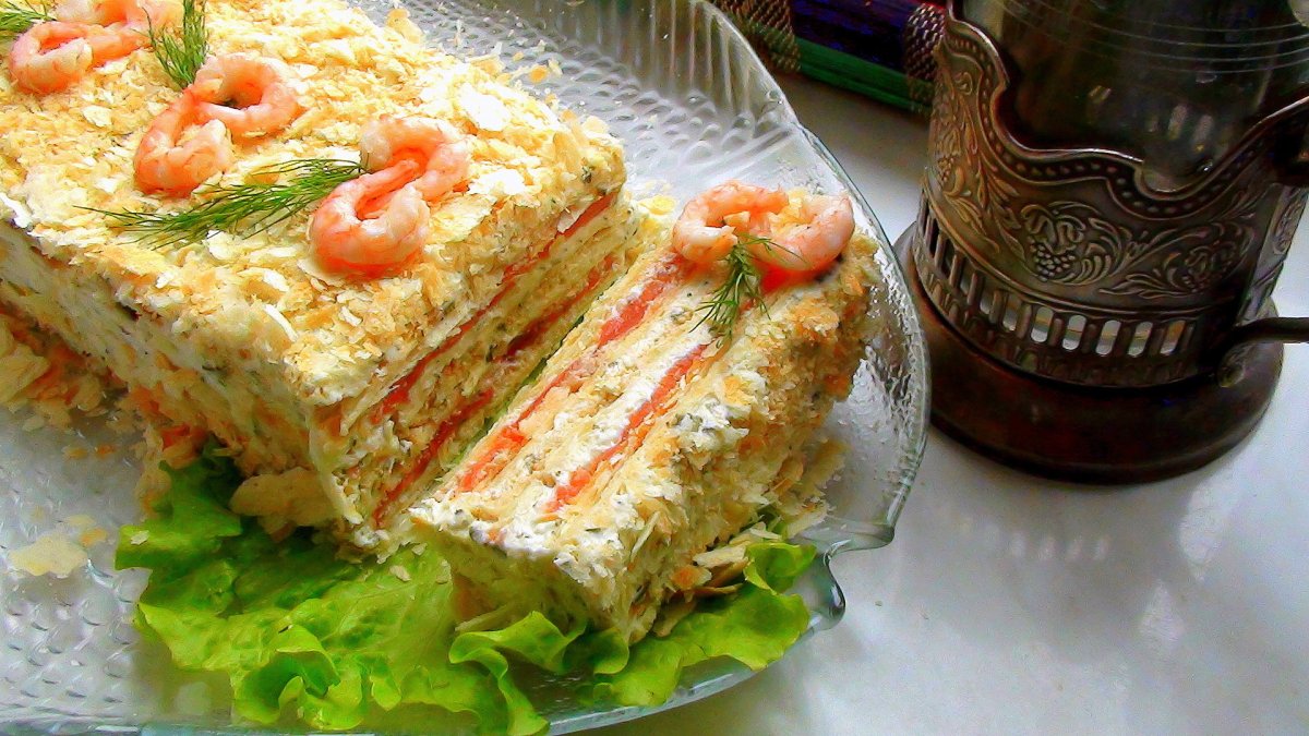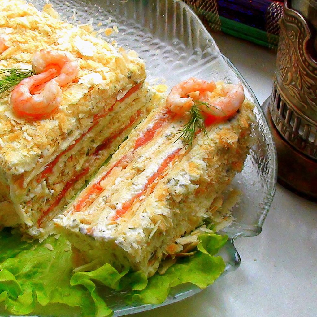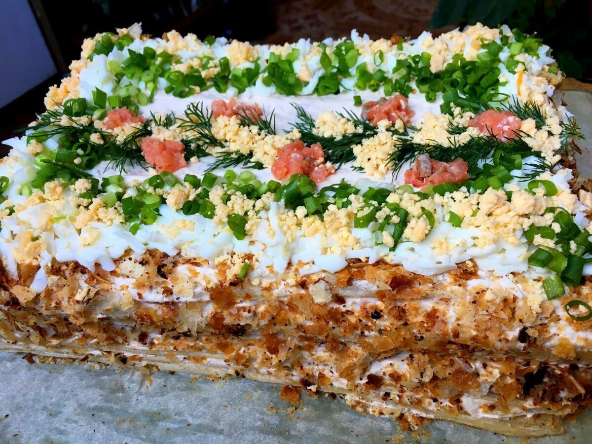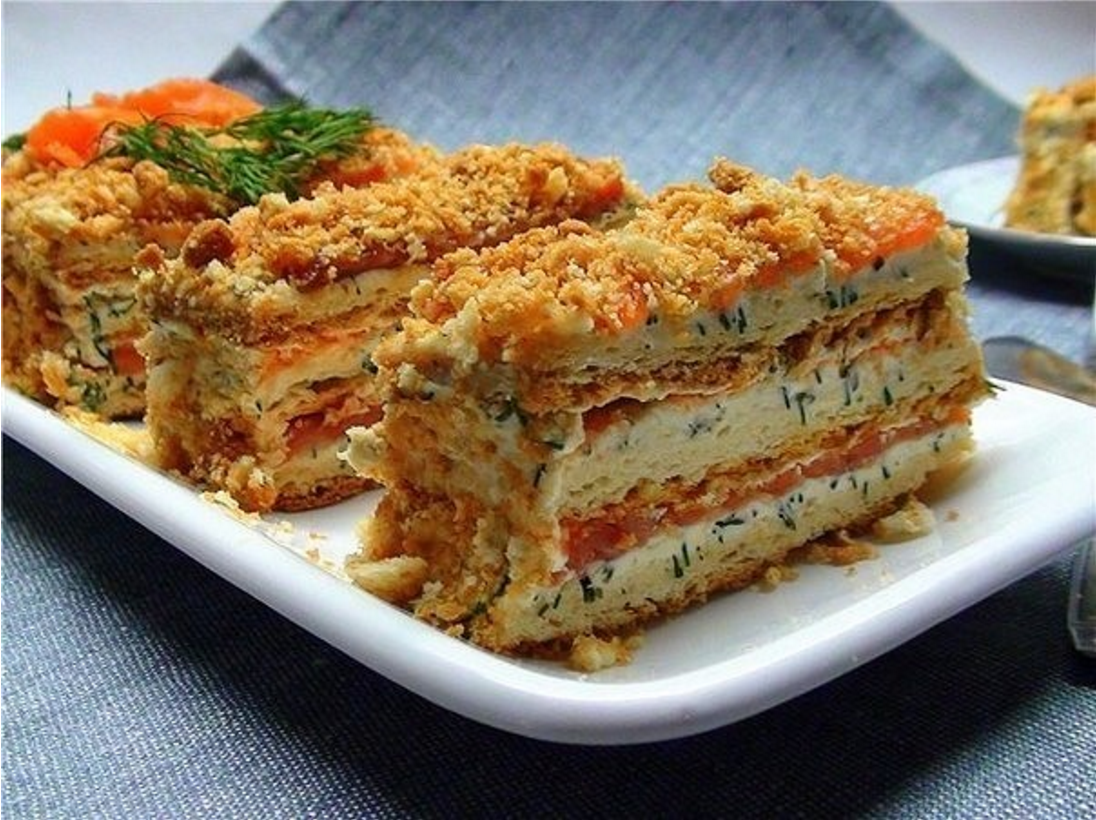 Закусочный торт Наполеон с семгой