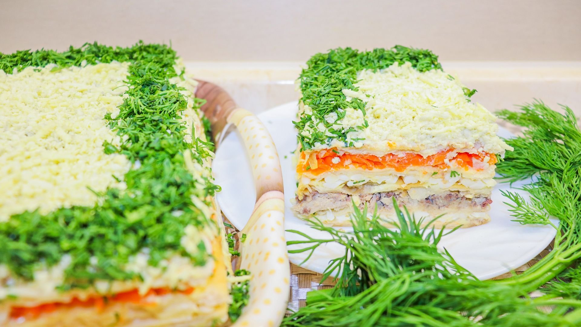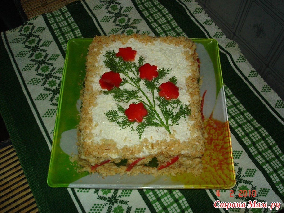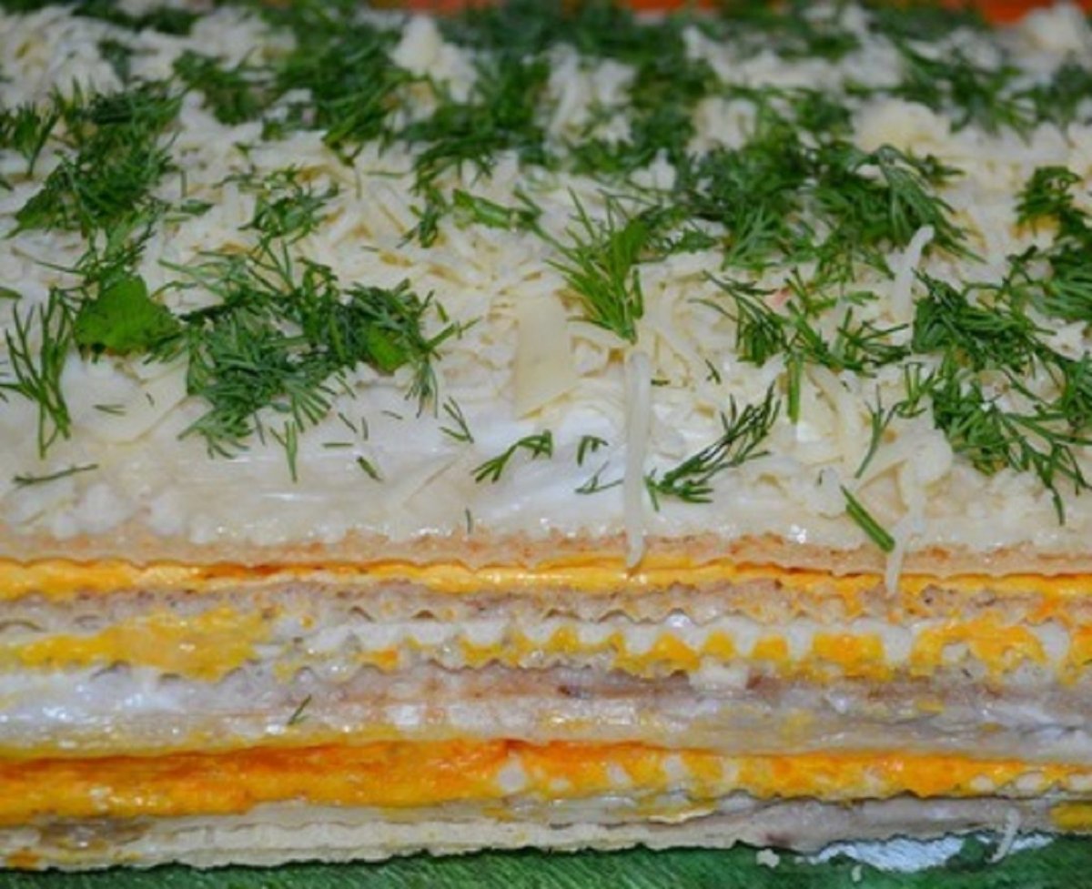 Селедочный торт на вафельных коржах