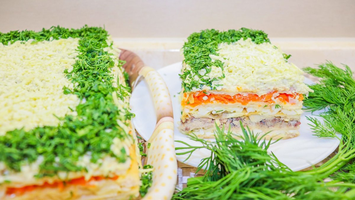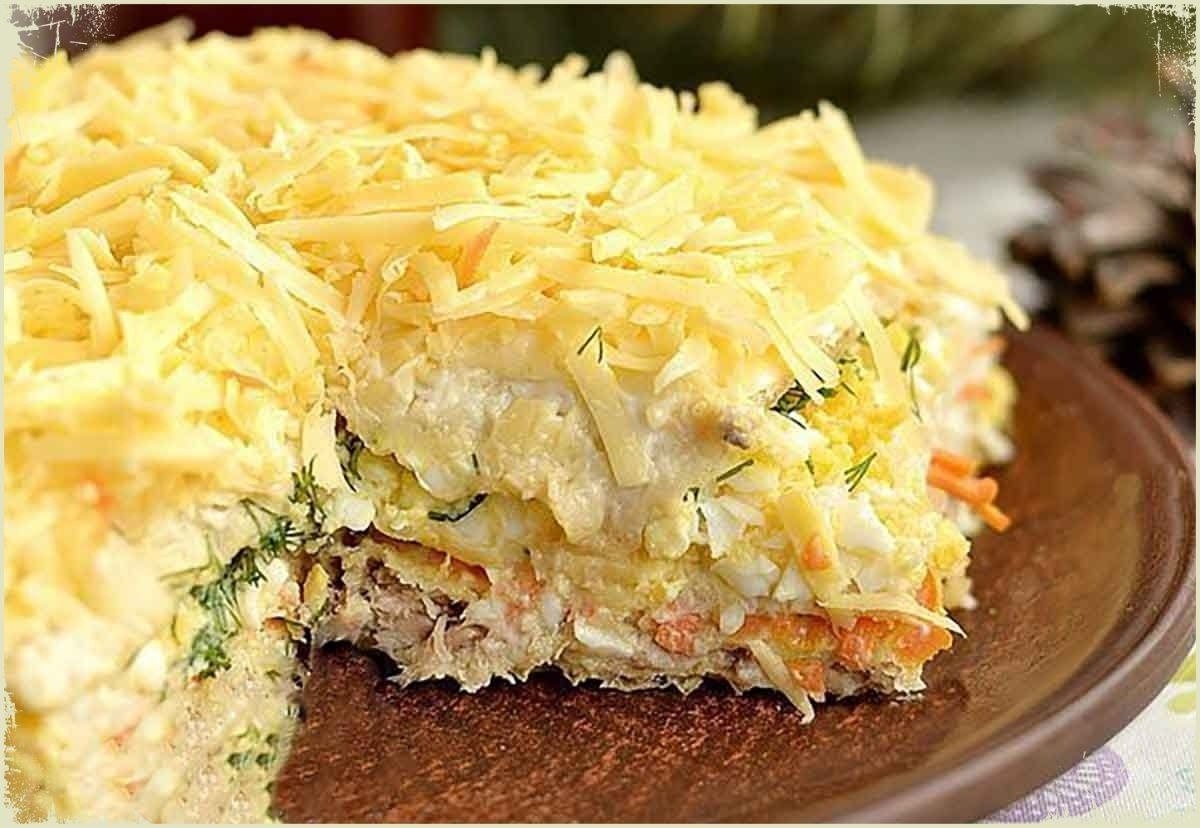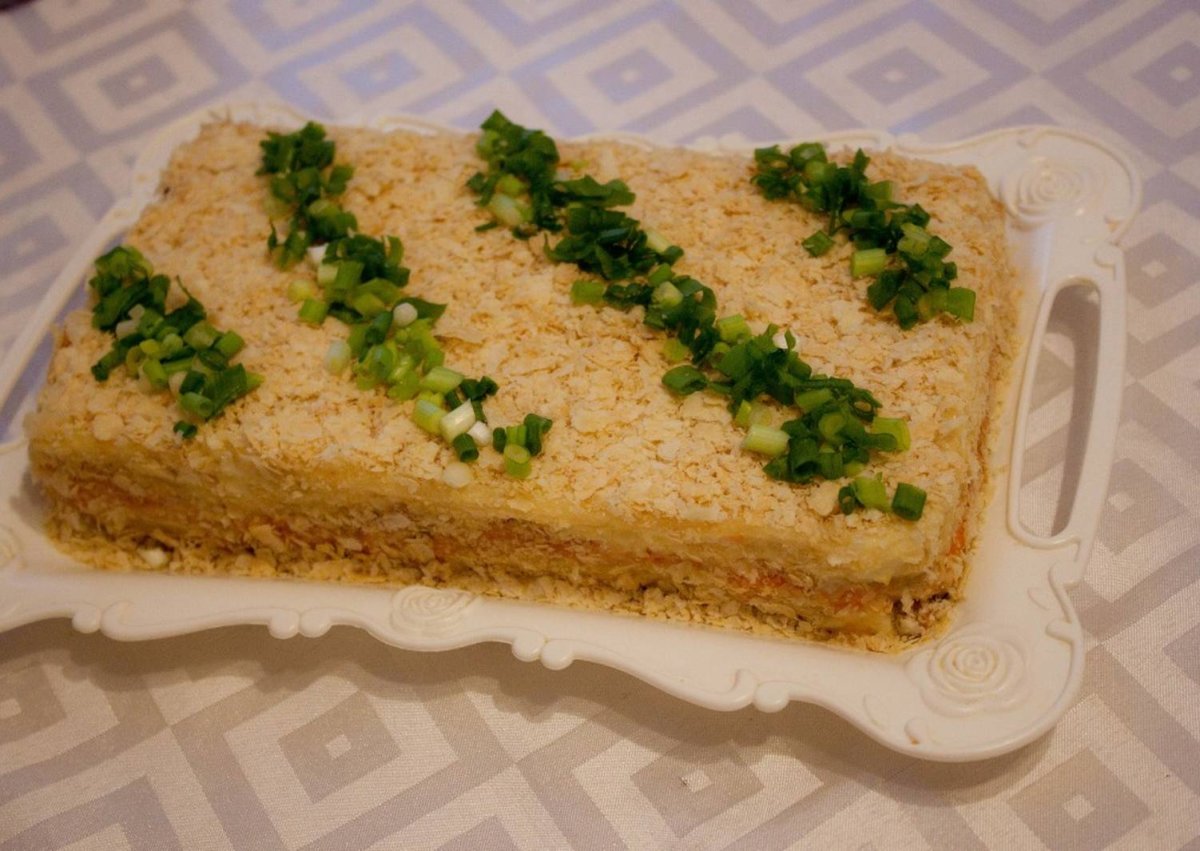 Салат закусочный Наполеон с рыбной консервой