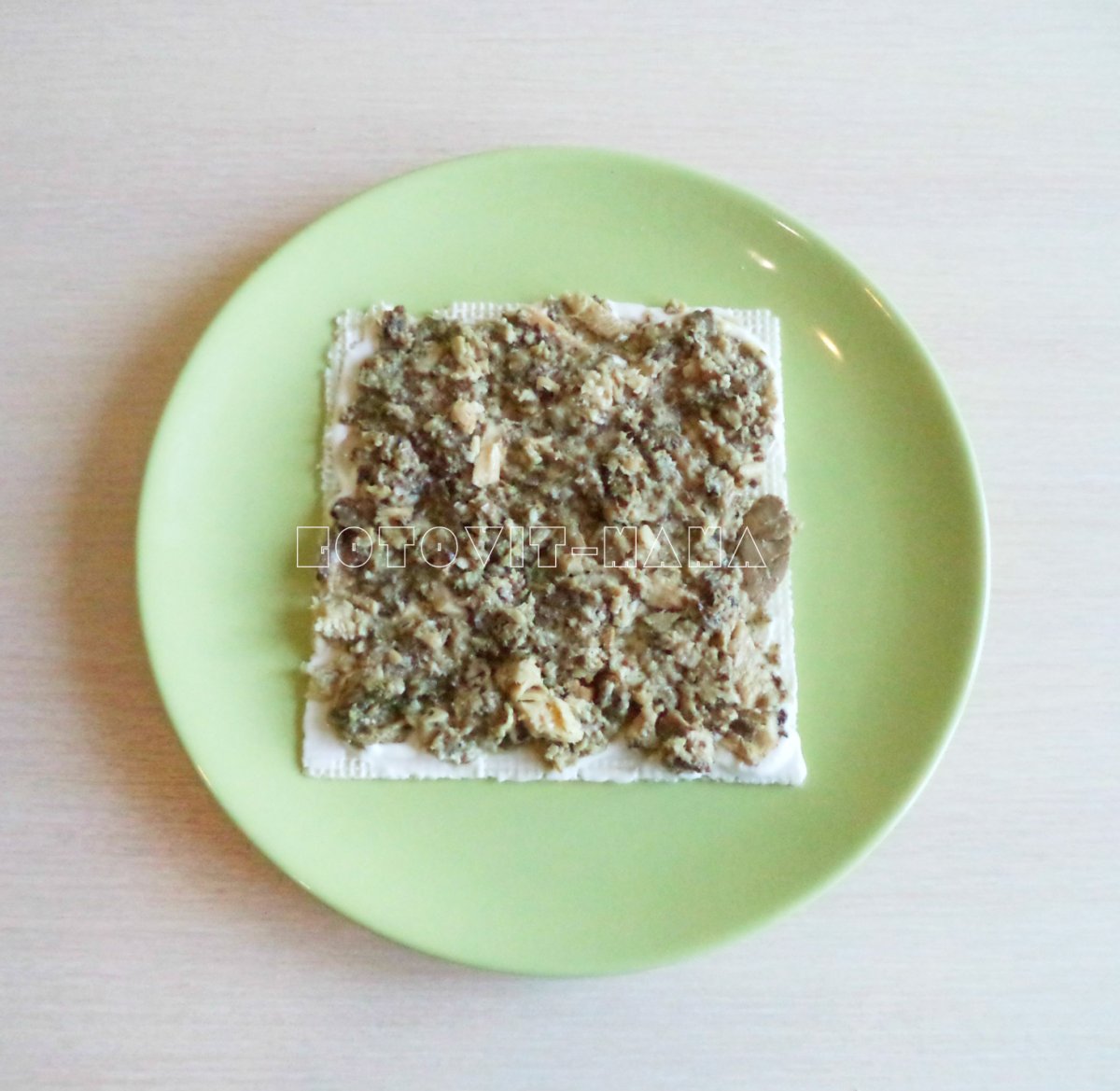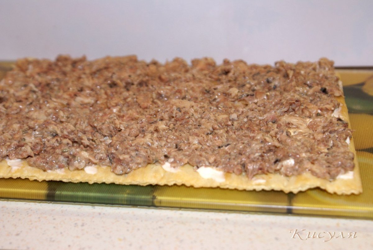 Готовые коржи Наполеон с рыбной консервой