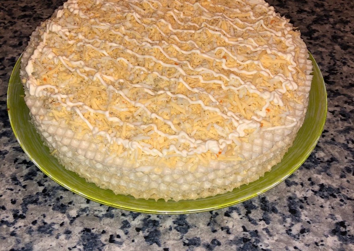 Вафельный торт закусочный с консервой рыбной