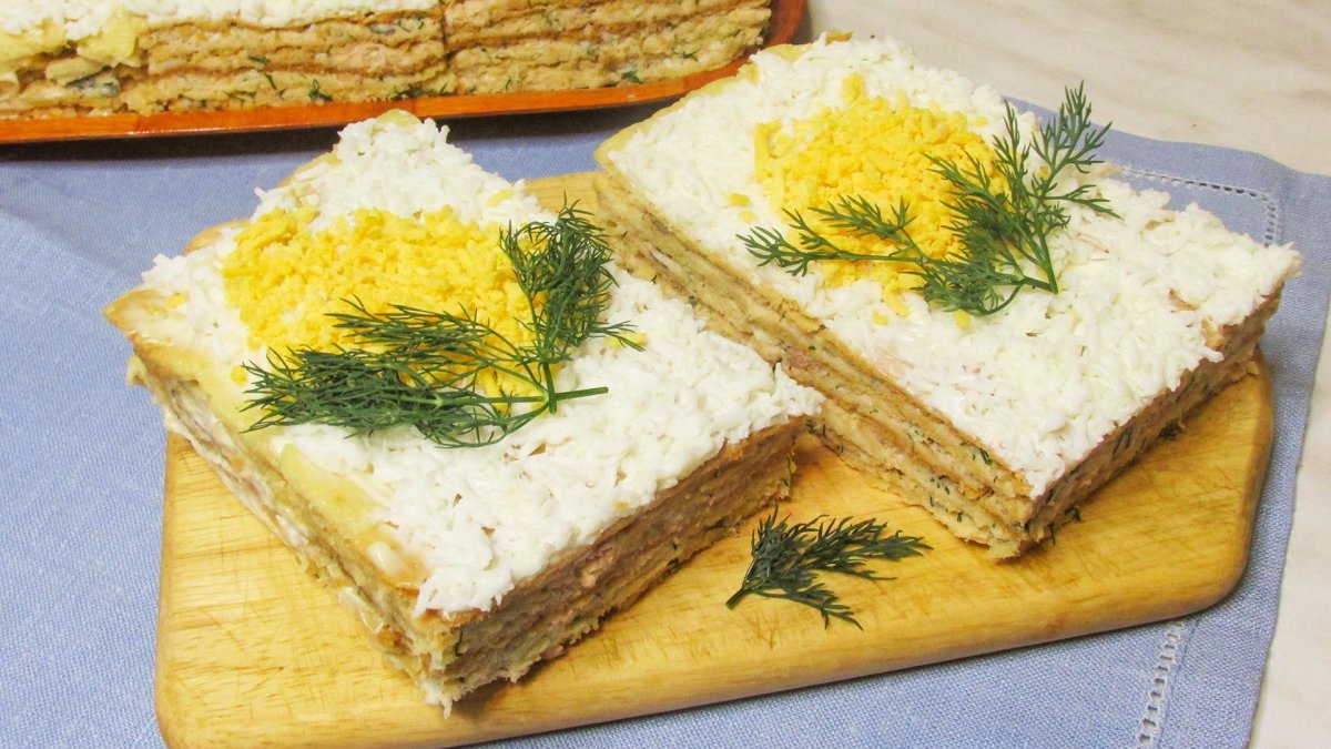 Закусочный Наполеон с рыбной консервой