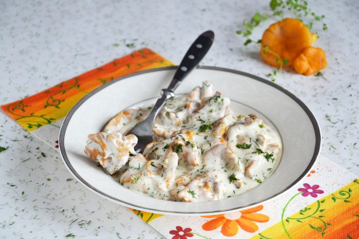Лисички в сметане