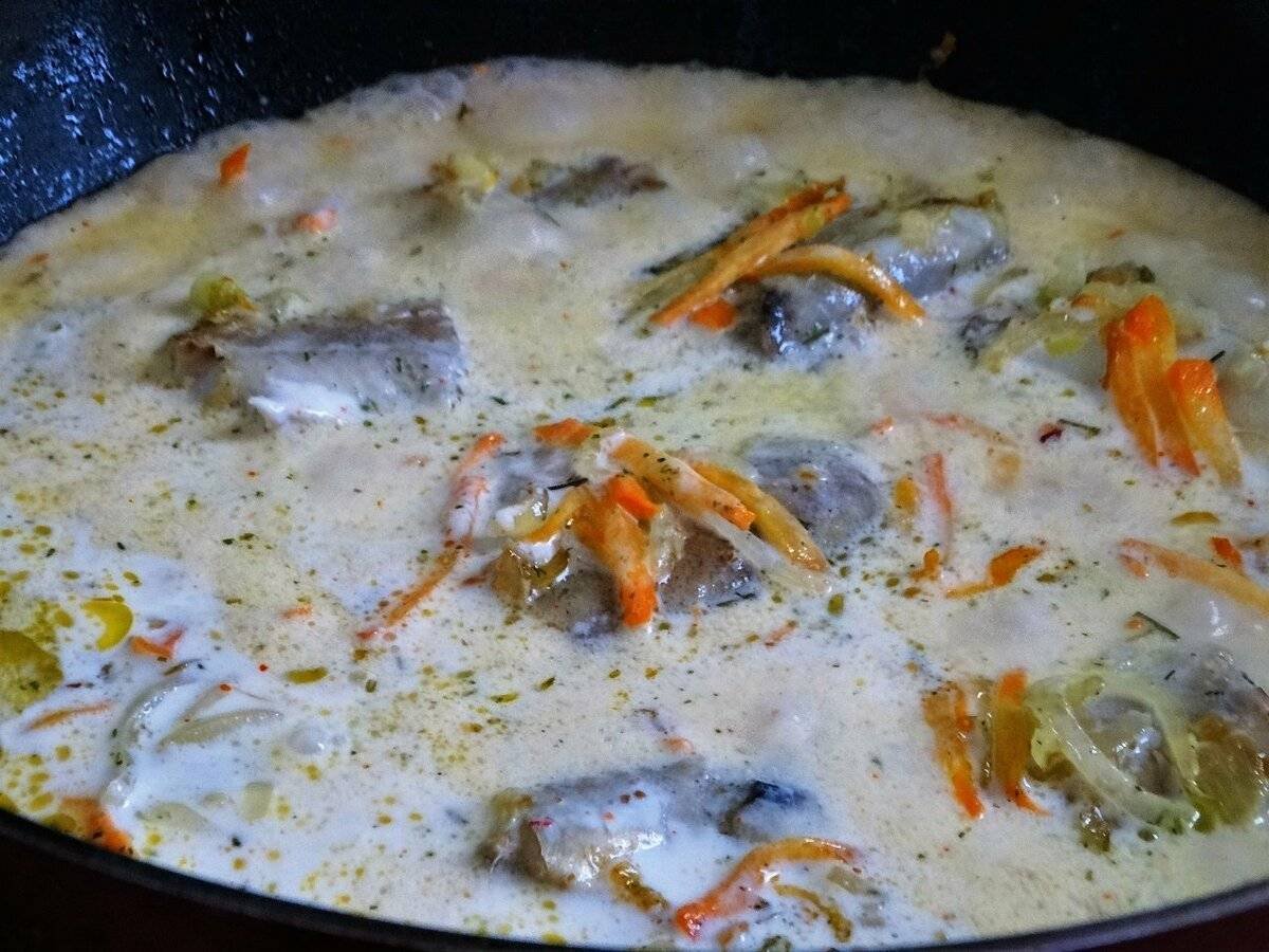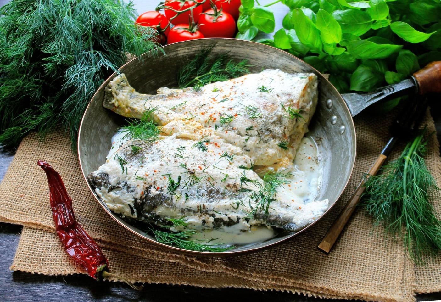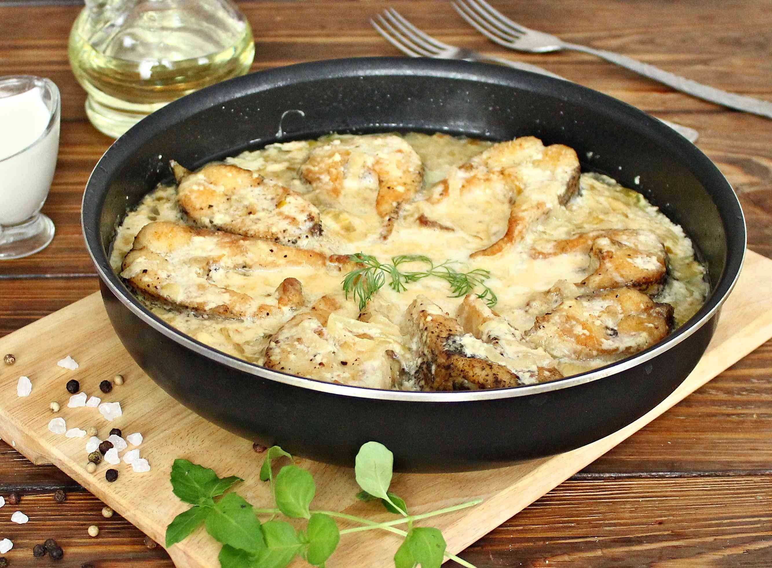 Рыба в сметане на сковороде