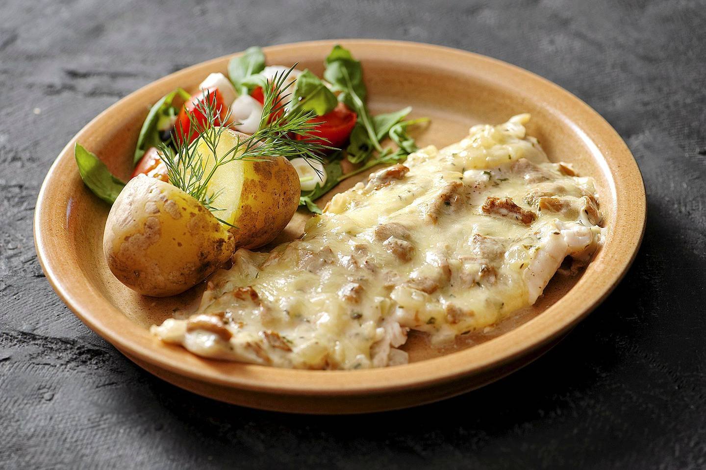 Рыба запеченная в соусе с грибами