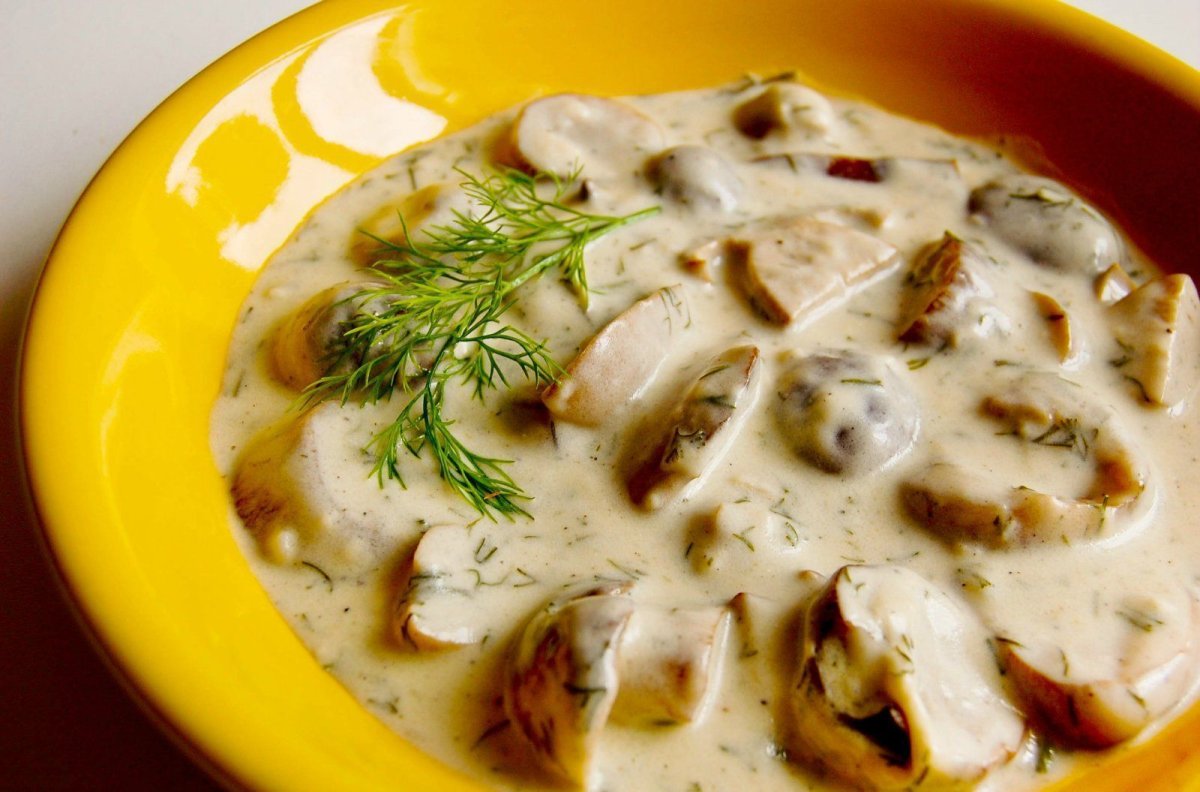 Грибы под сметанным соусом