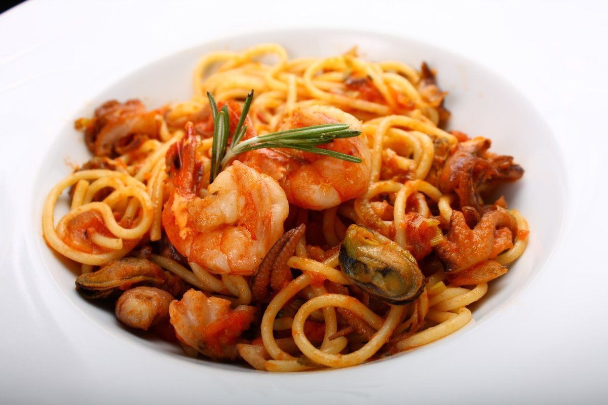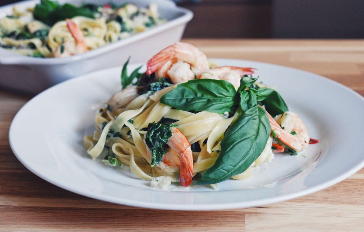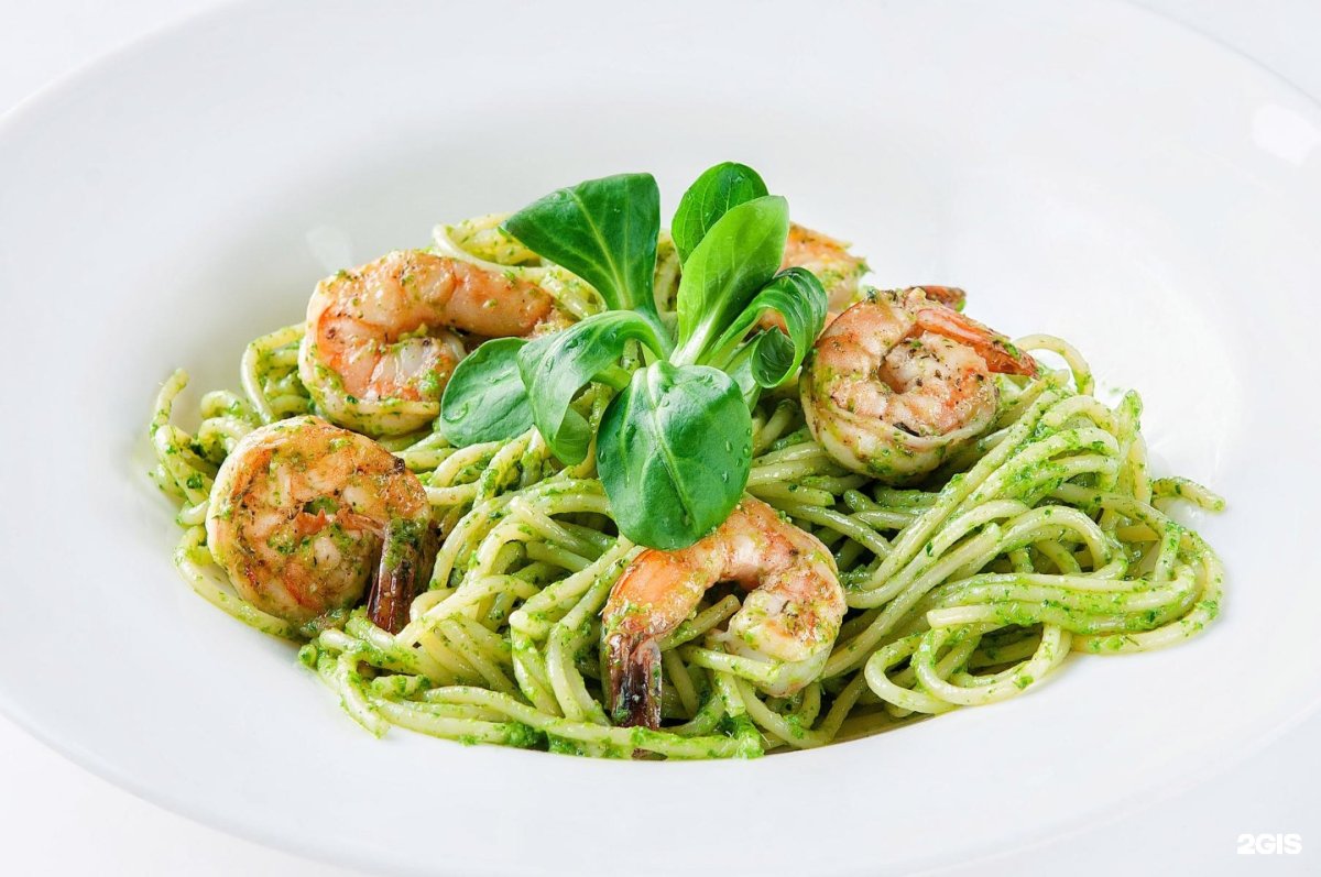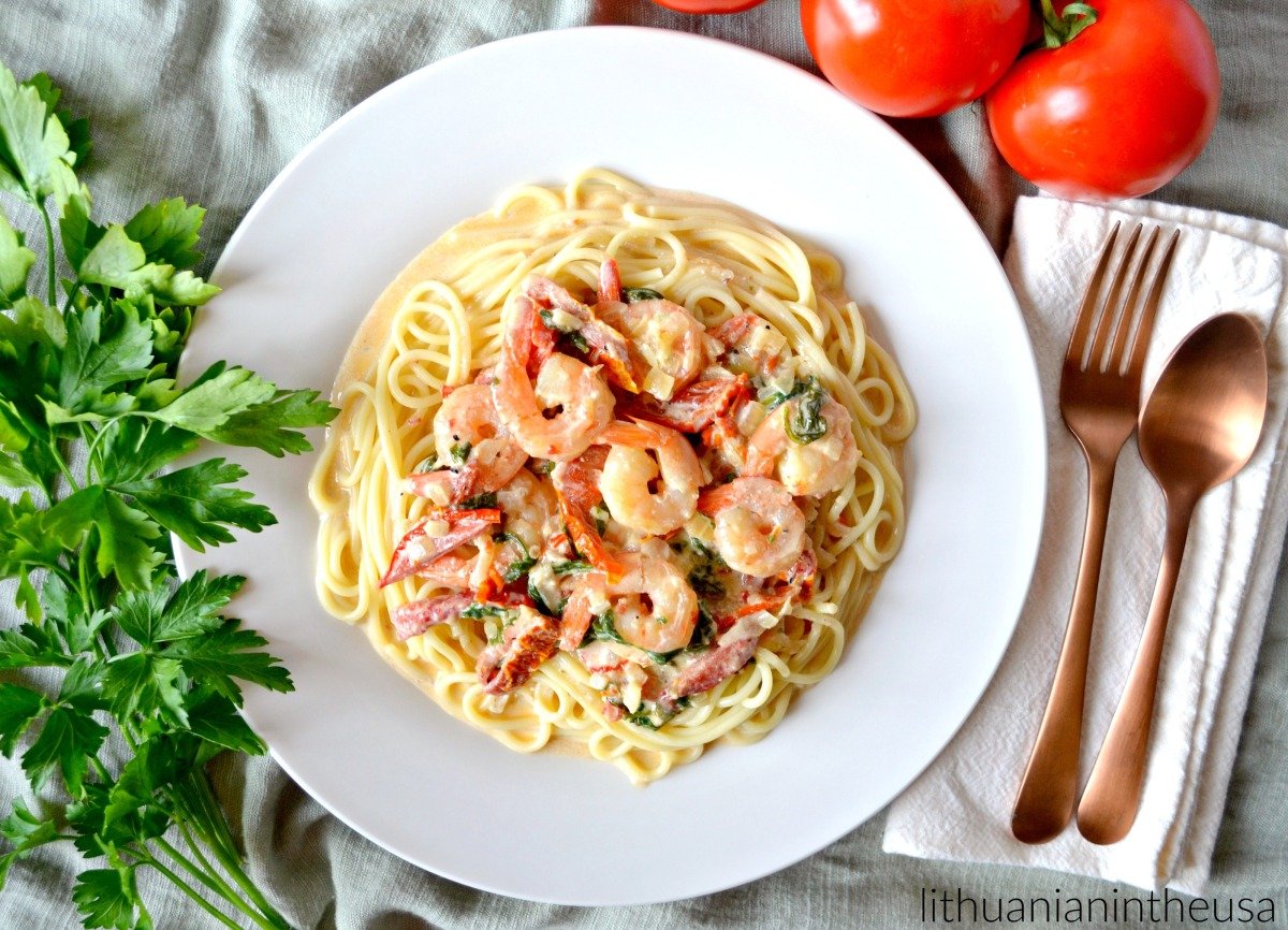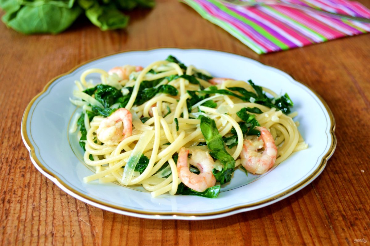 Фетучини с фрикадельками в сливочном соусе вид сверху