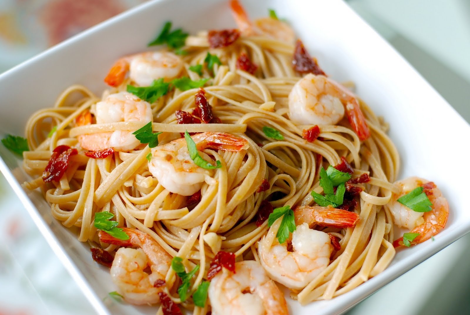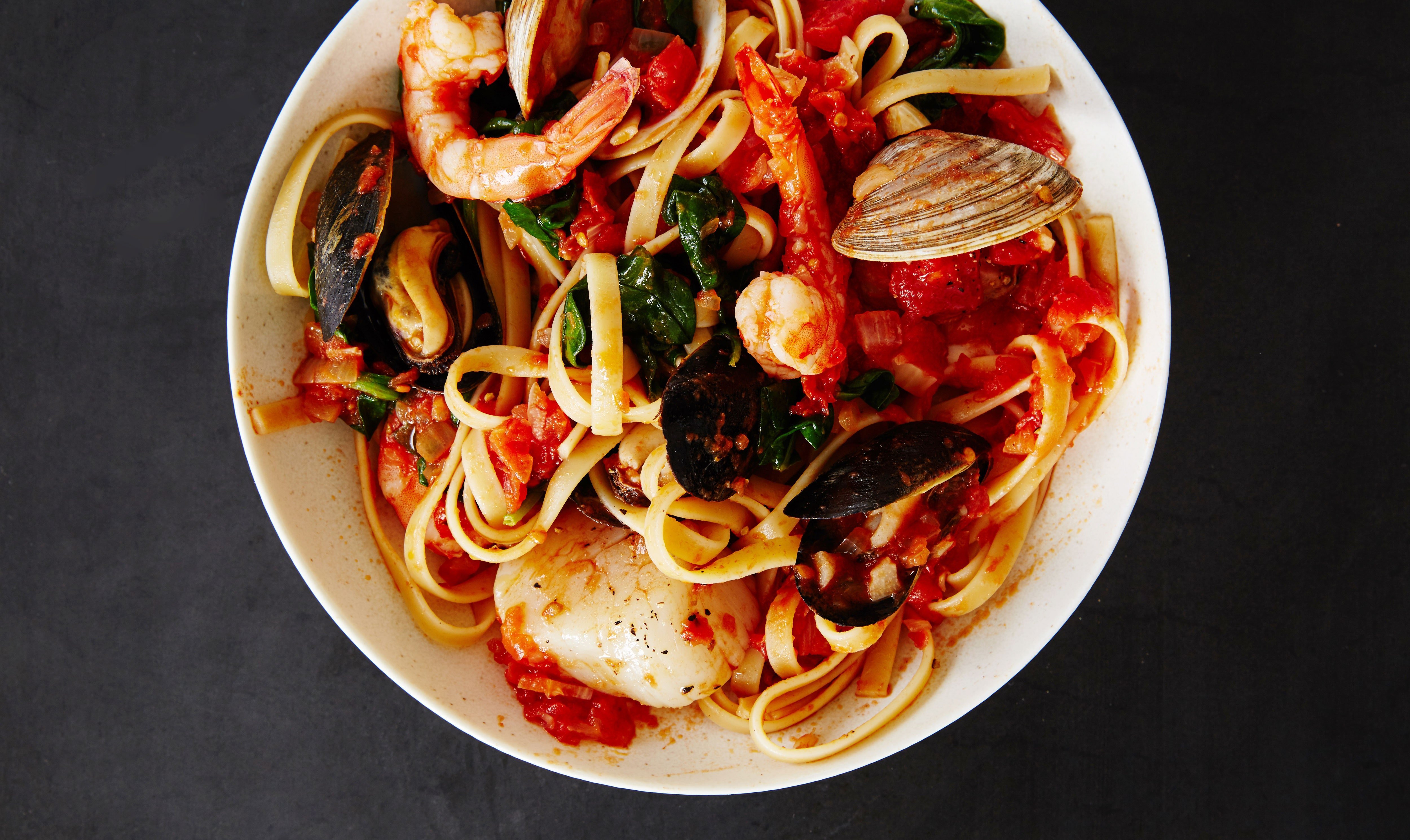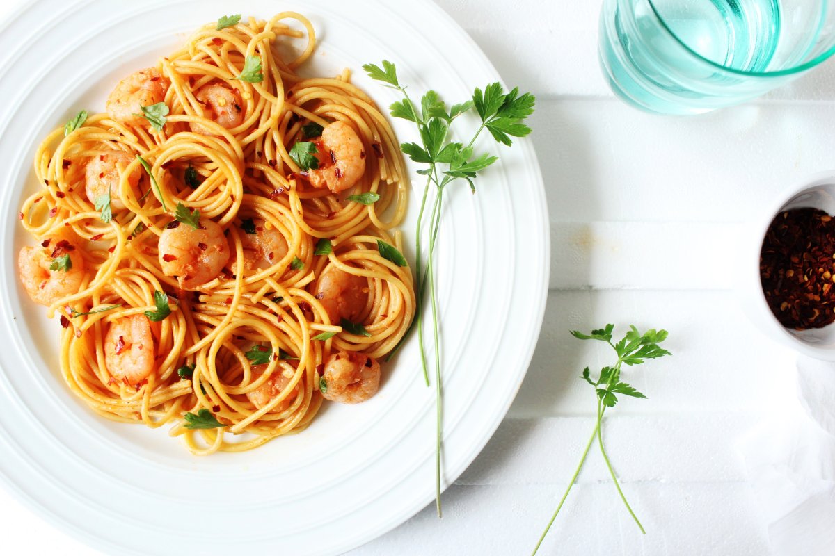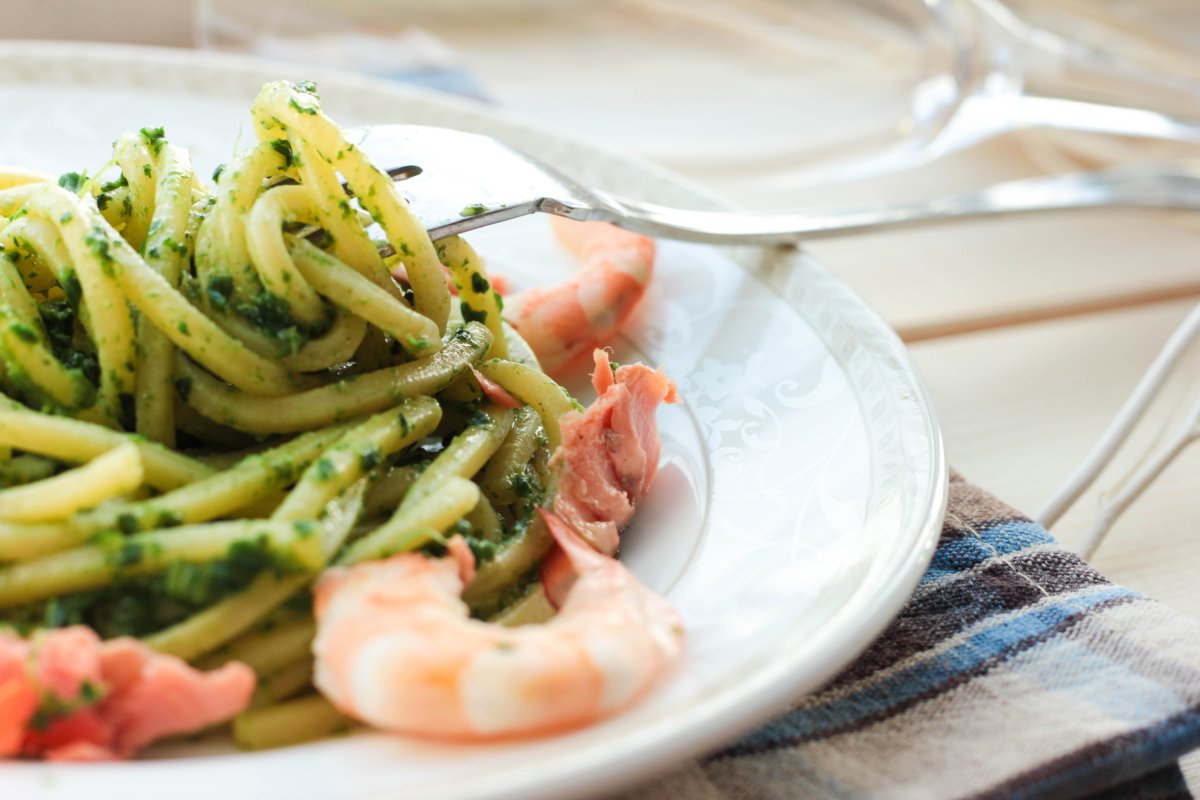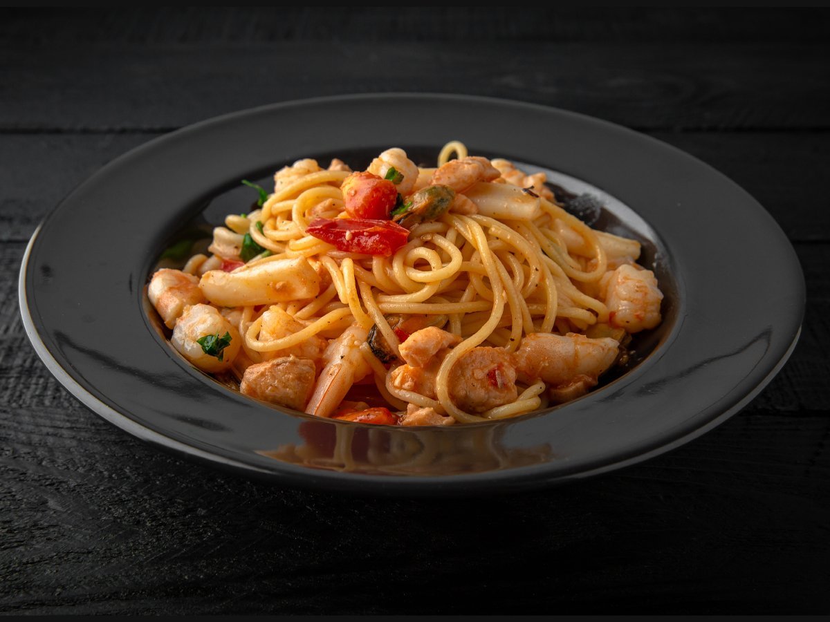 Фетучини с фрикадельками в сливочном соусе вид сверху