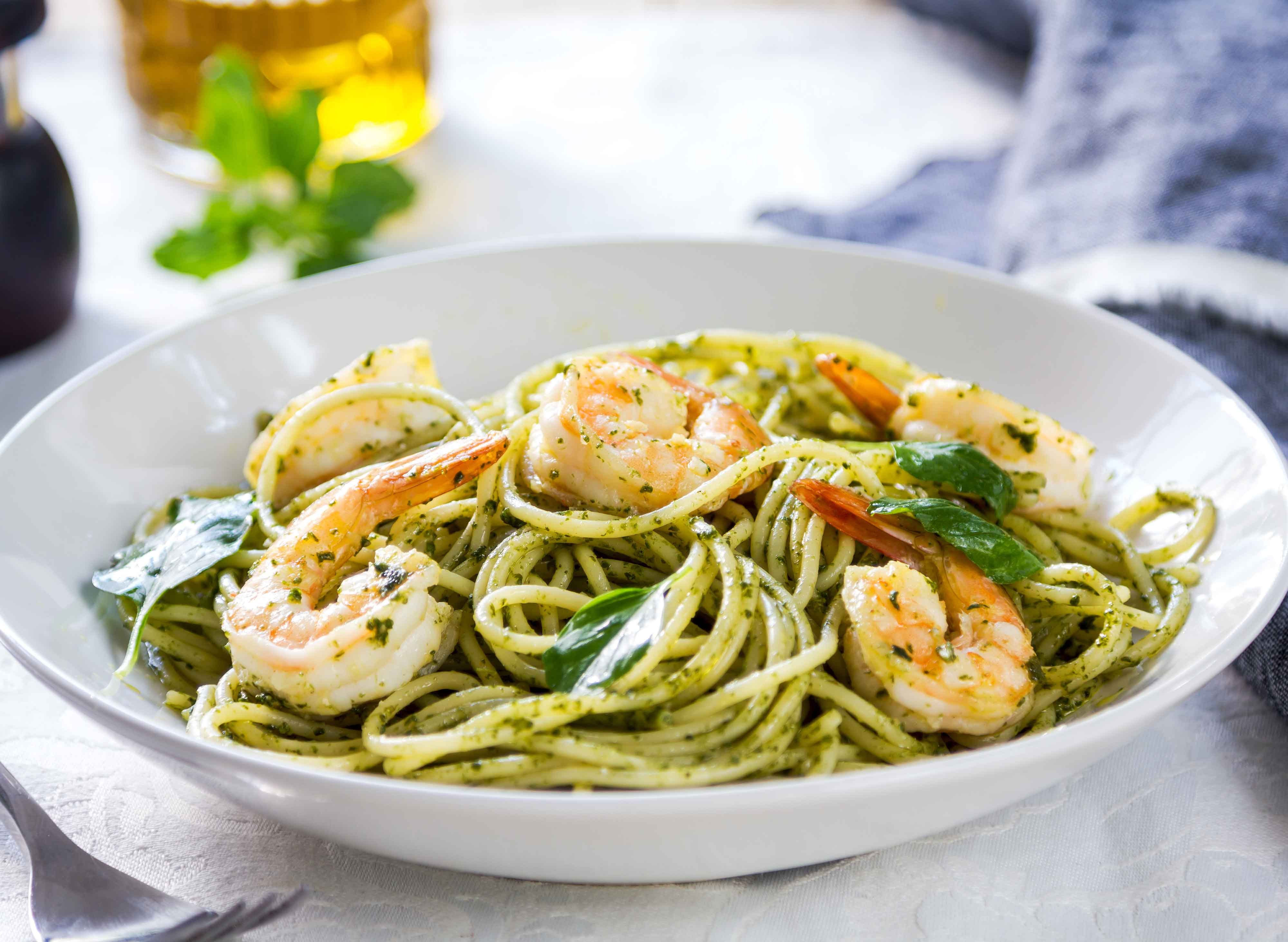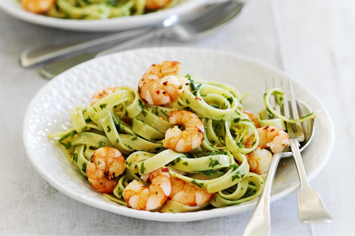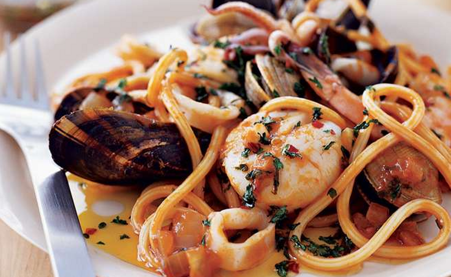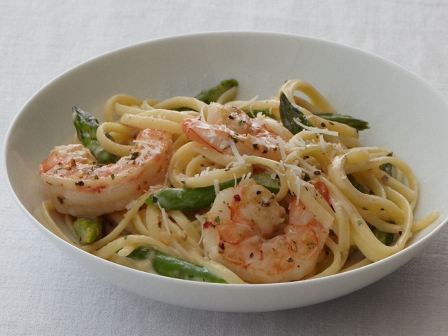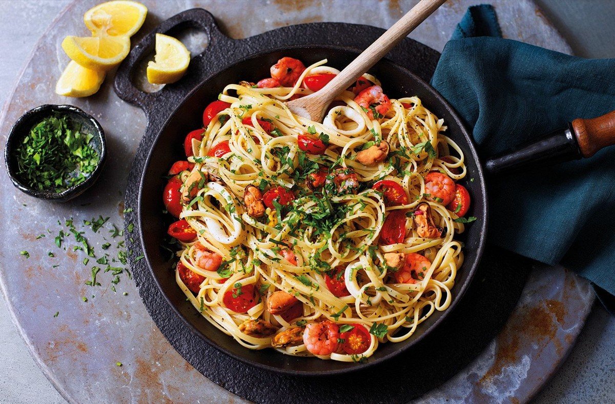 Фетучини с фрикадельками в сливочном соусе вид сверху