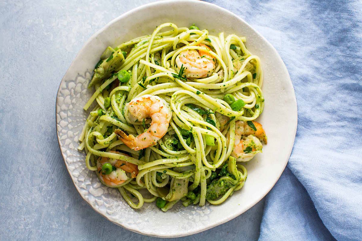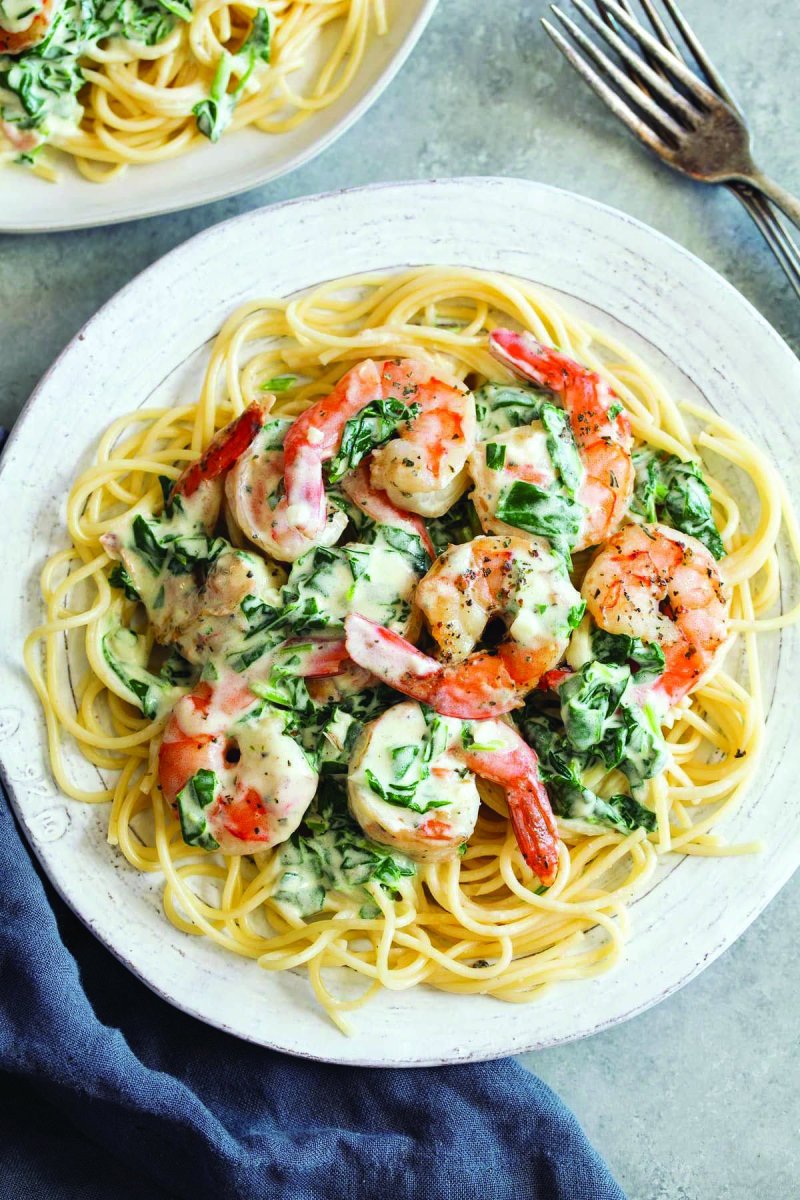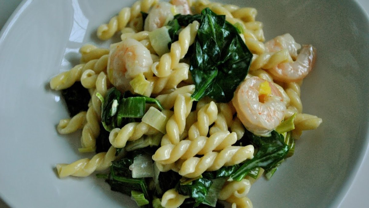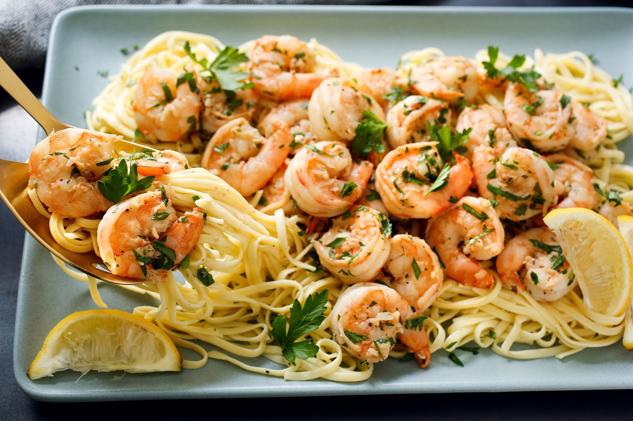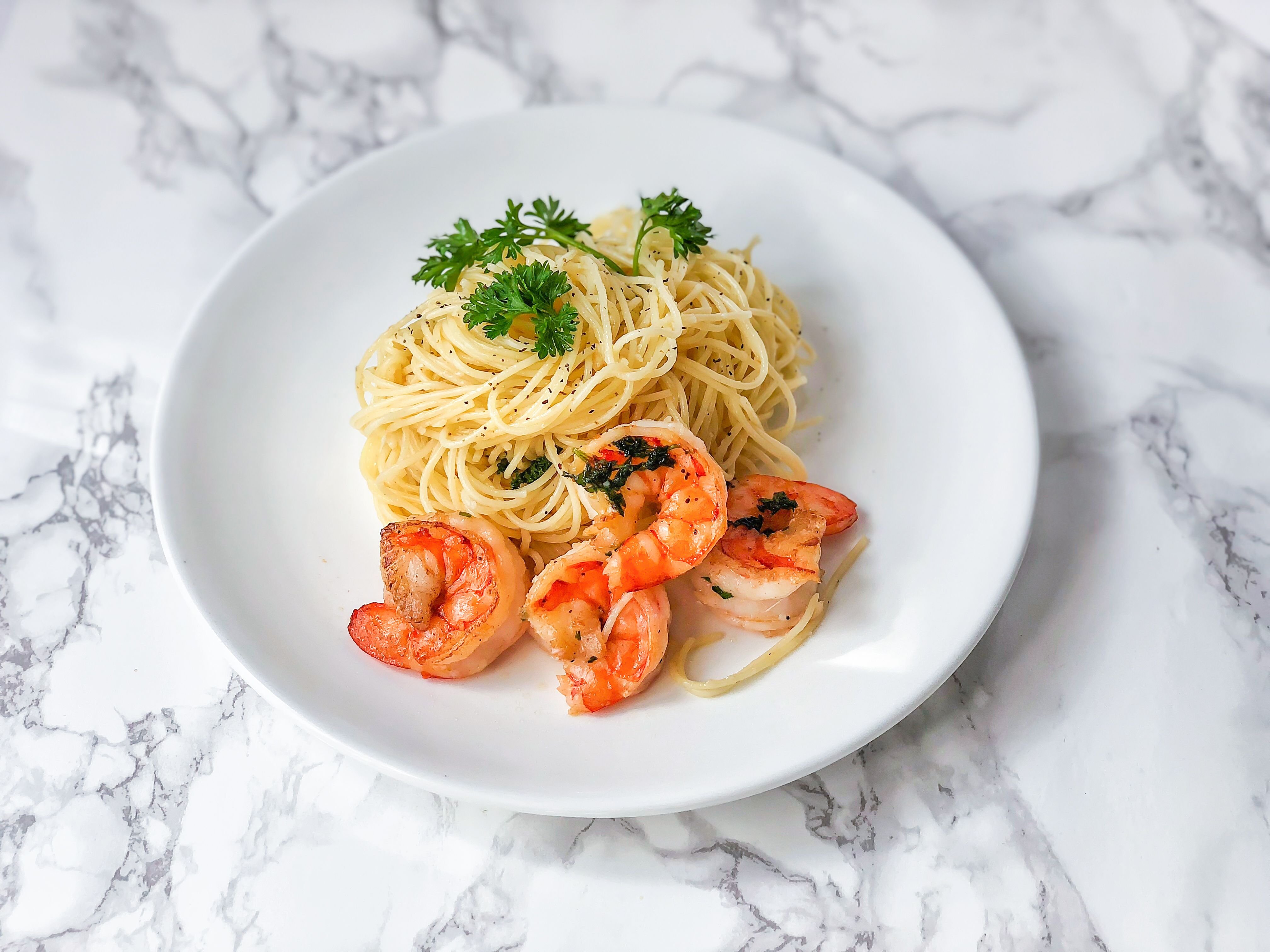 Фетучини с фрикадельками в сливочном соусе вид сверху