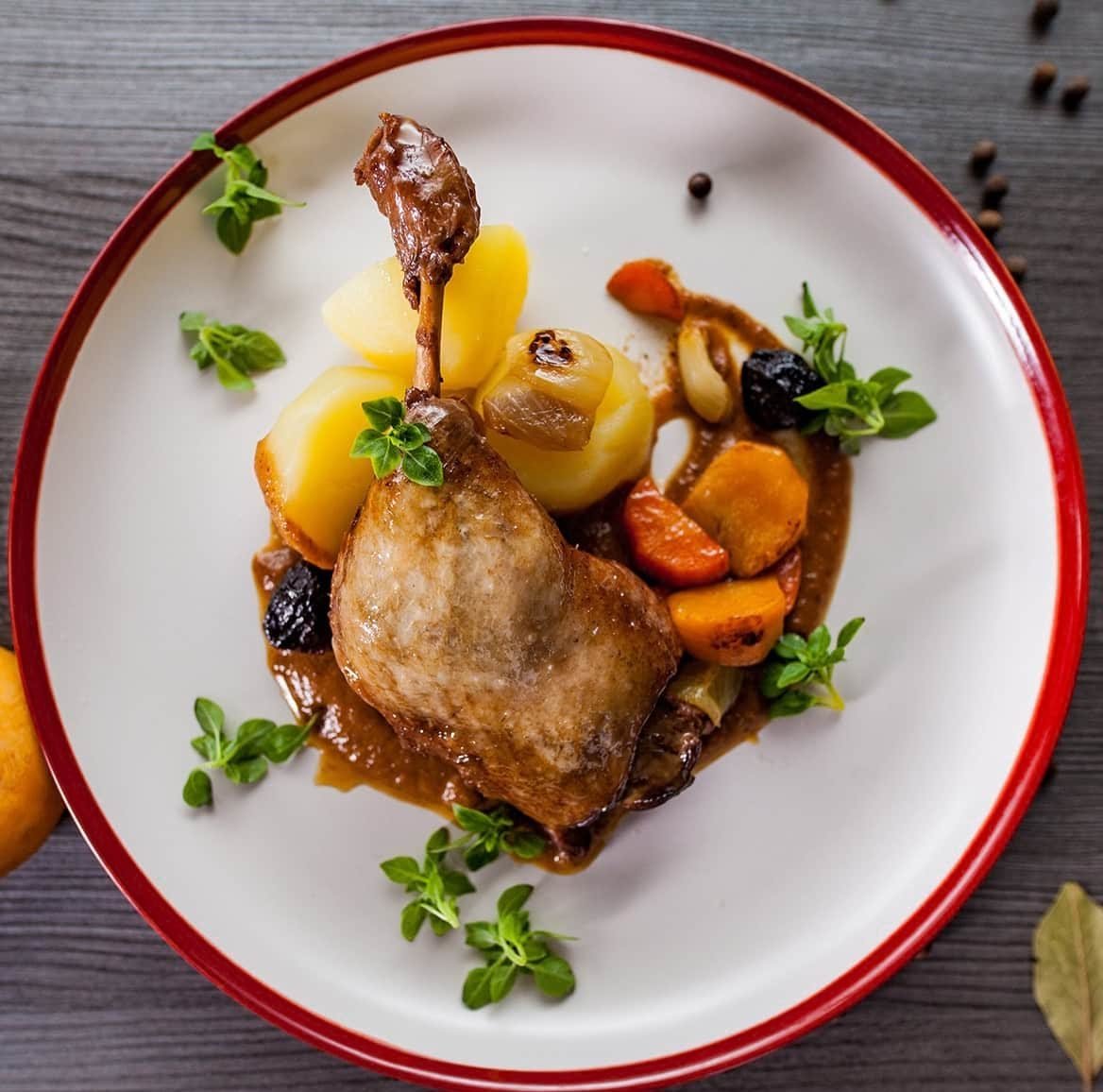 Утиная ножка конфи с грушей
