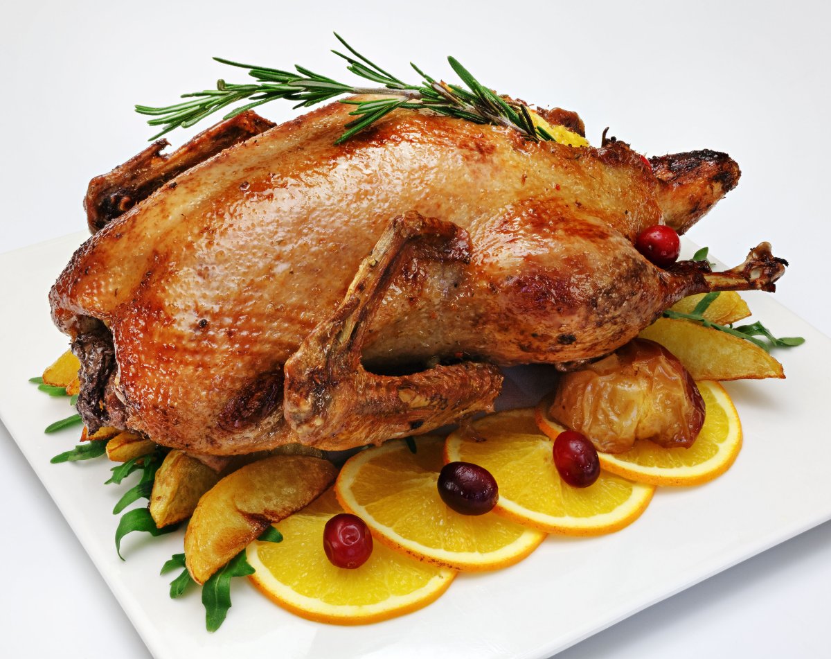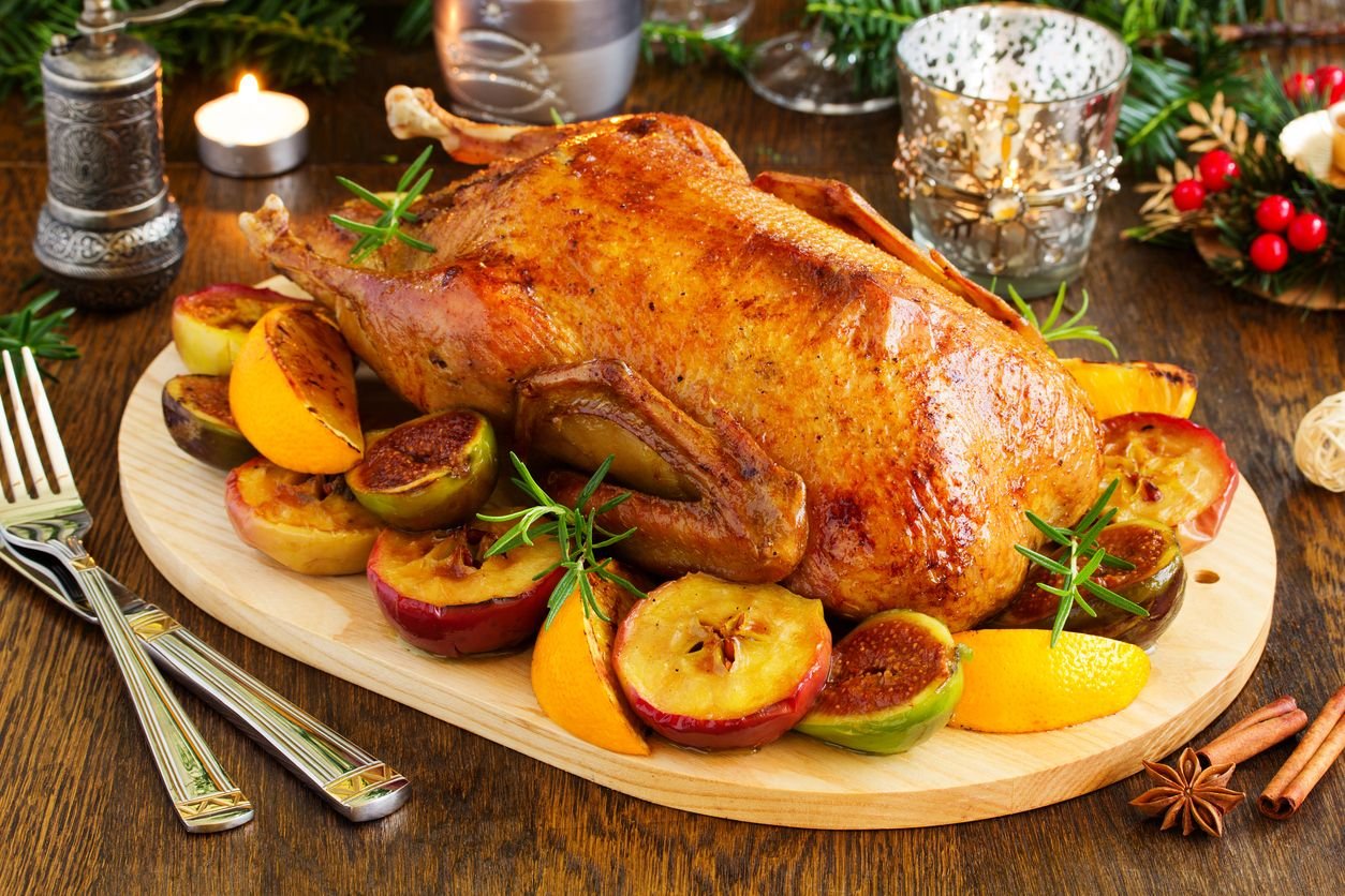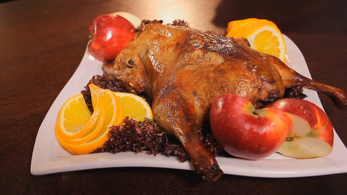 Гусь фаршированный яблоками и черносливом