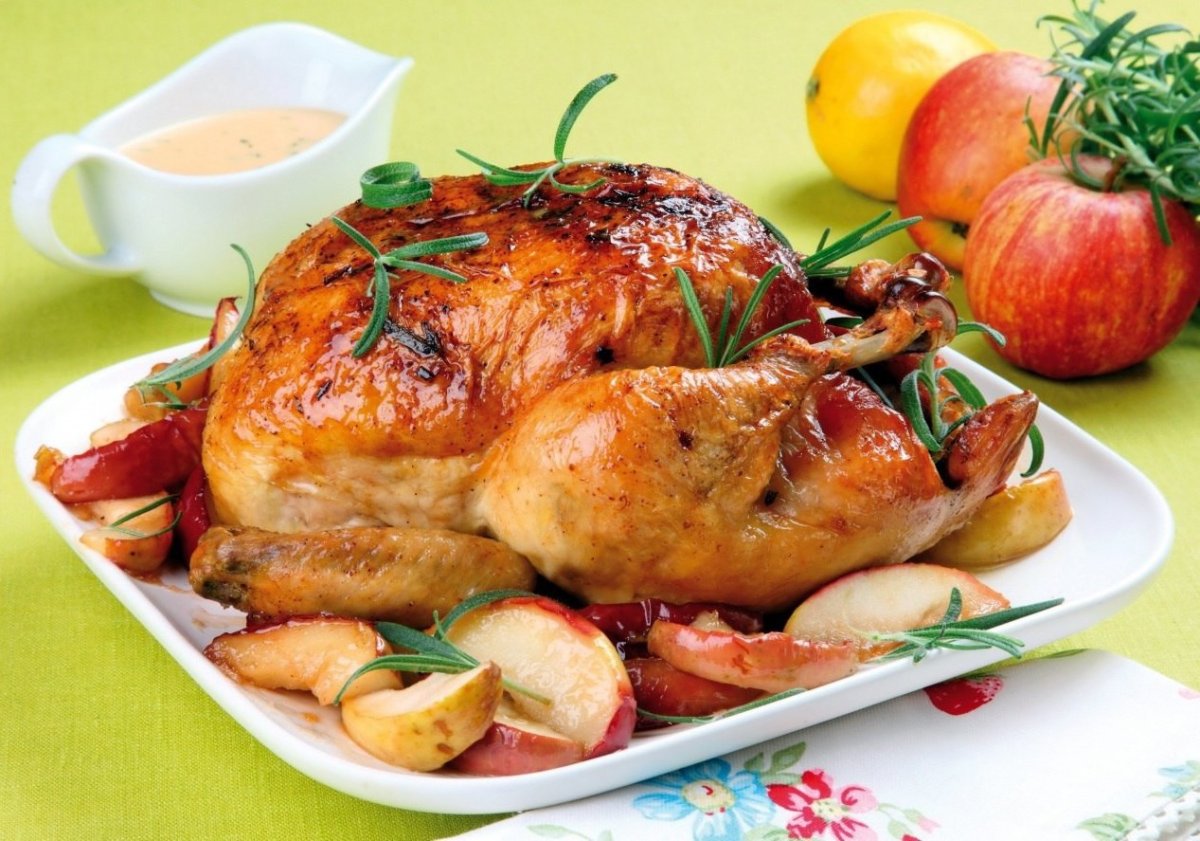 Курица с яблоками в духовке
