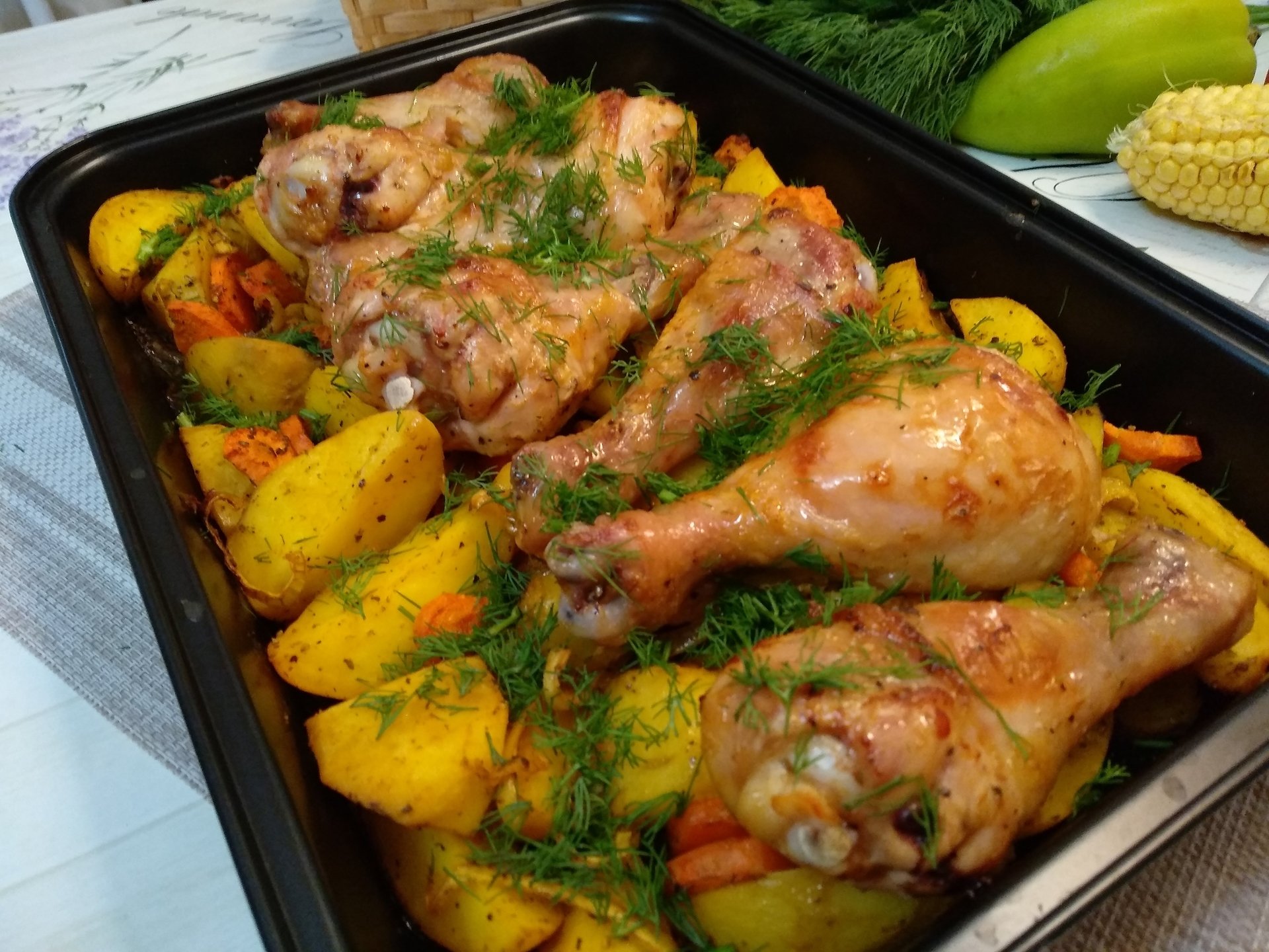 Вкусная Курочка в маринаде вместе с картошкой в духовке