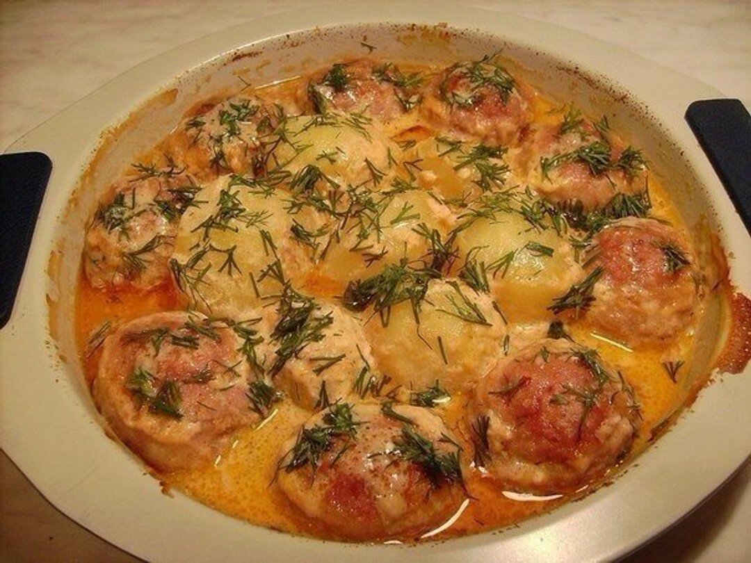 Картофельная запеканка с фрикадельками (с мясными шариками)