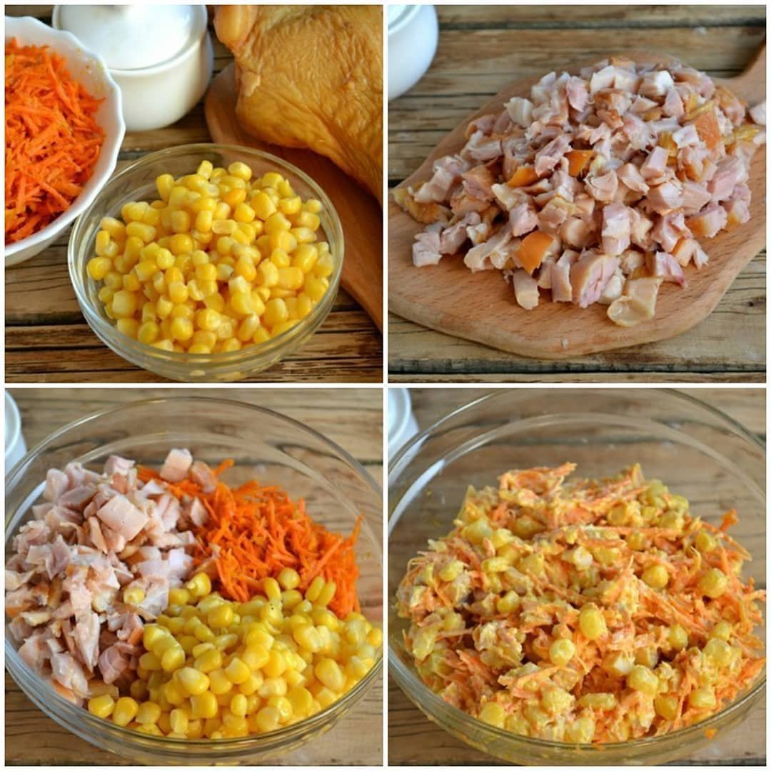 Салат с морковча кукуруза чипсы курицей