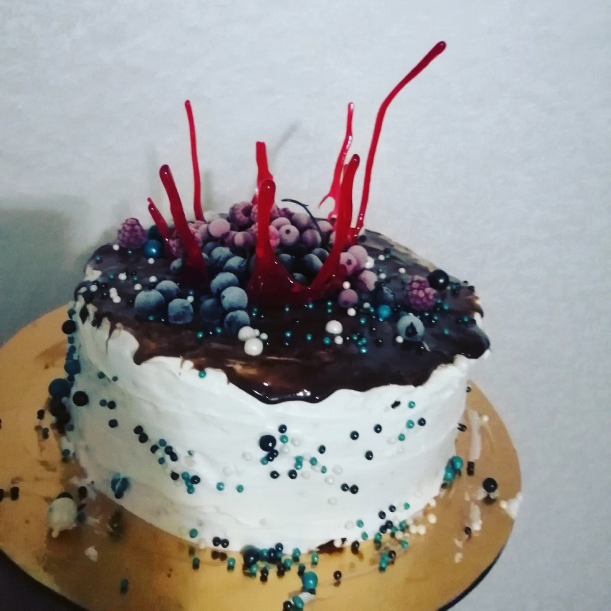 Украшение торта смородиной