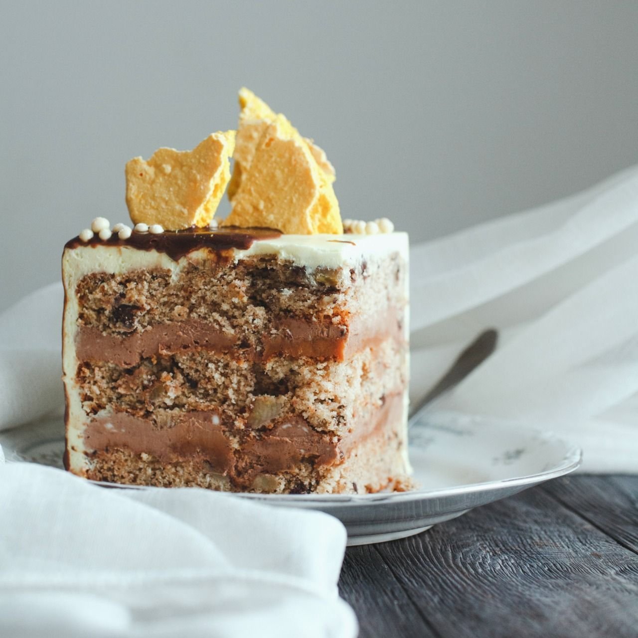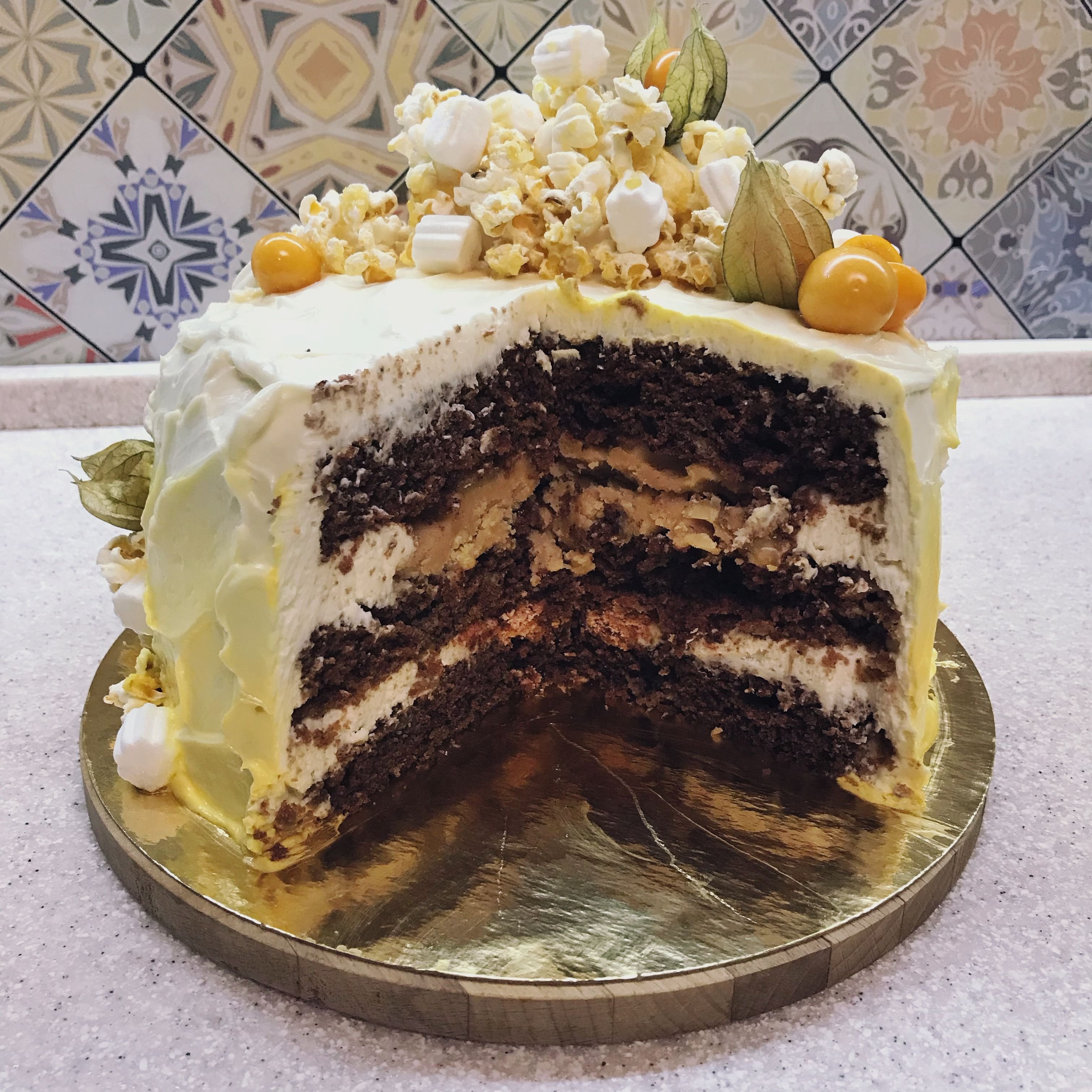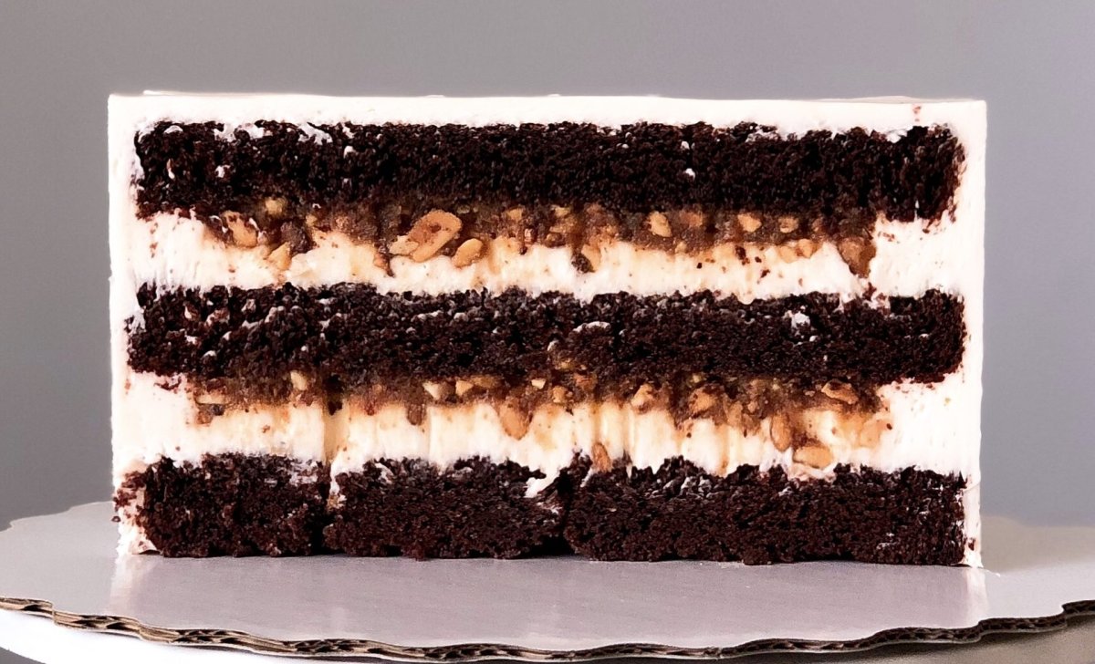 Шоколадный торт с карамельной прослойкой и орехами