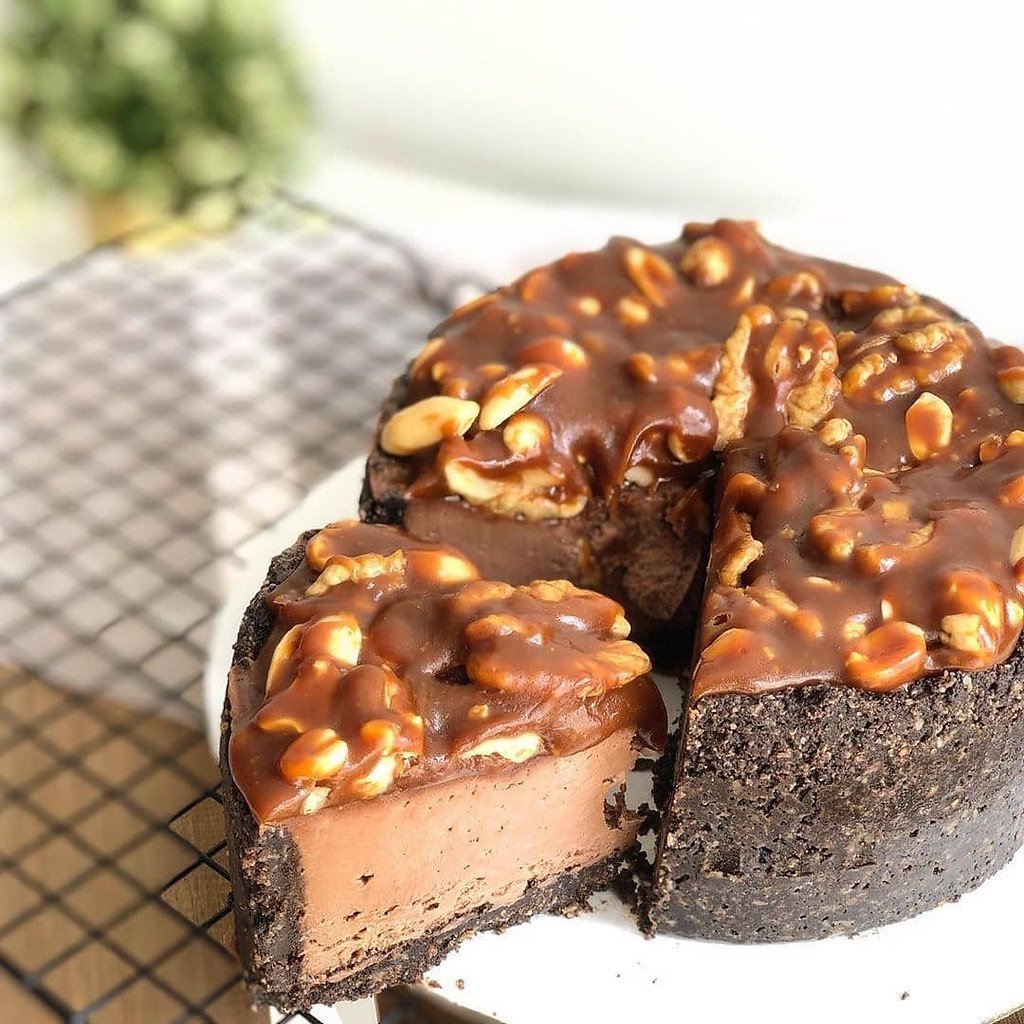 Шоколадный чизкейк с карамелью и орехами
