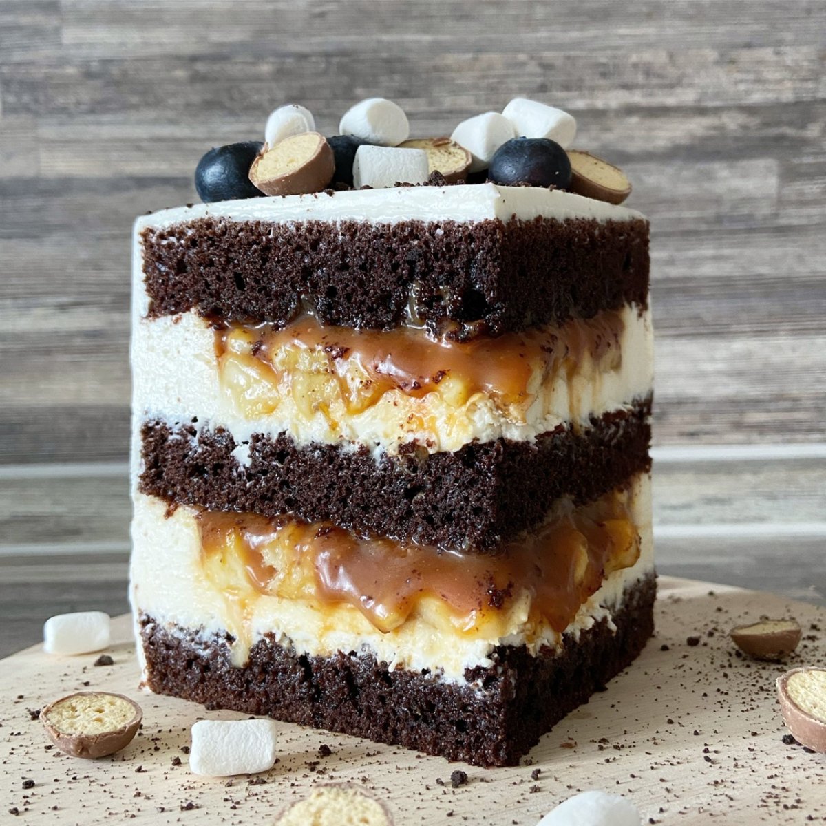 Торт шоколадный с карамелью и бананом