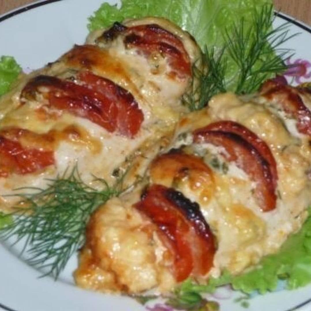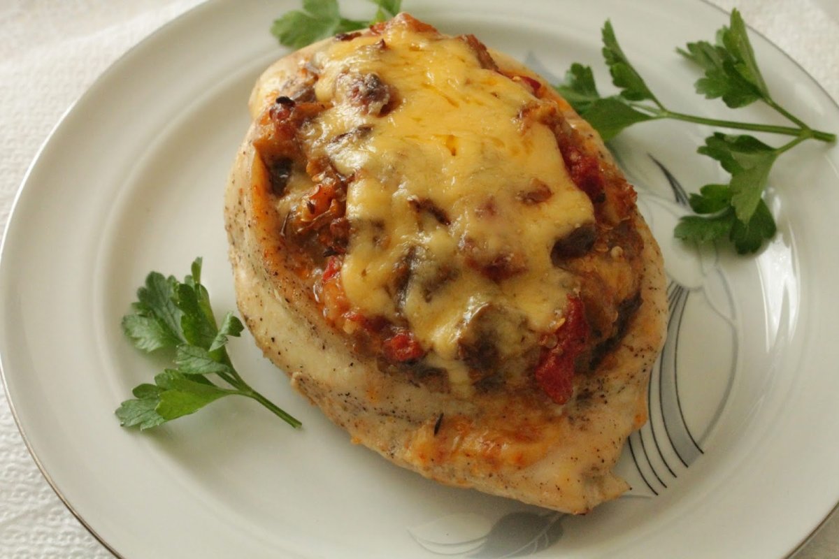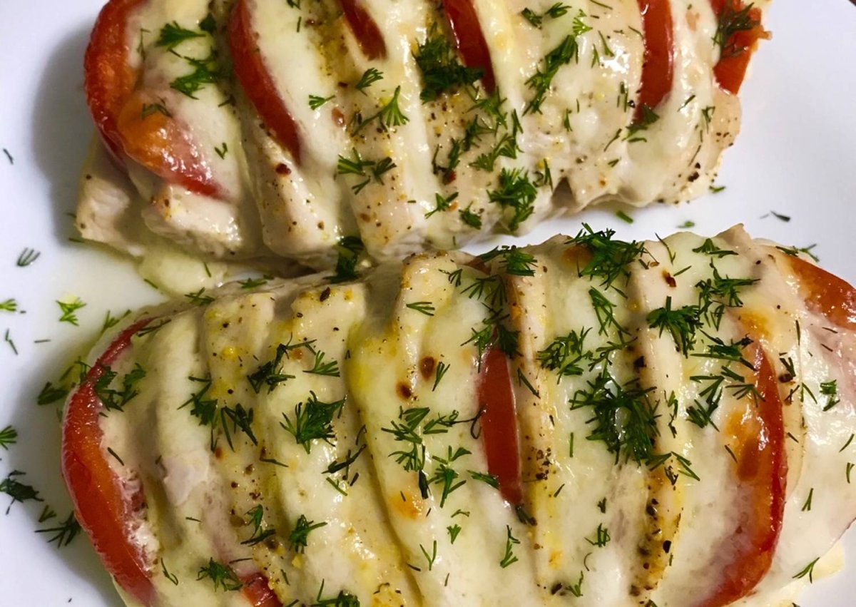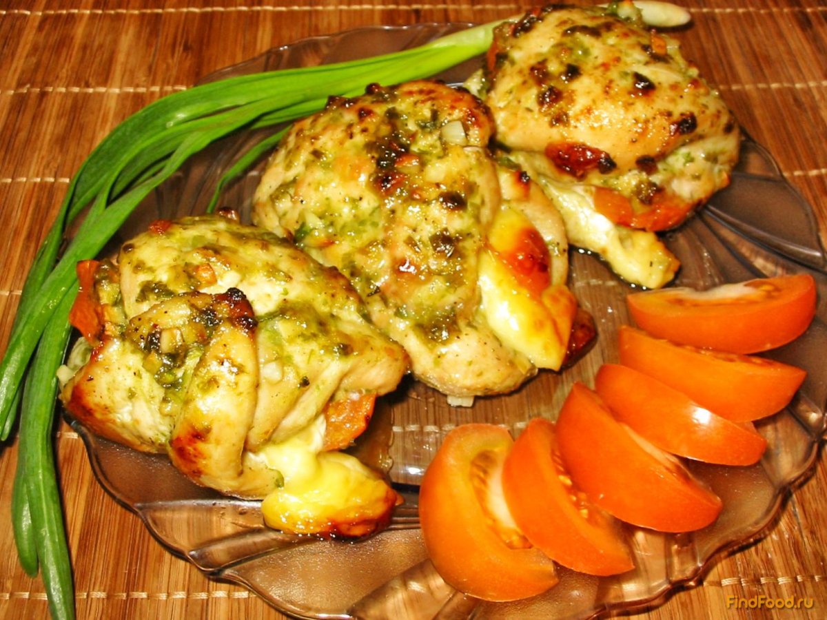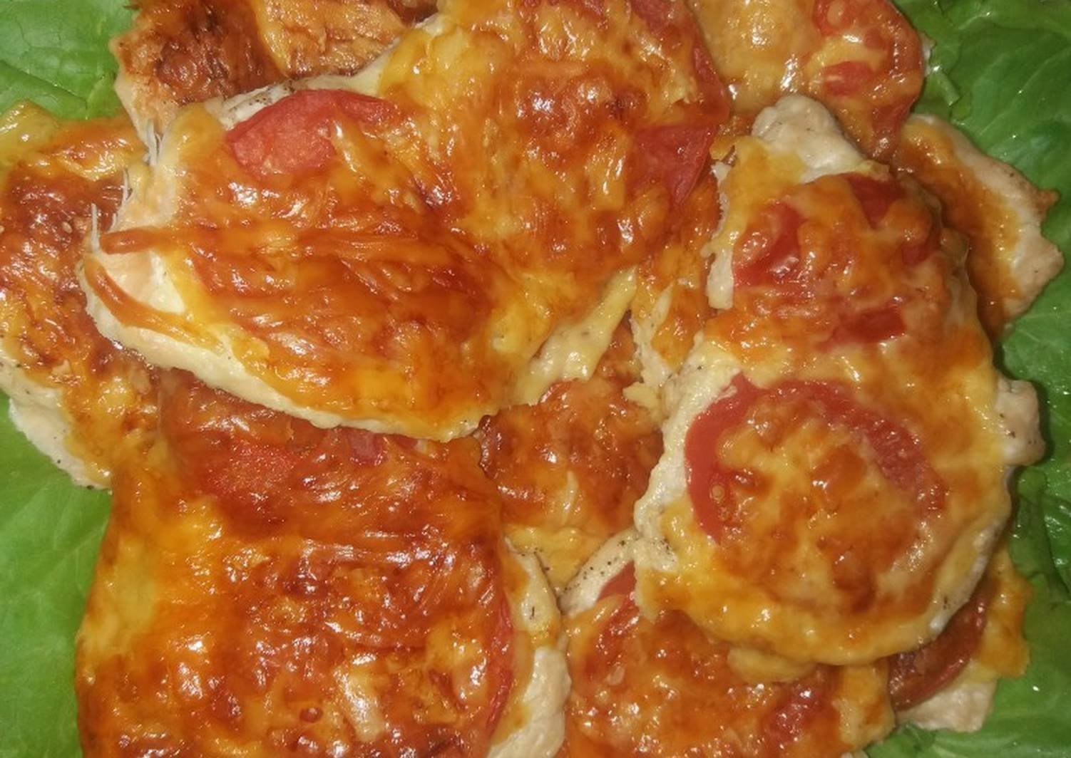 Отбивное куриное филе в духовке с помидорами и сыром в духовке