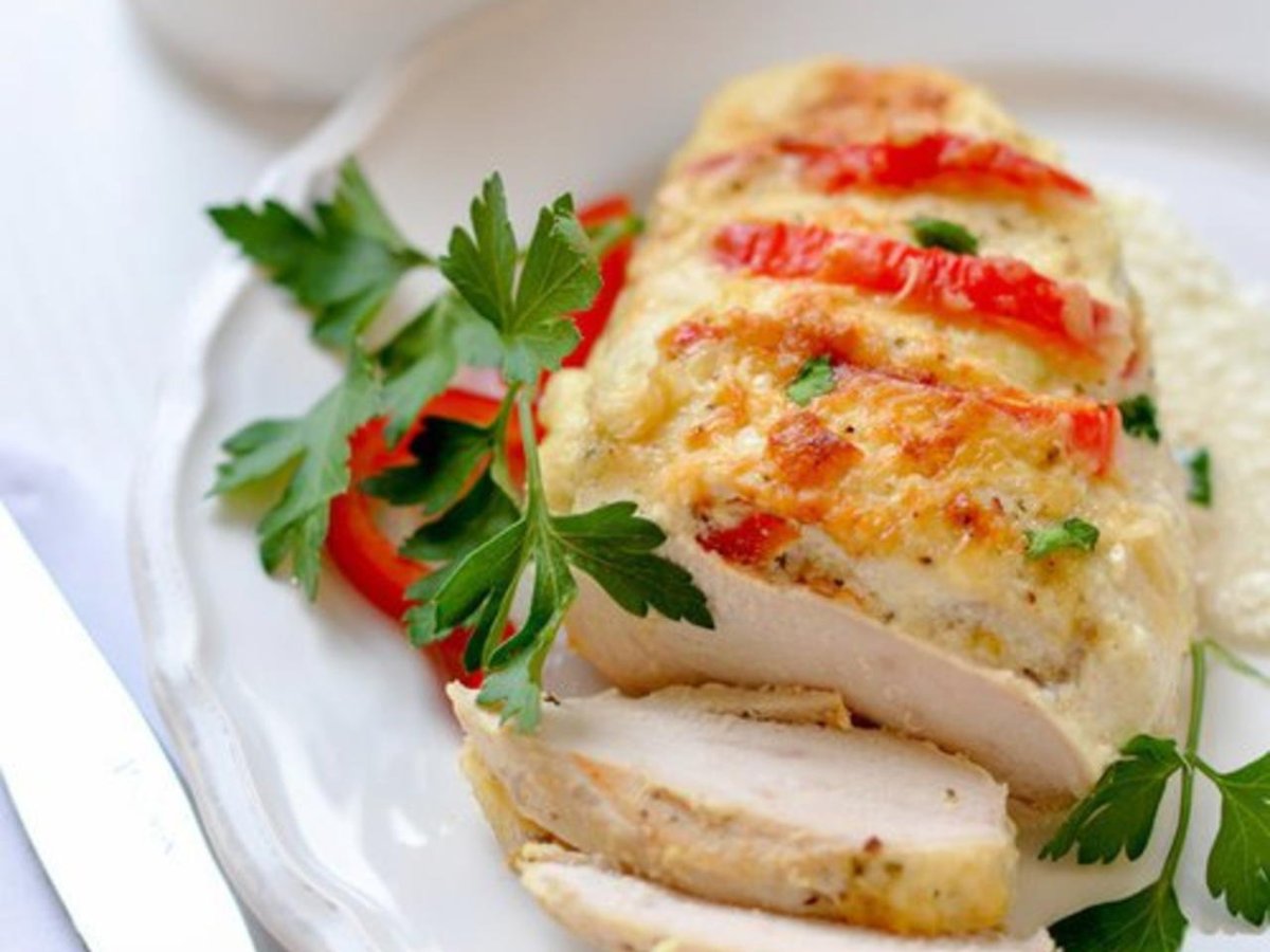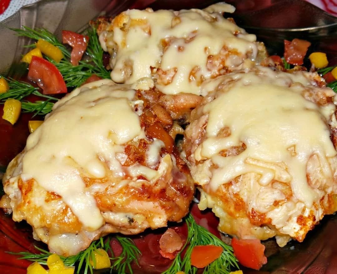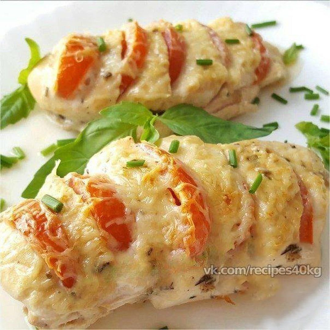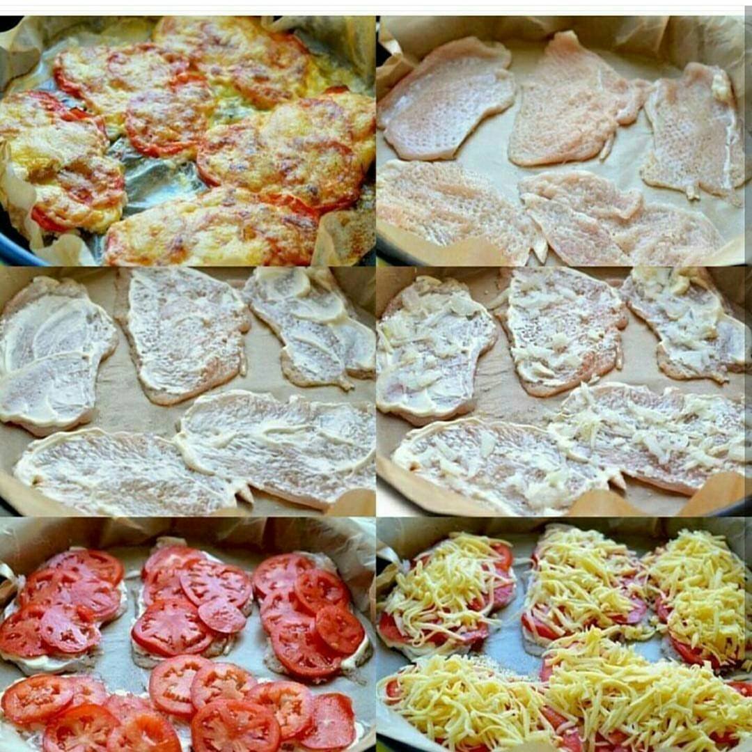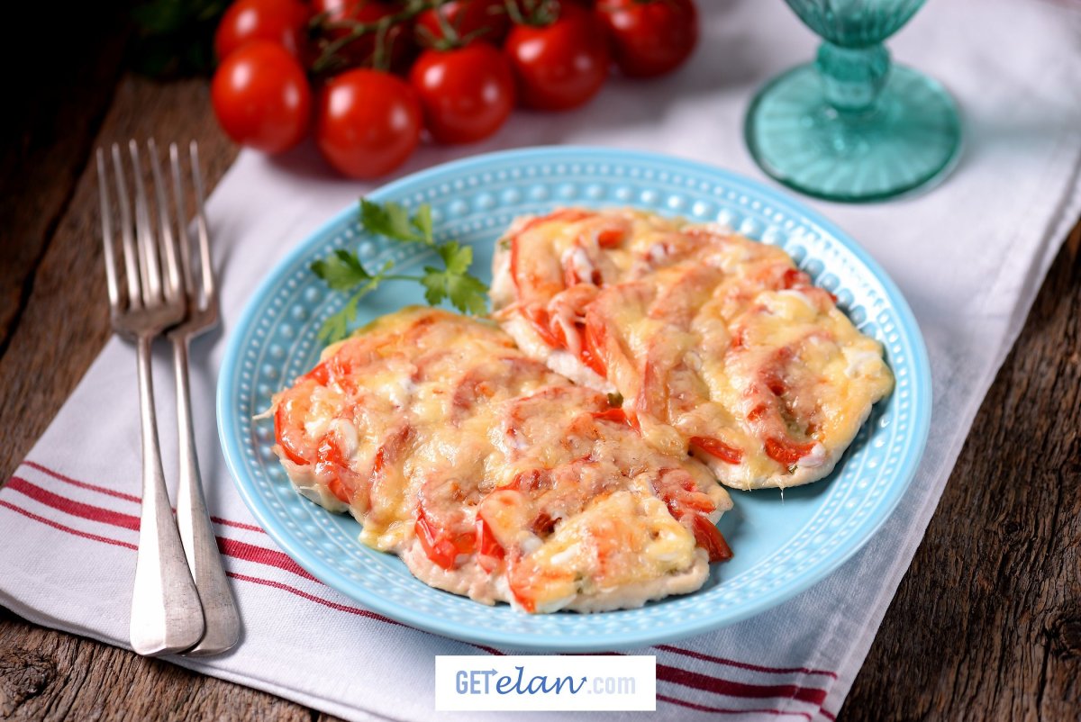 Отбивное куриное филе в духовке с помидорами и сыром в духовке