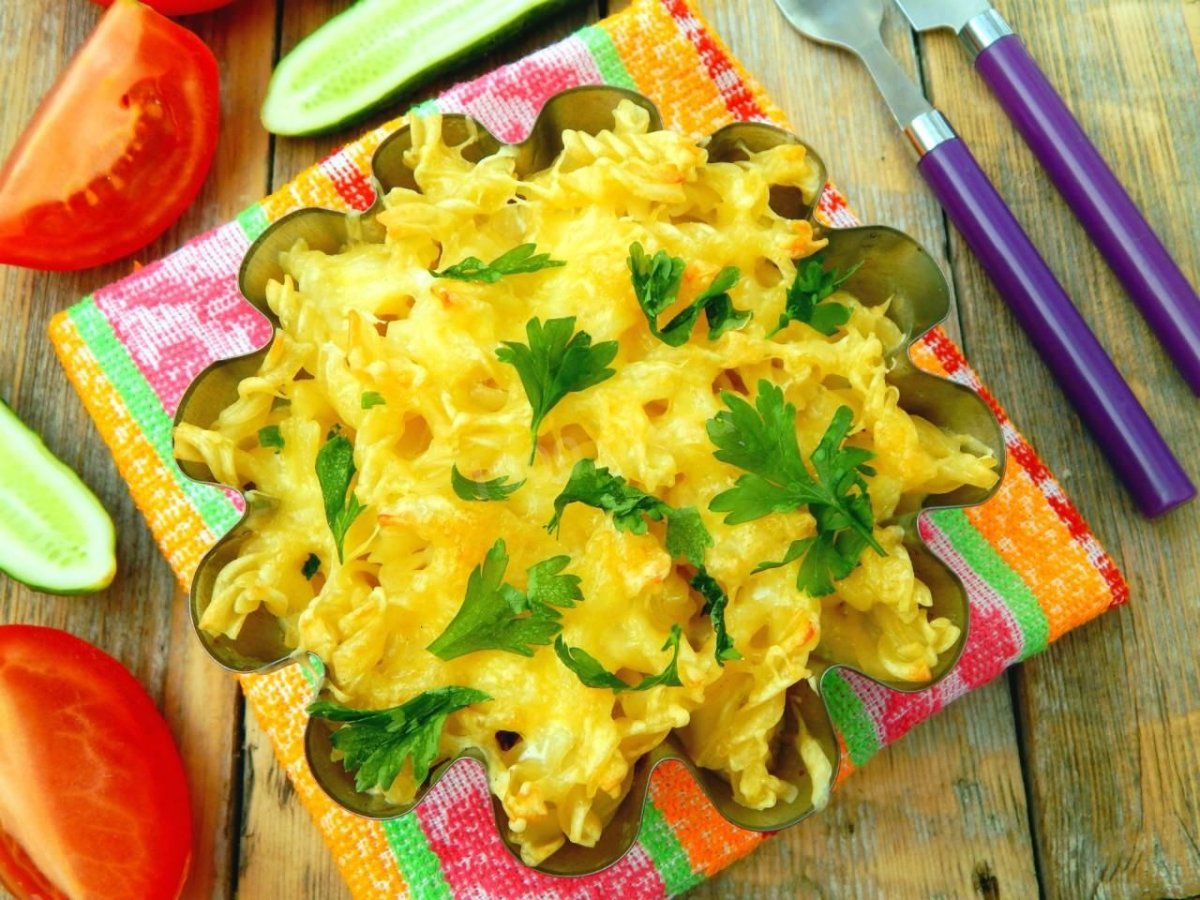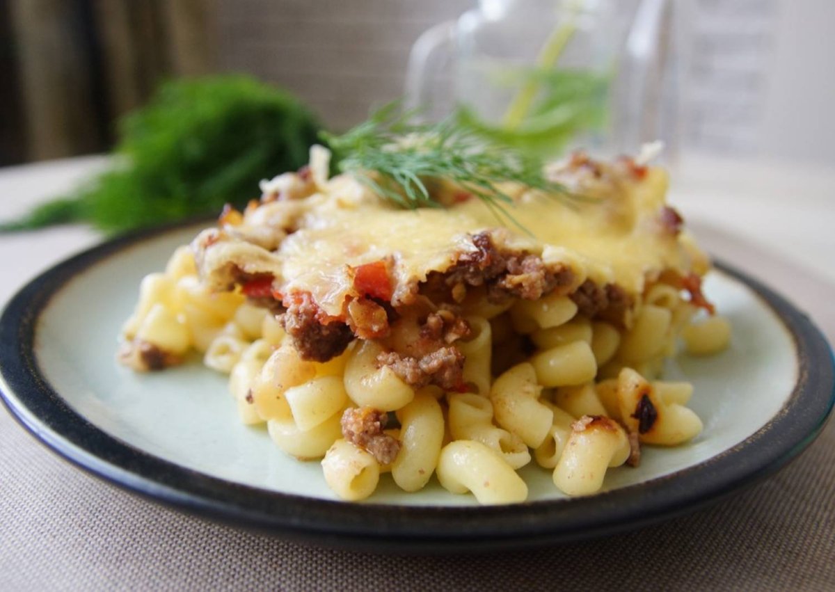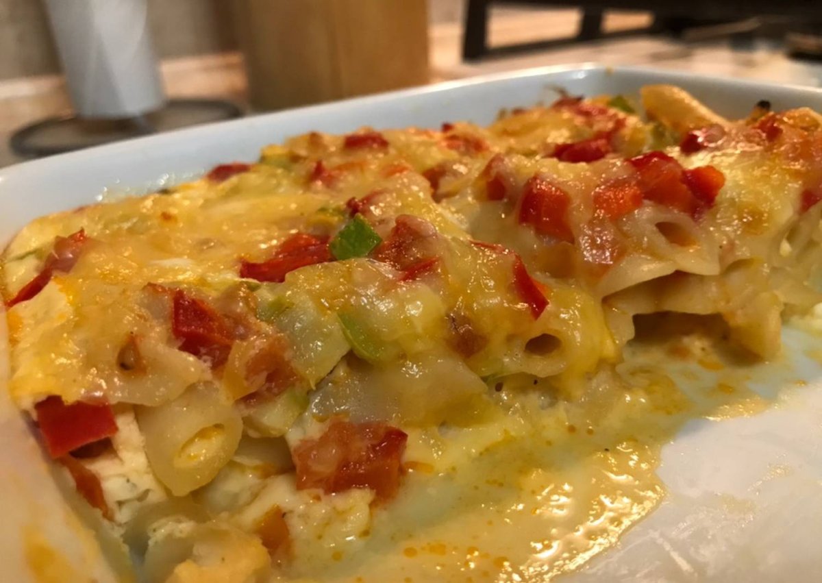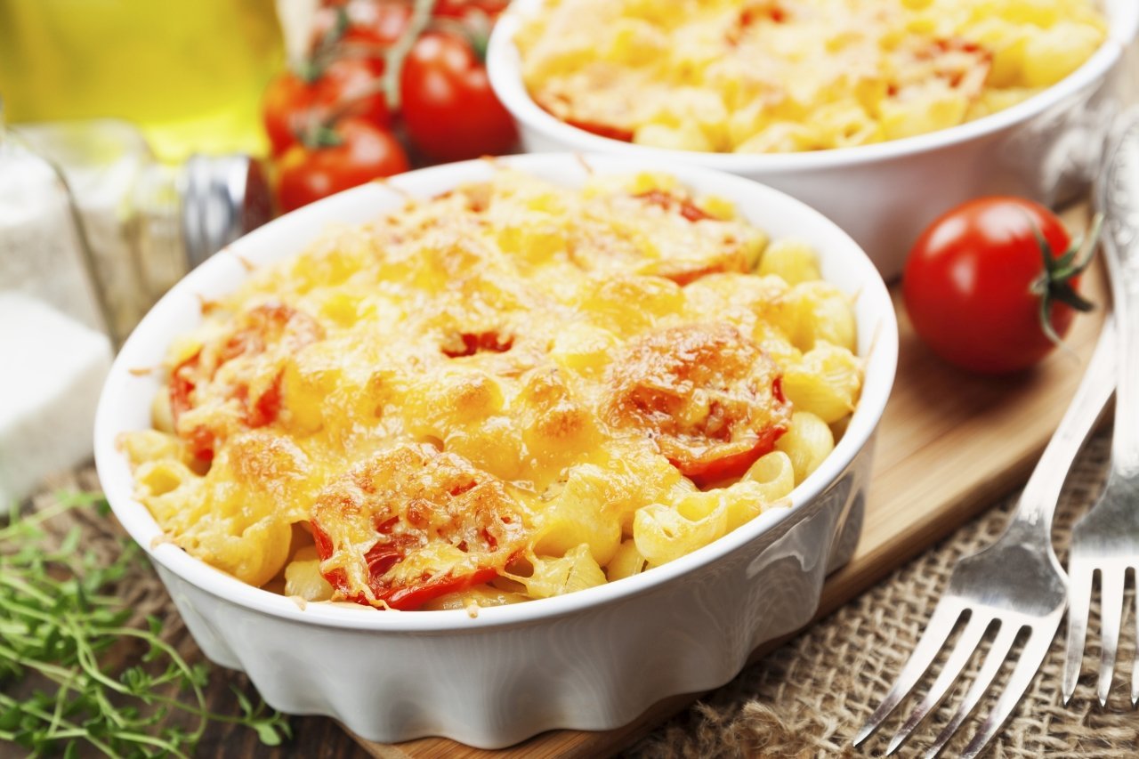 Запеканка из макарон в духовке с курицей и сыром и помидорами