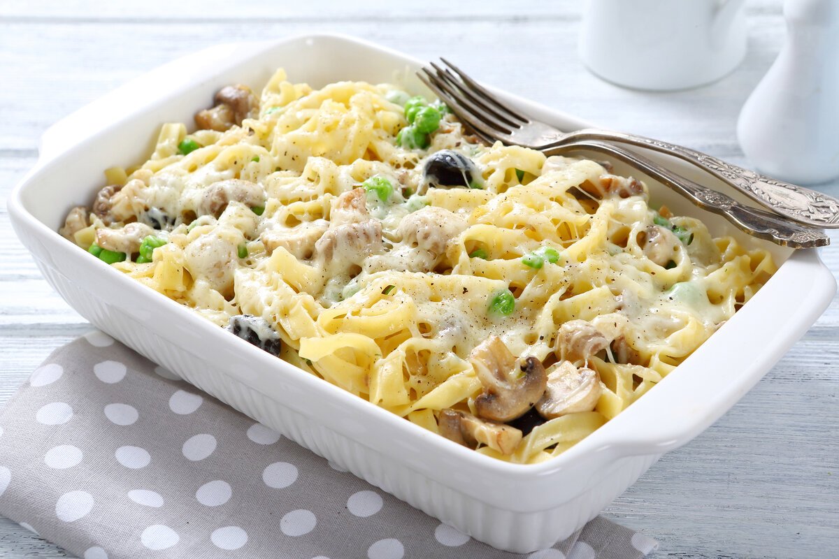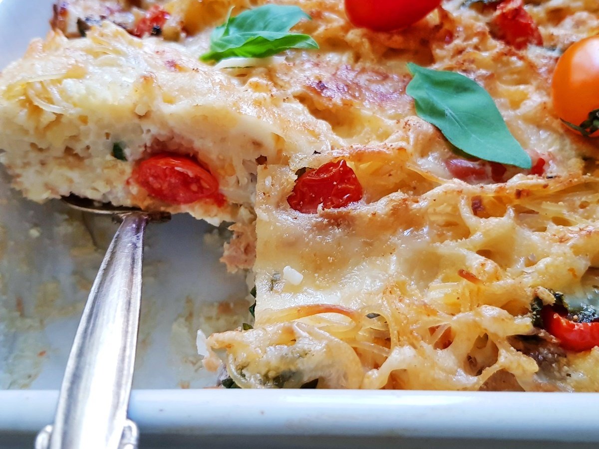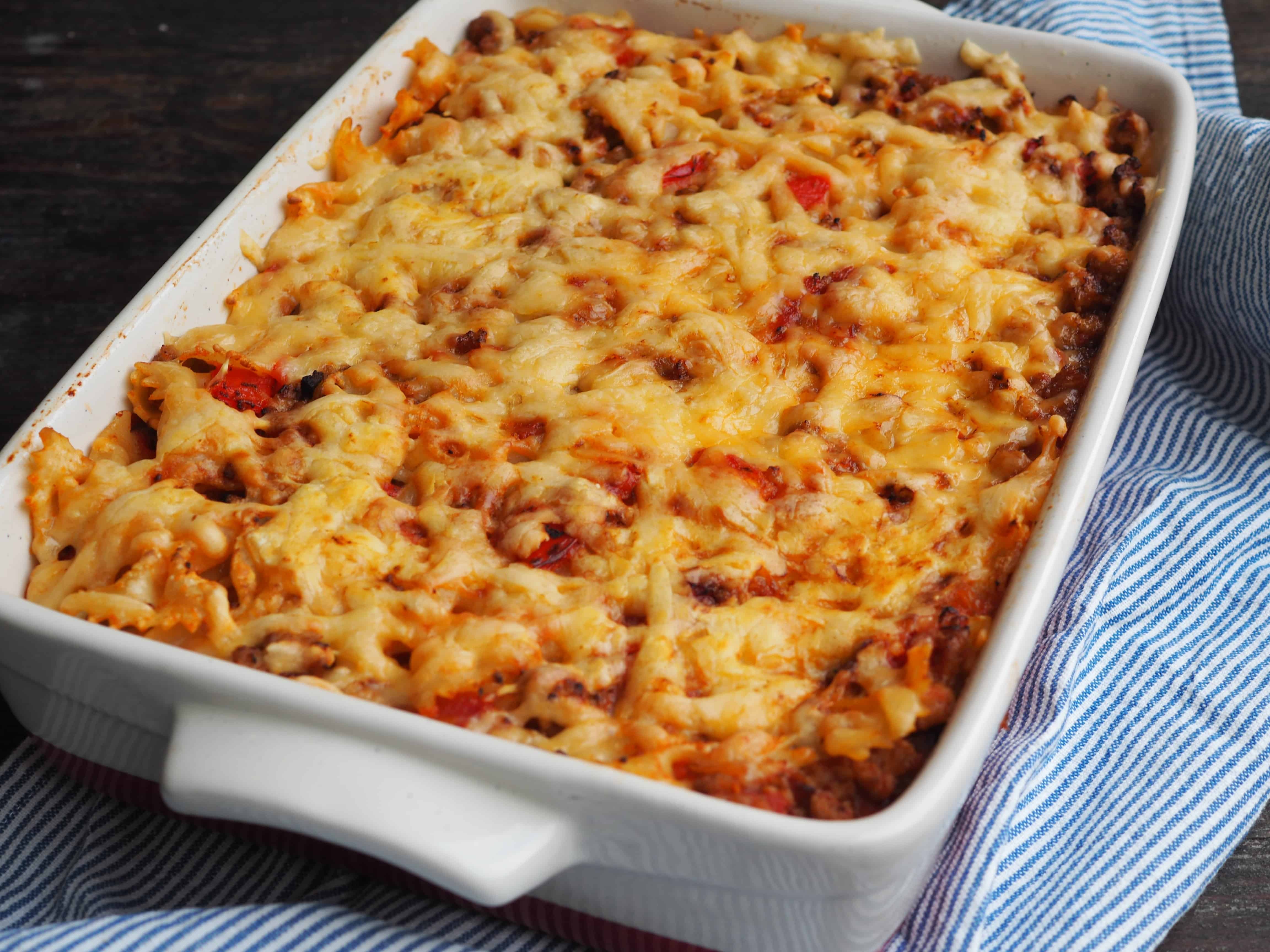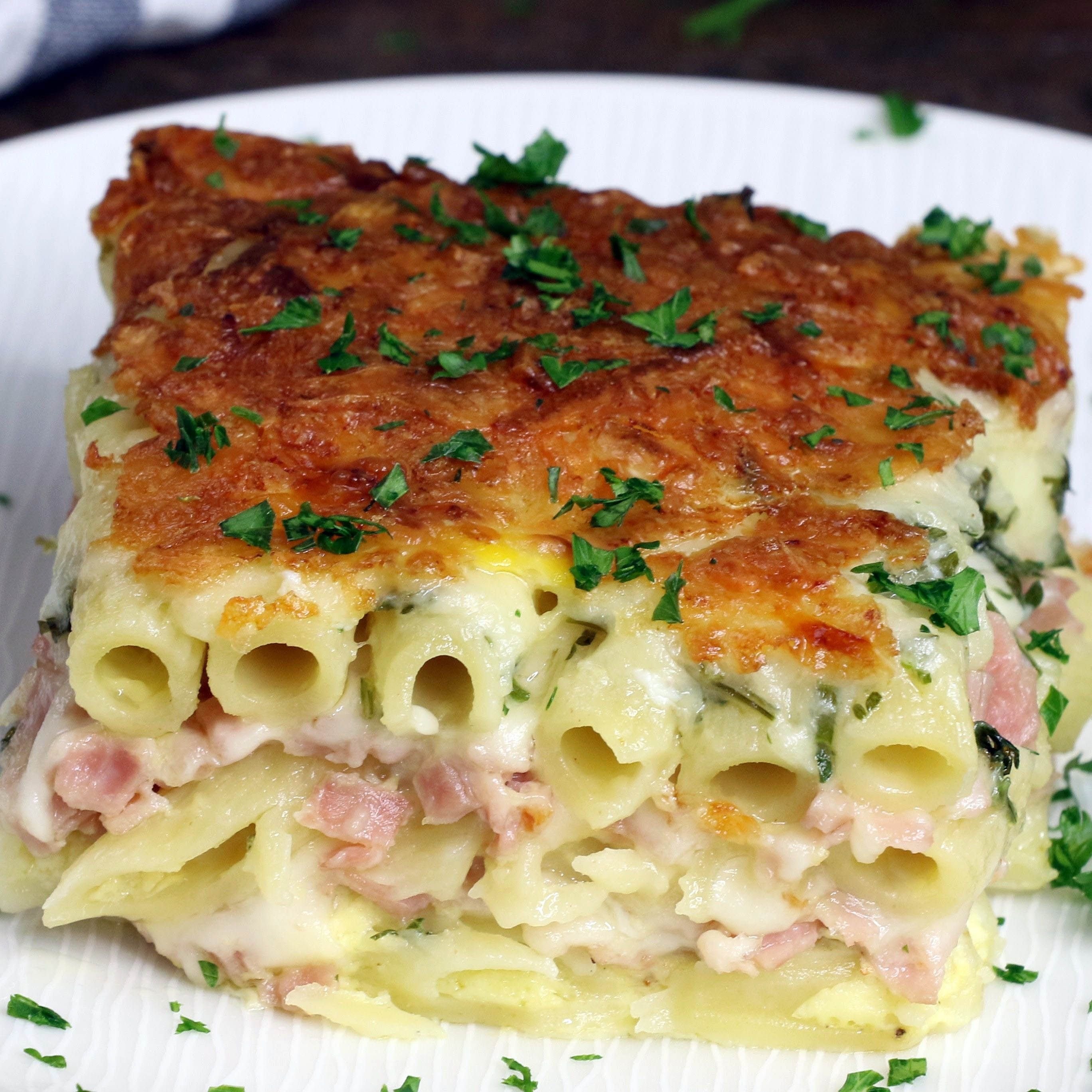 Запеканка из макарон в духовке с курицей и сыром и помидорами