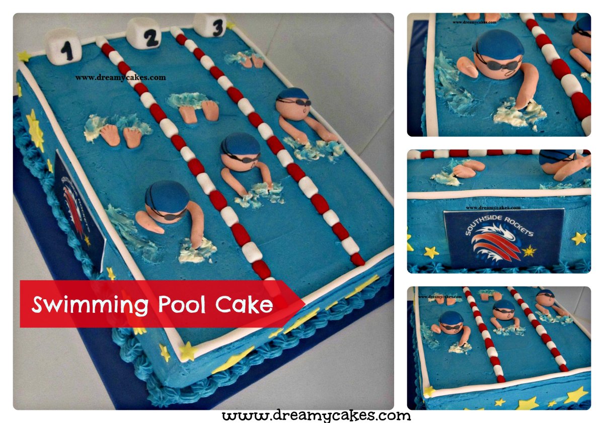 Торт бассейн с пловцами