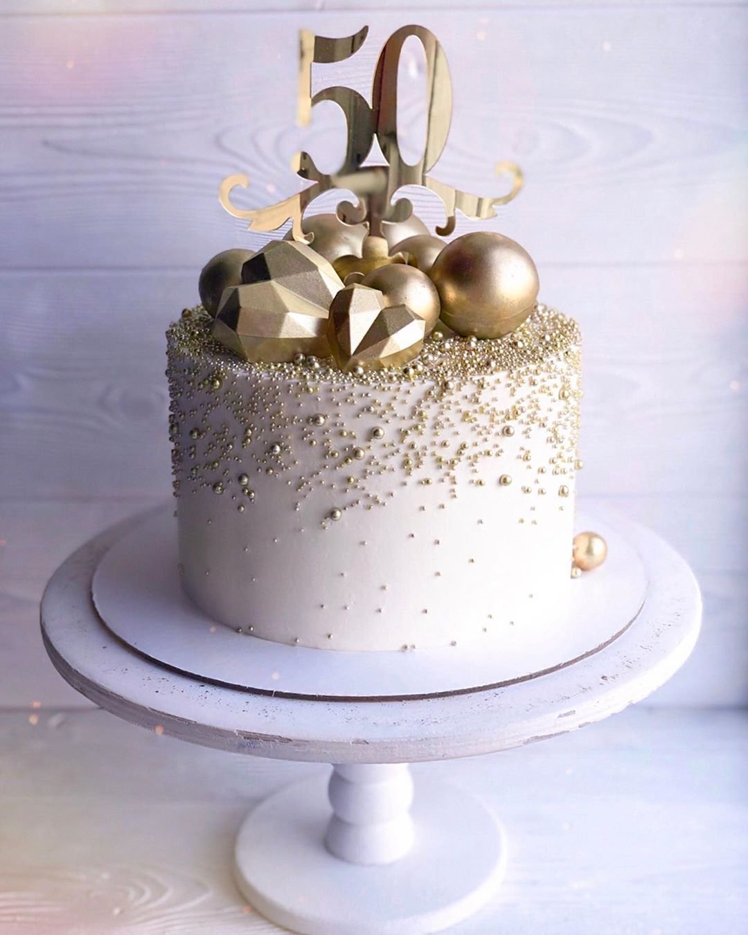 Торт на золотую свадьбу с золотыми шарами