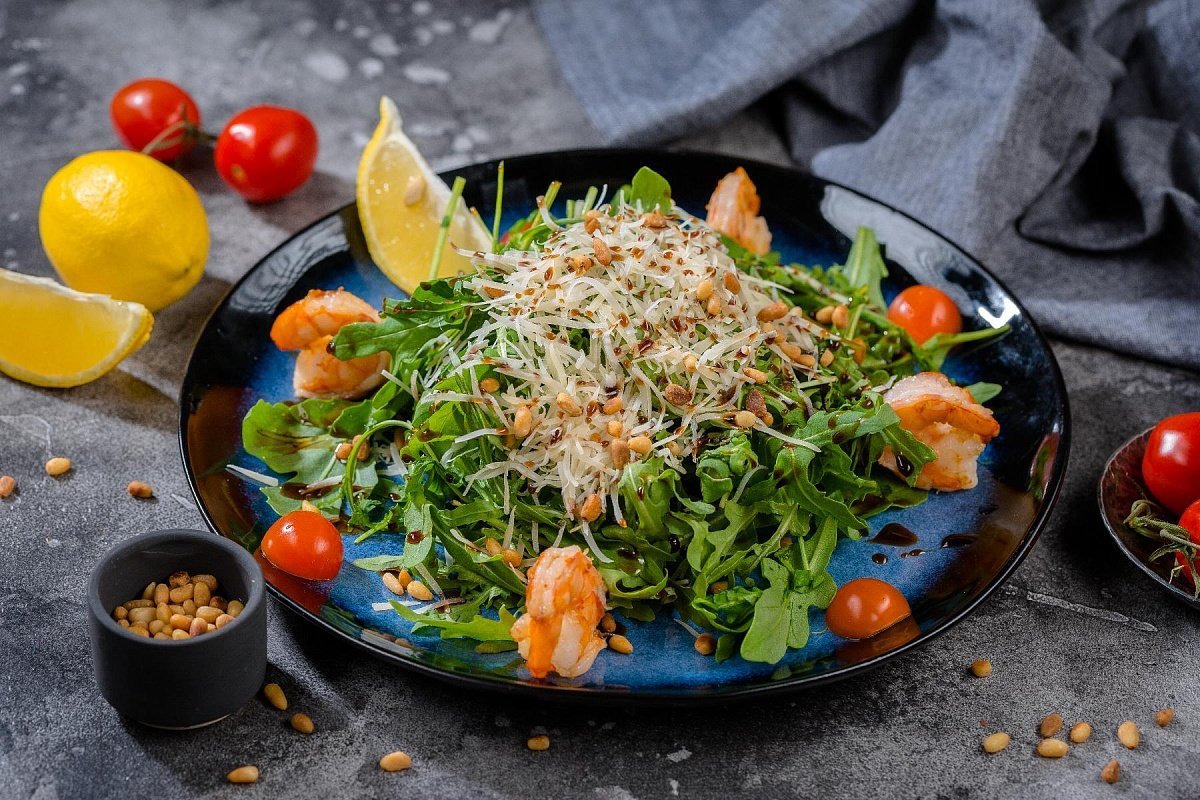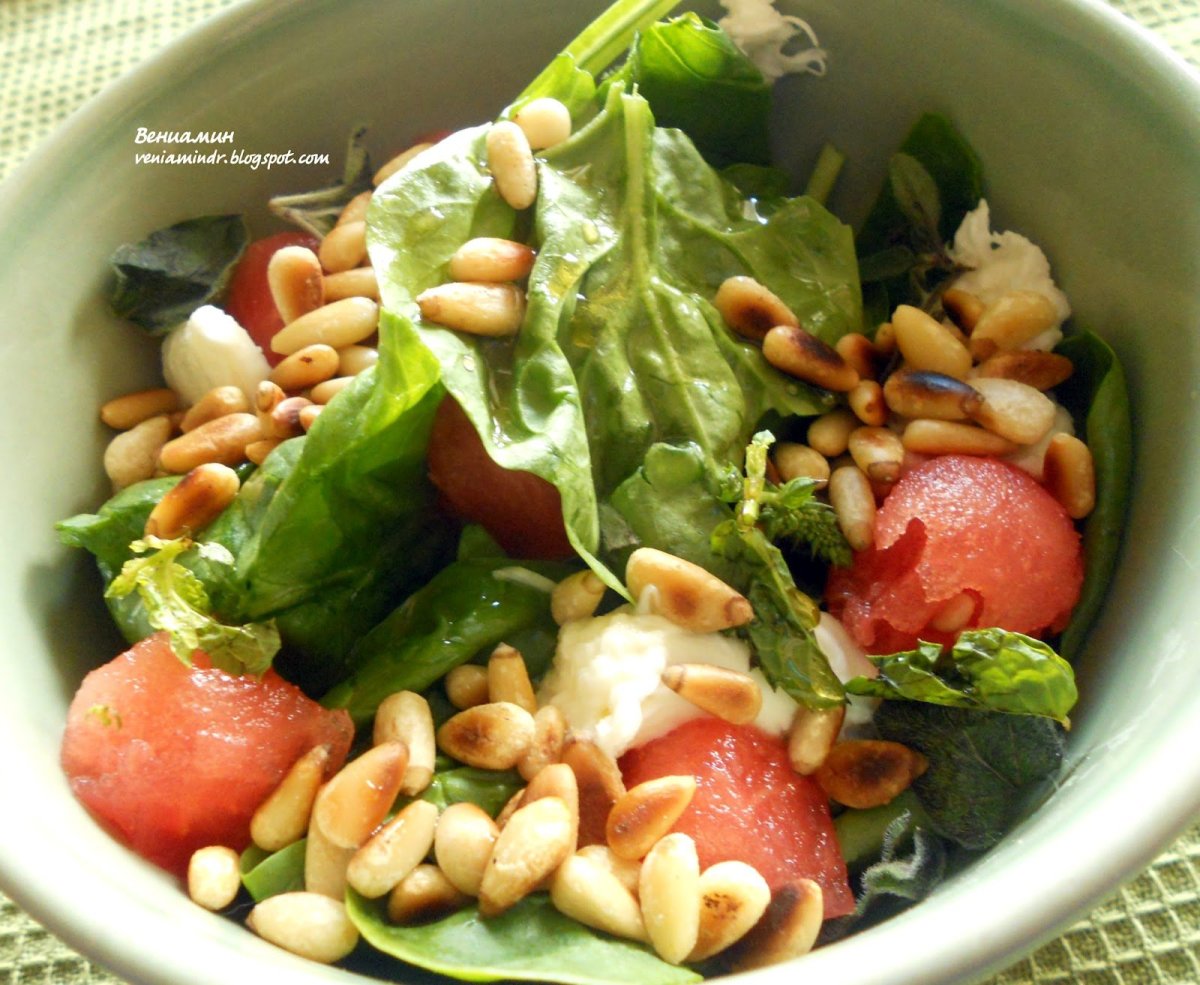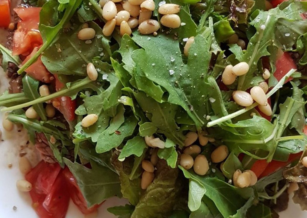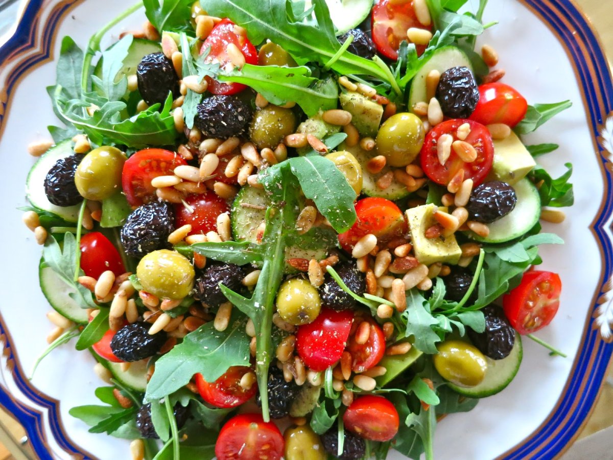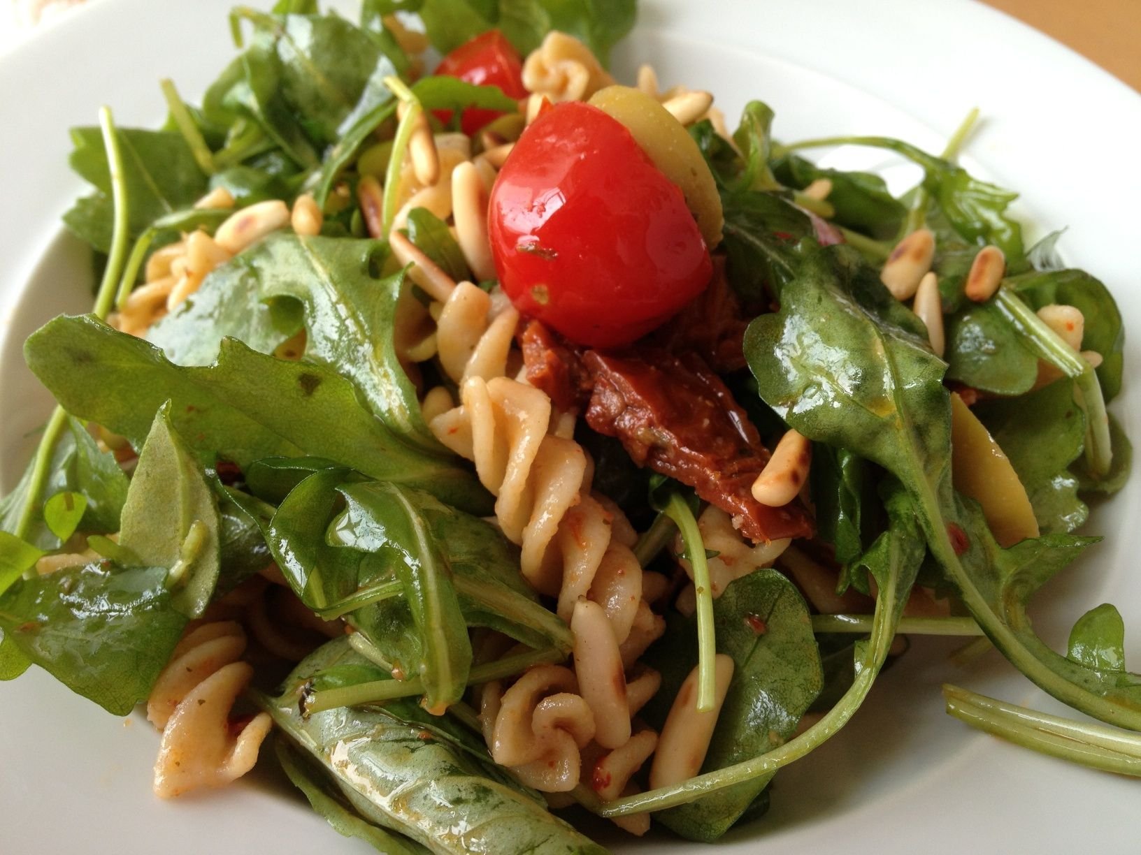 Салат с вялеными помидорами и рукколой и кедровыми орешками