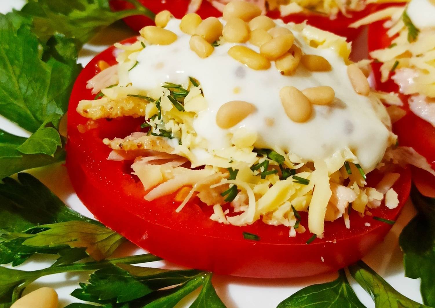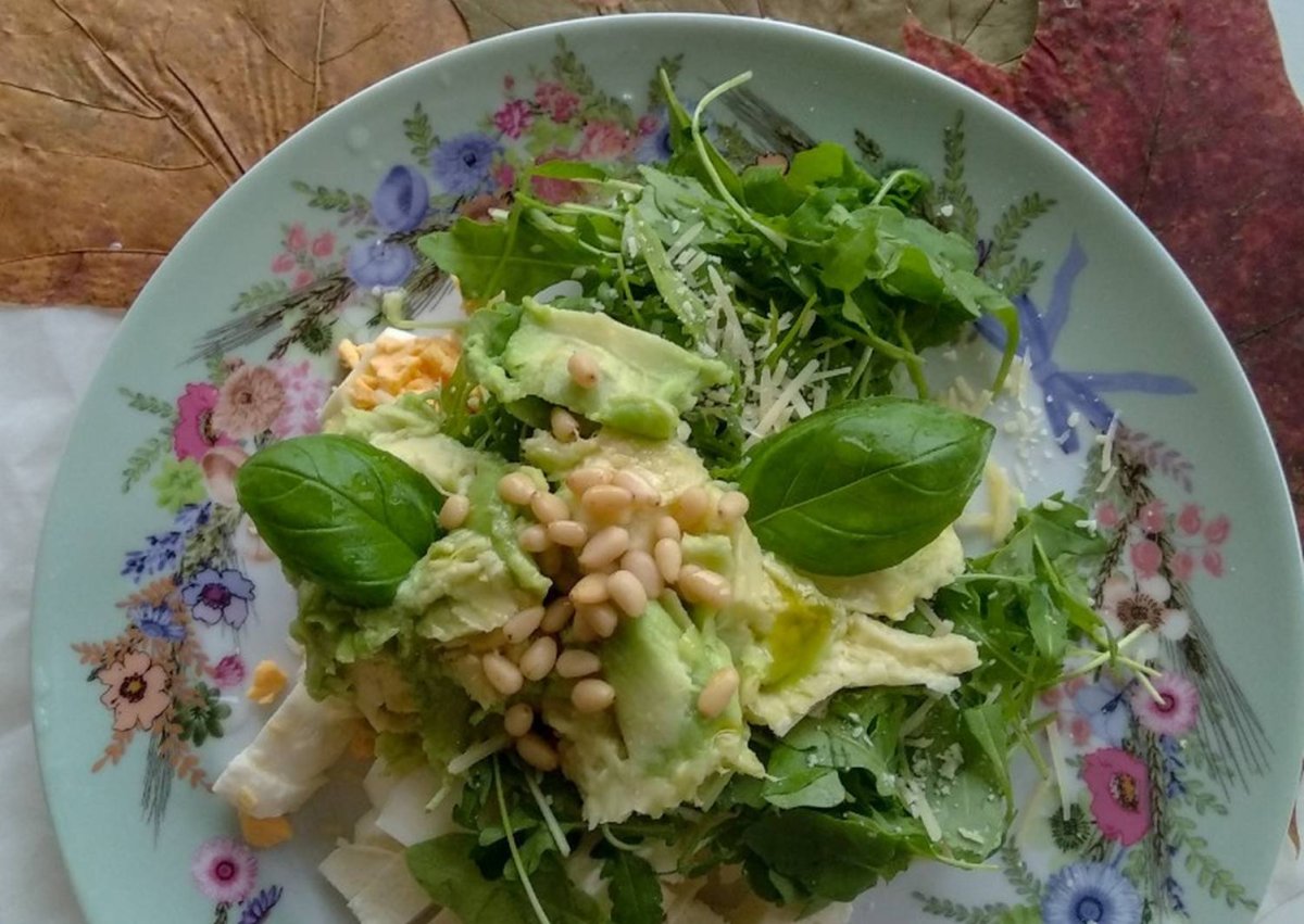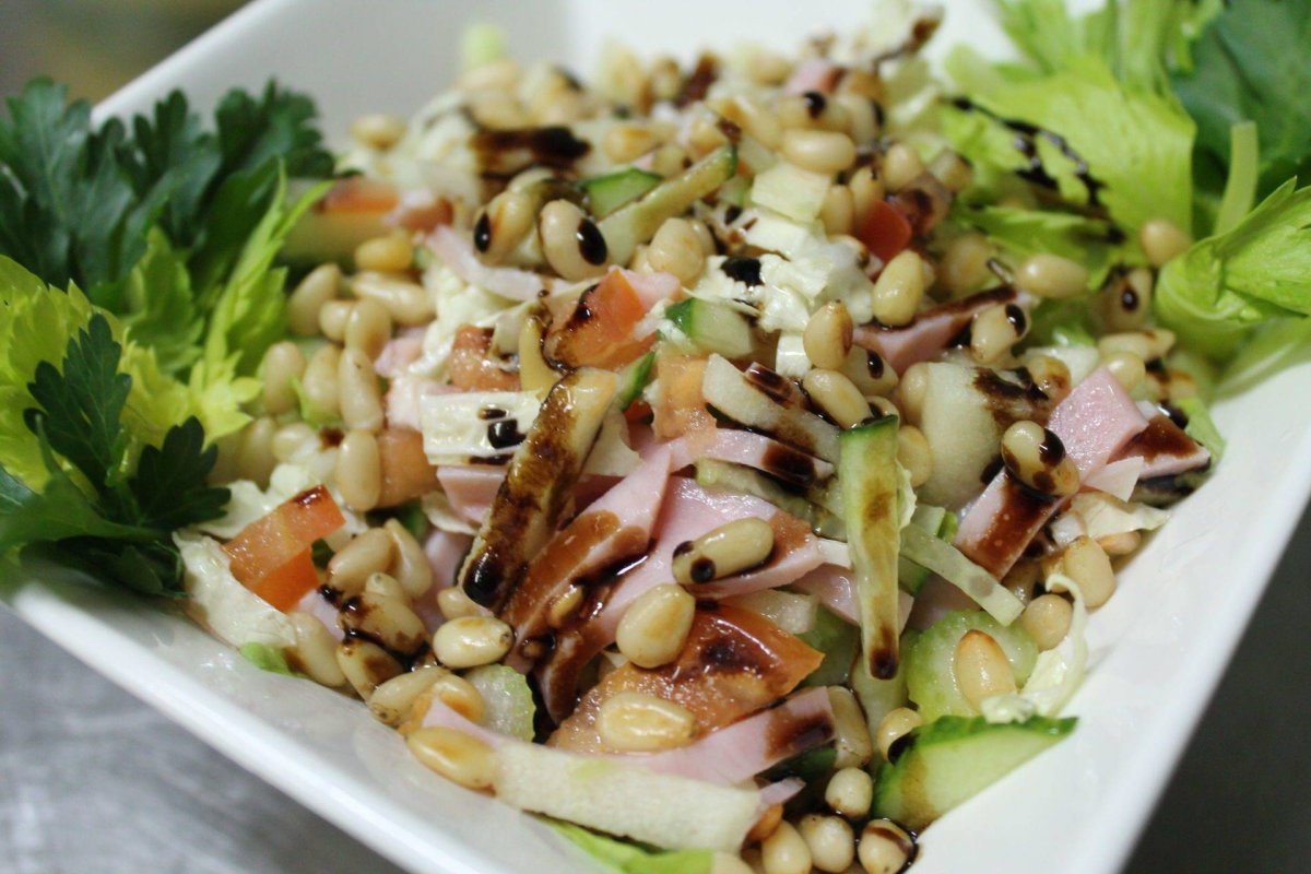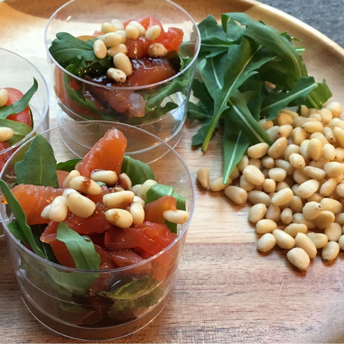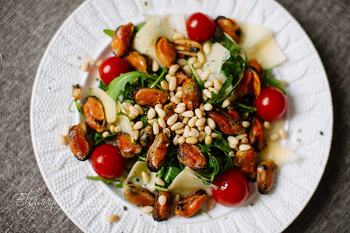 Салат с вялеными помидорами и рукколой и кедровыми орешками