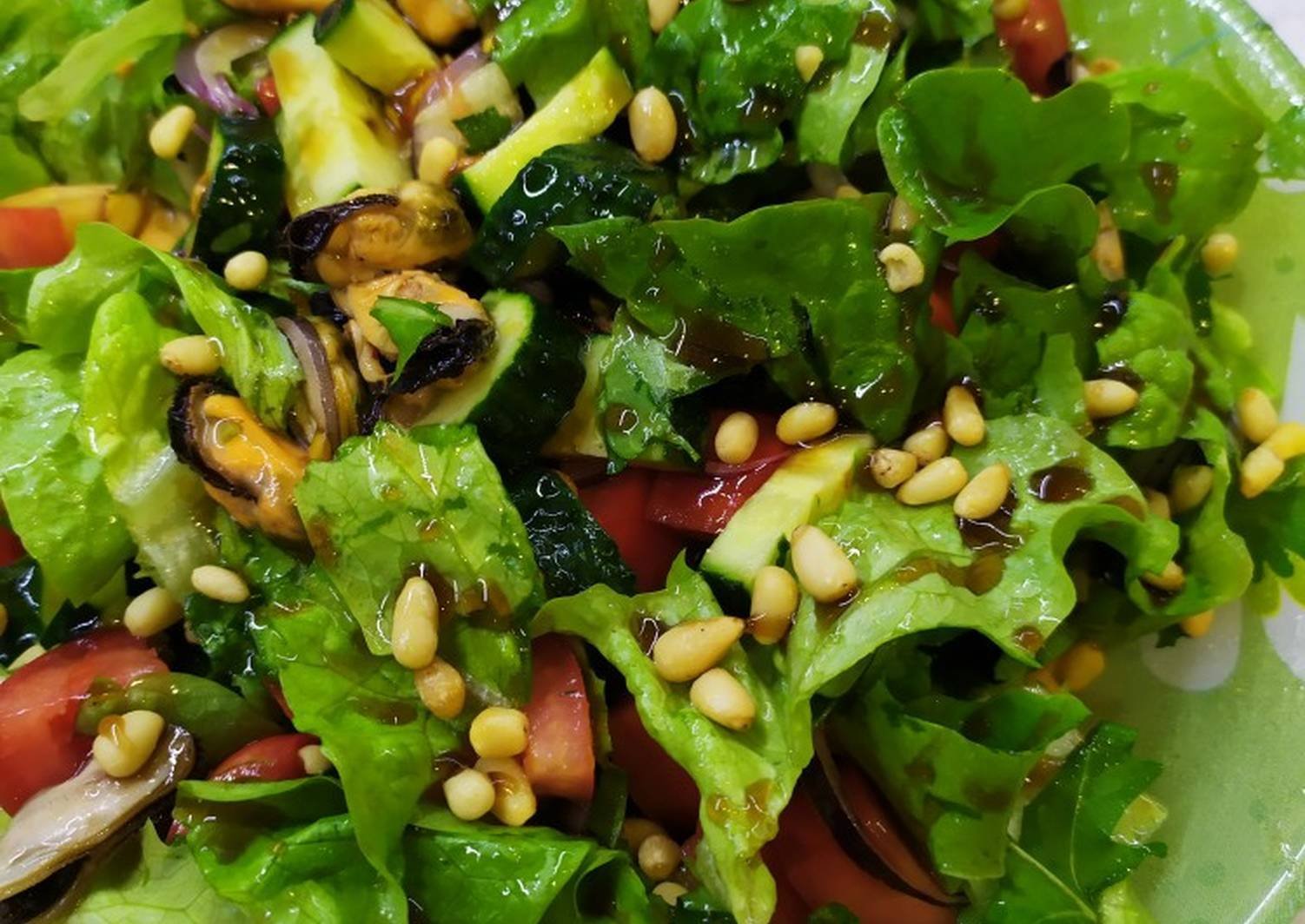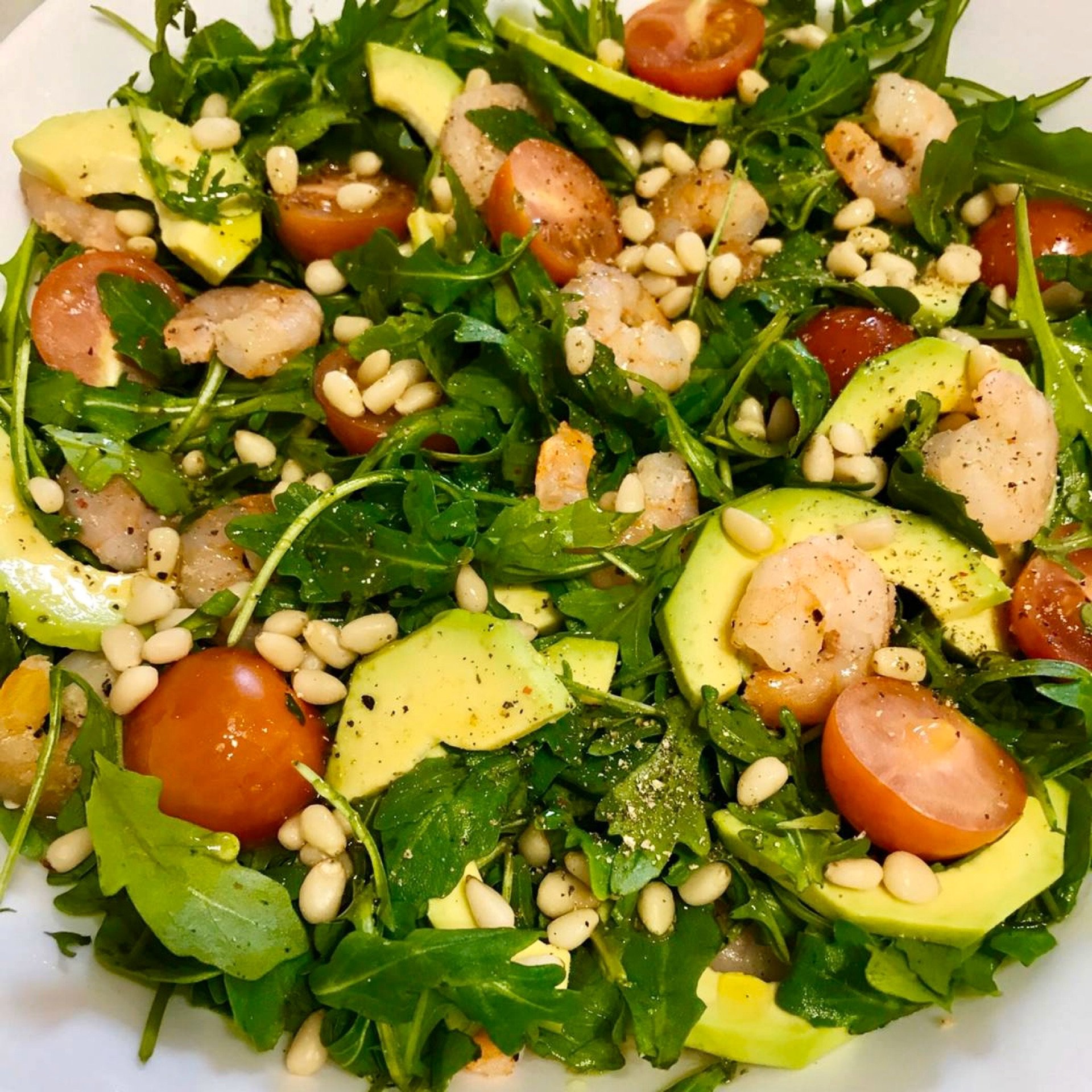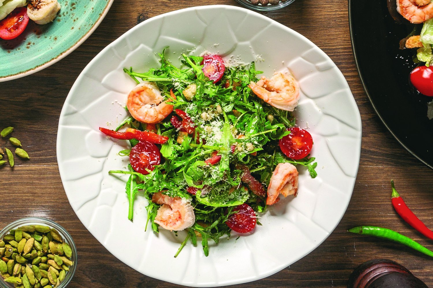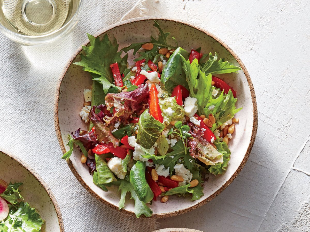 Салат с вялеными помидорами и рукколой и кедровыми орешками