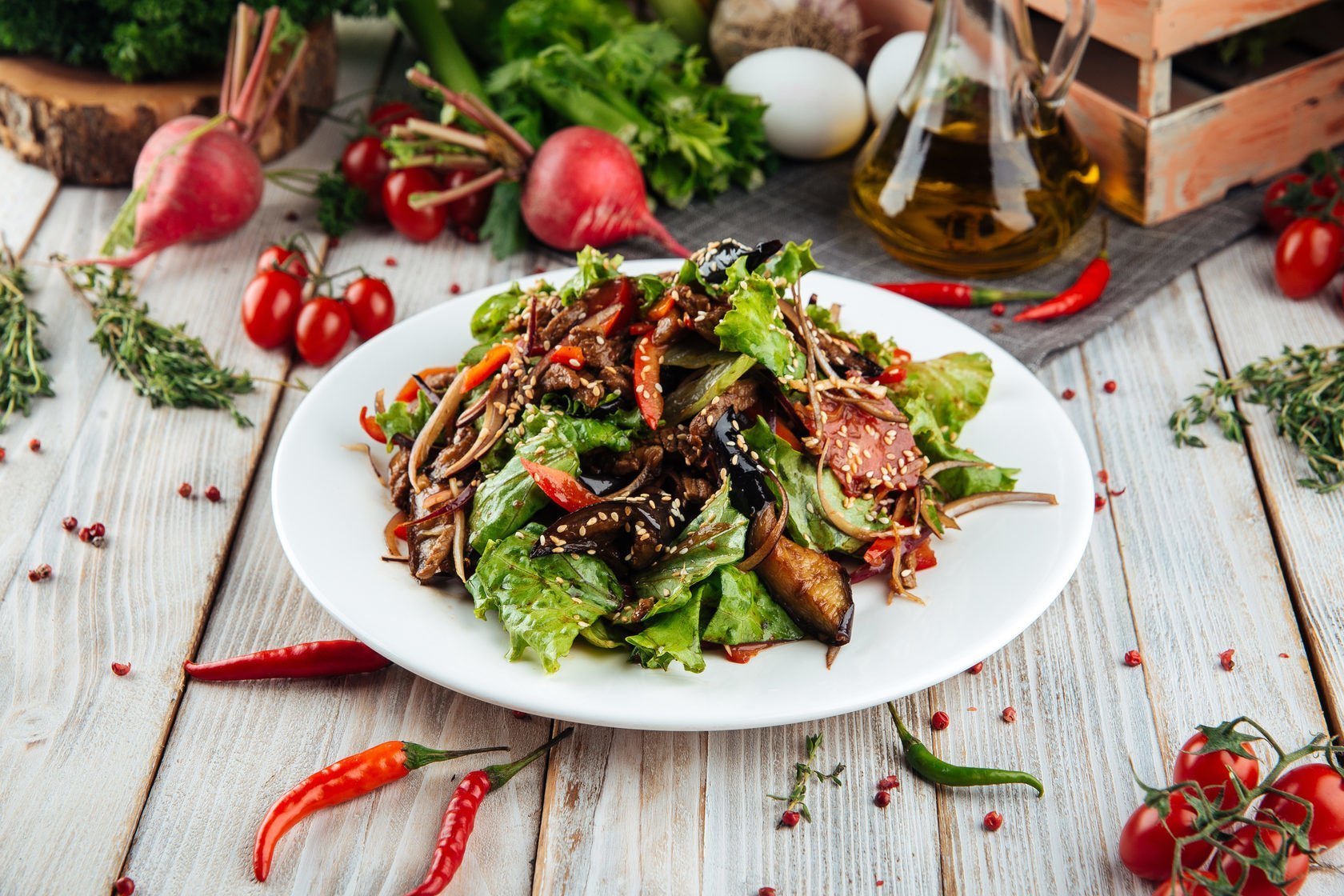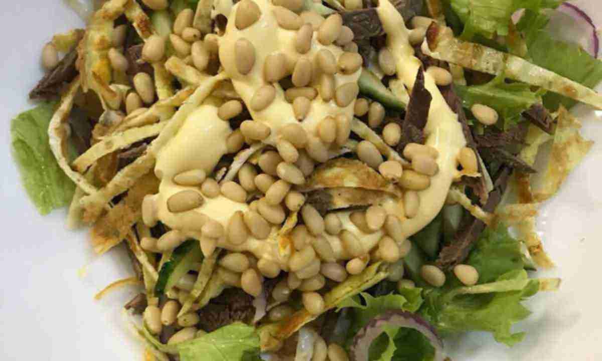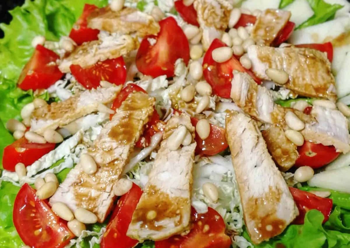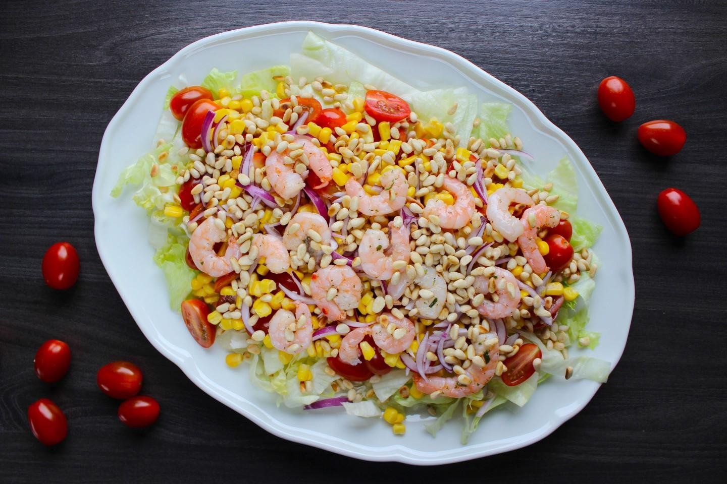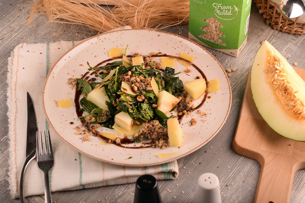 Салат с вялеными помидорами и рукколой и кедровыми орешками