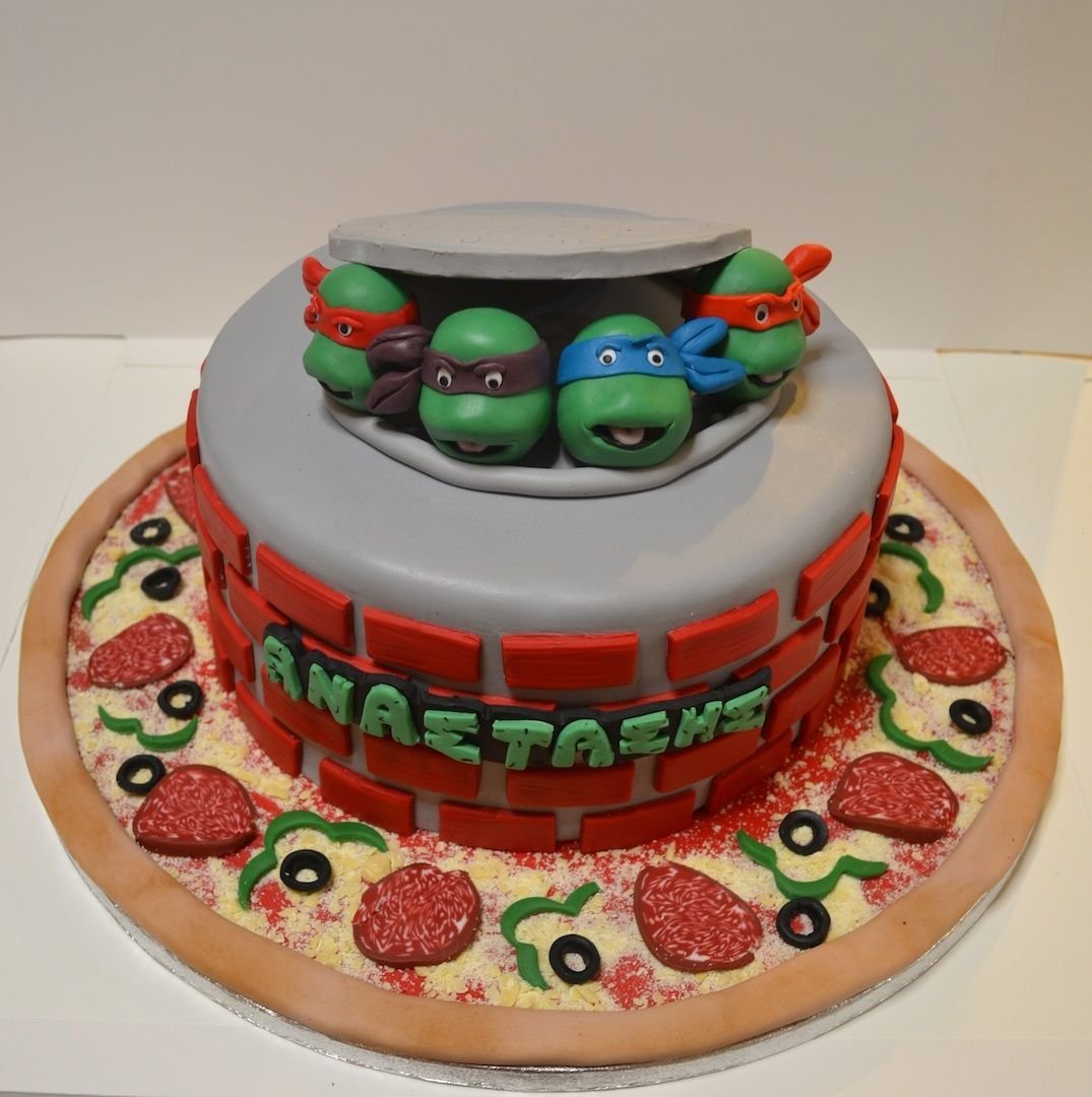 Торт в виде пиццы с черепашками ниндзя