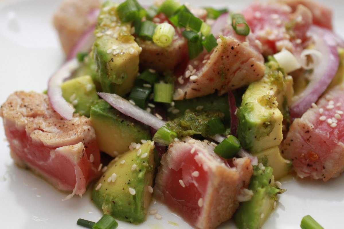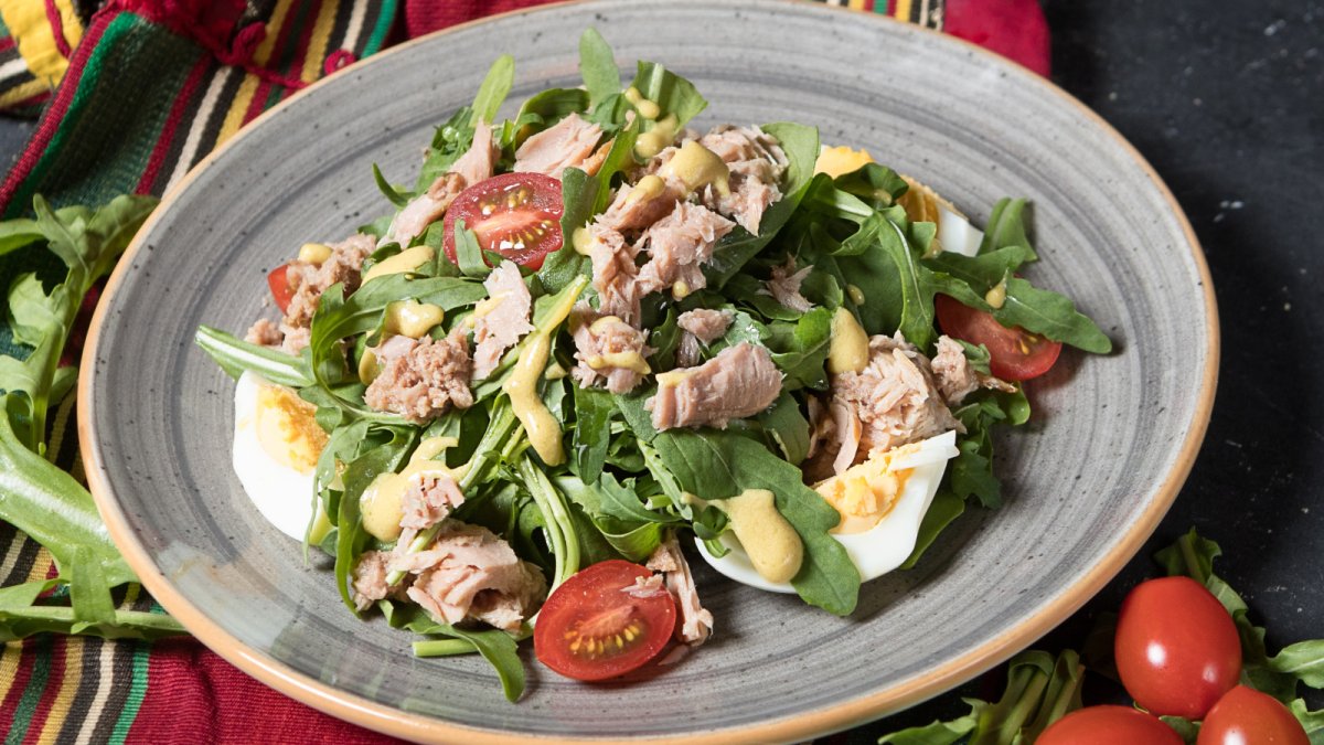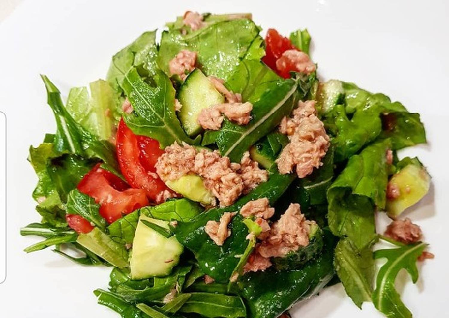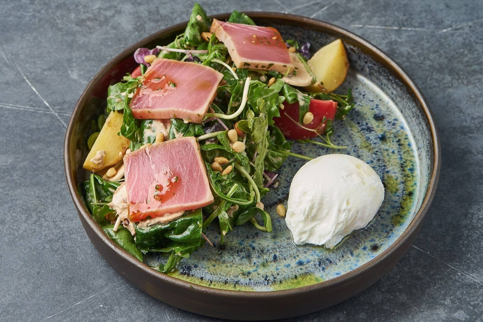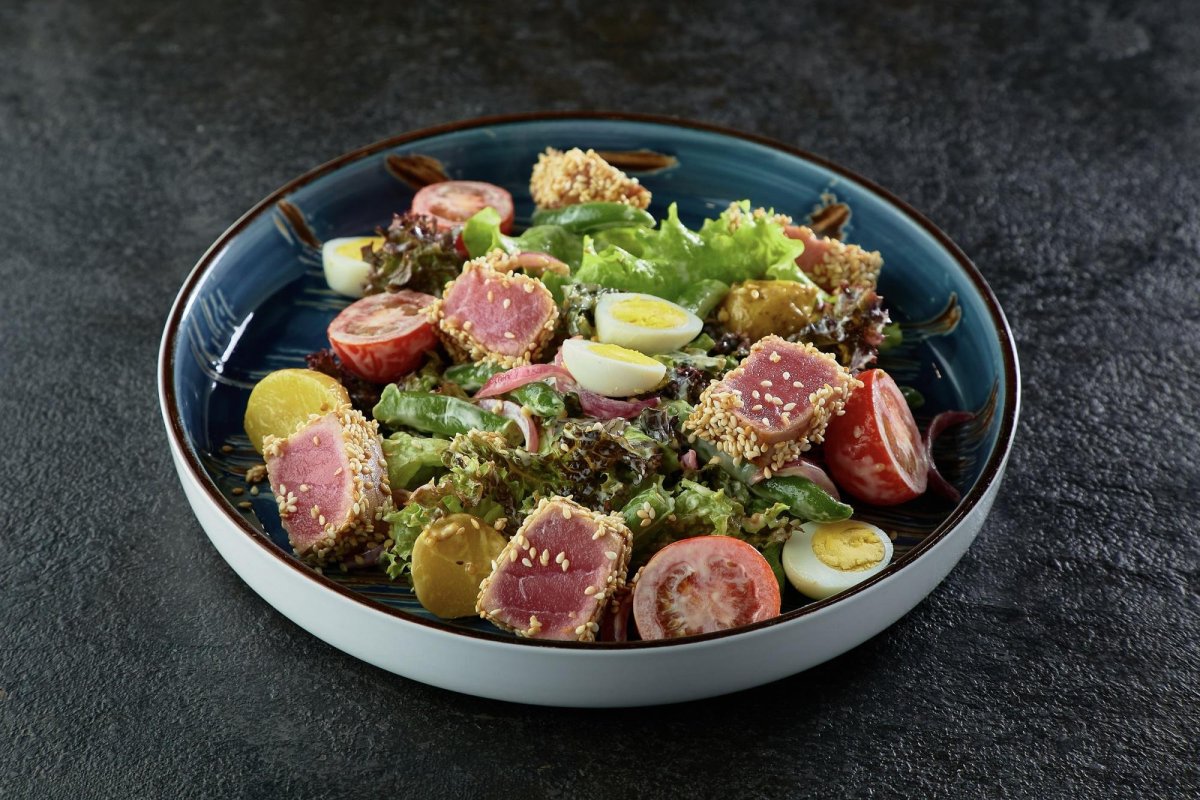 Салат с авокадо и красной рыбой и огурцом и яйцом
