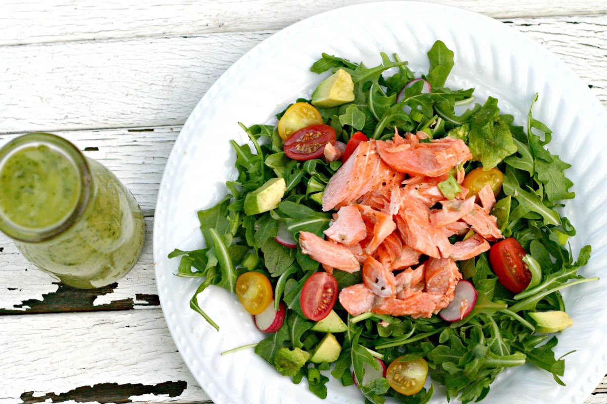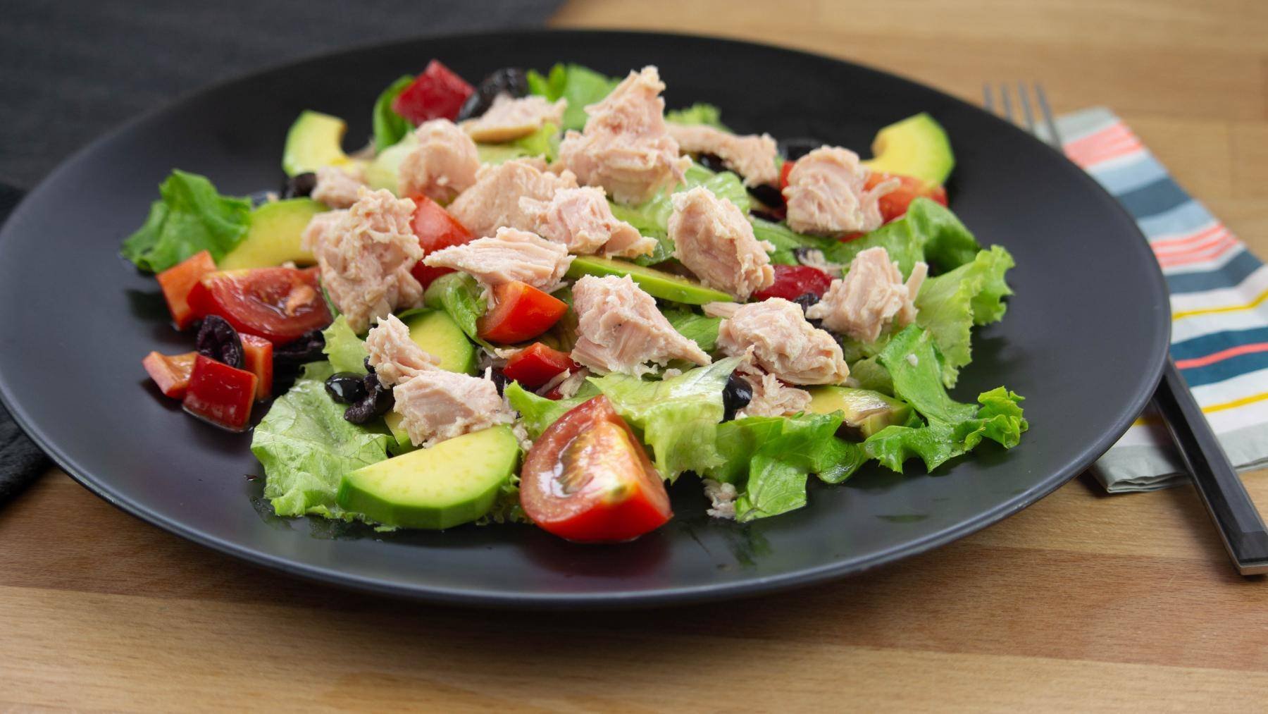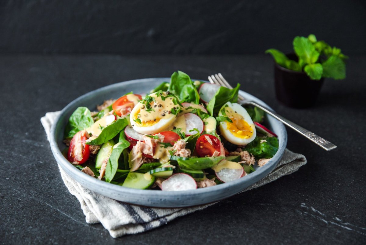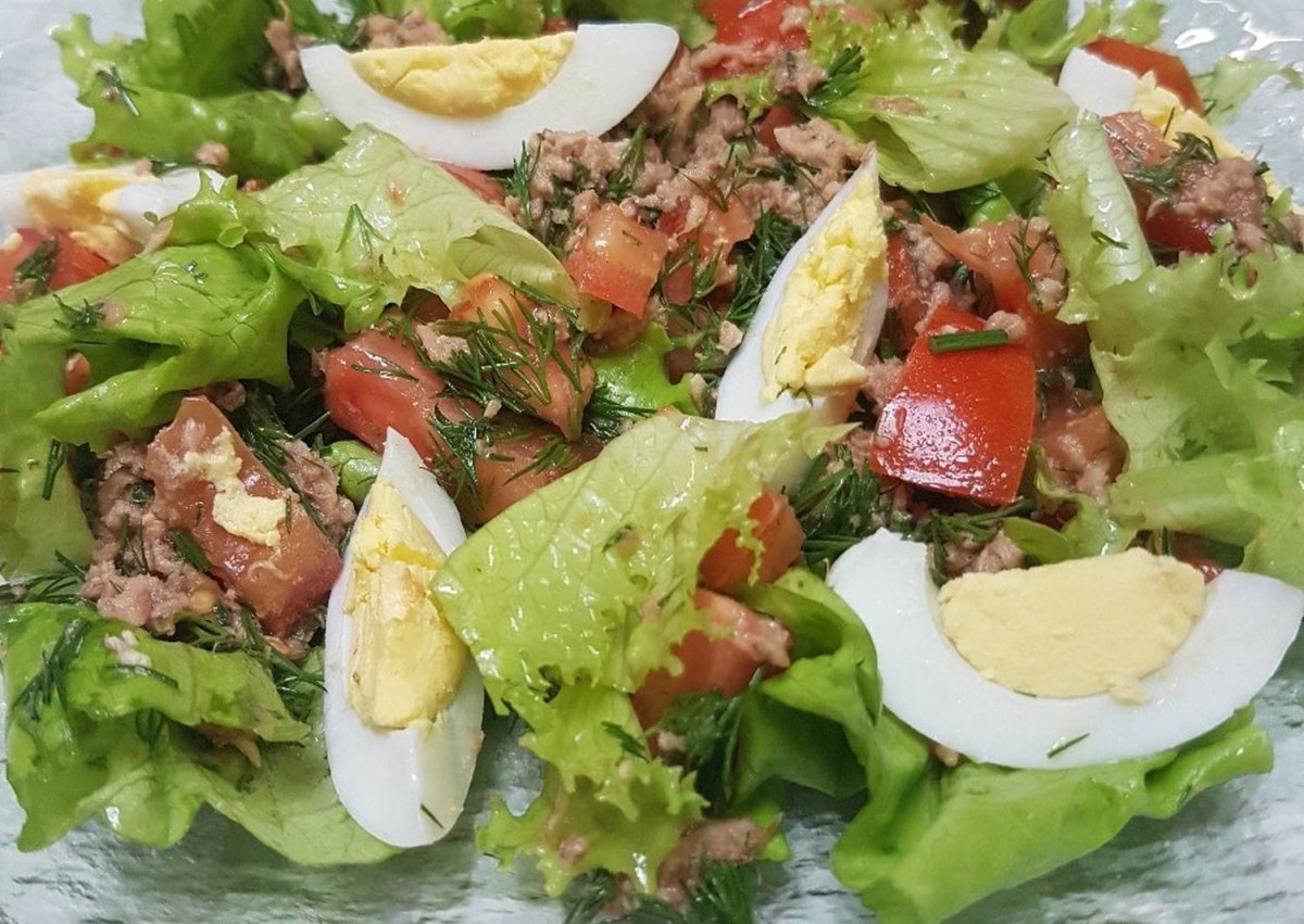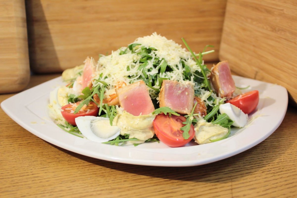 Салат с авокадо и красной рыбой и огурцом и яйцом