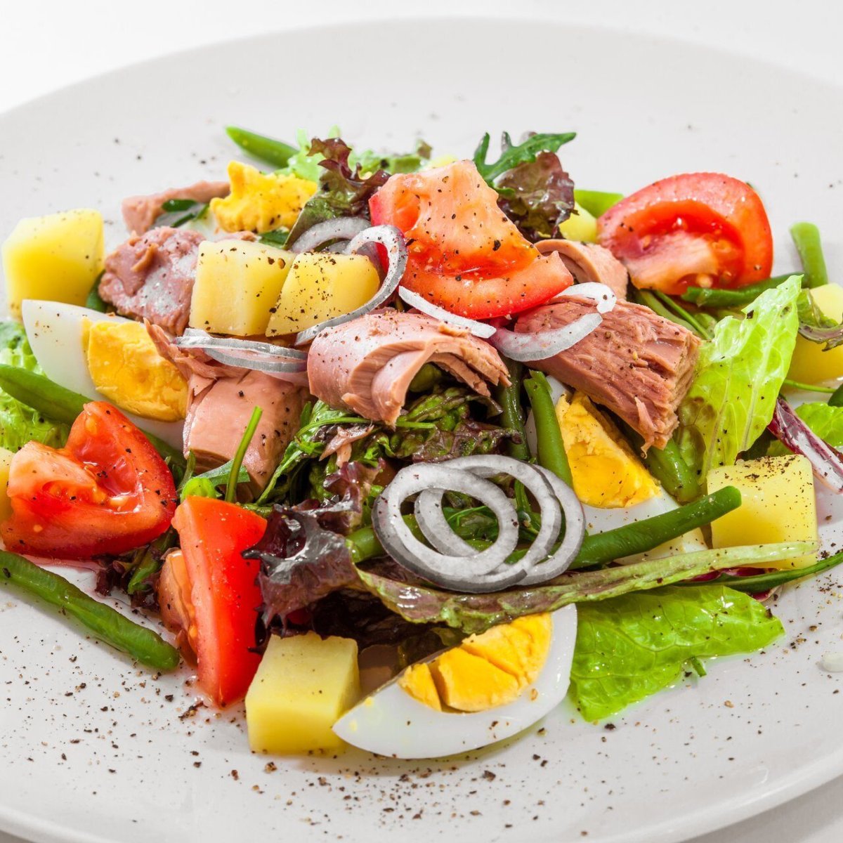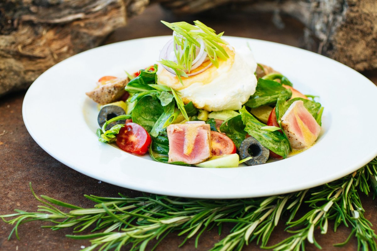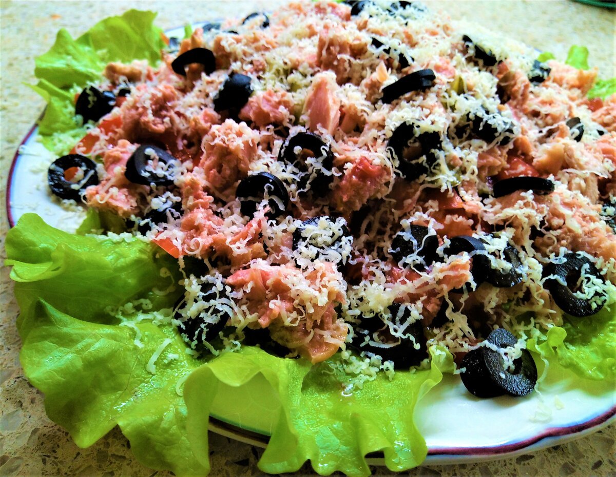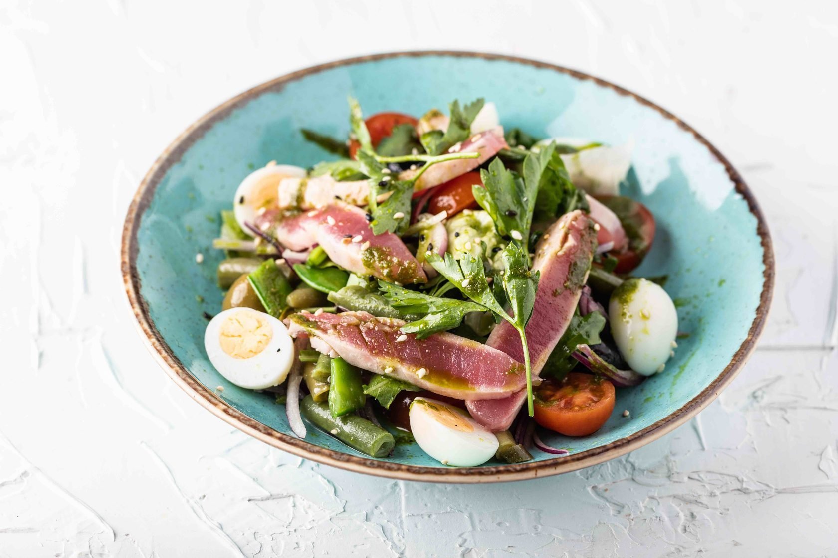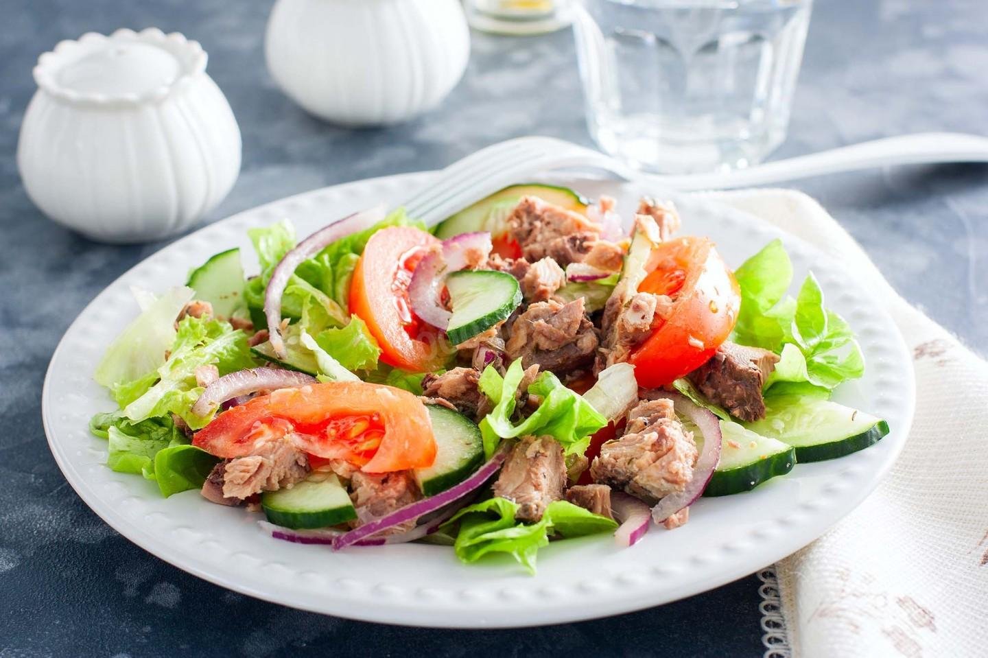 Салат с авокадо и красной рыбой и огурцом и яйцом