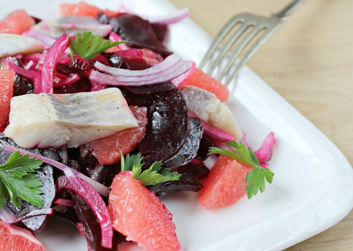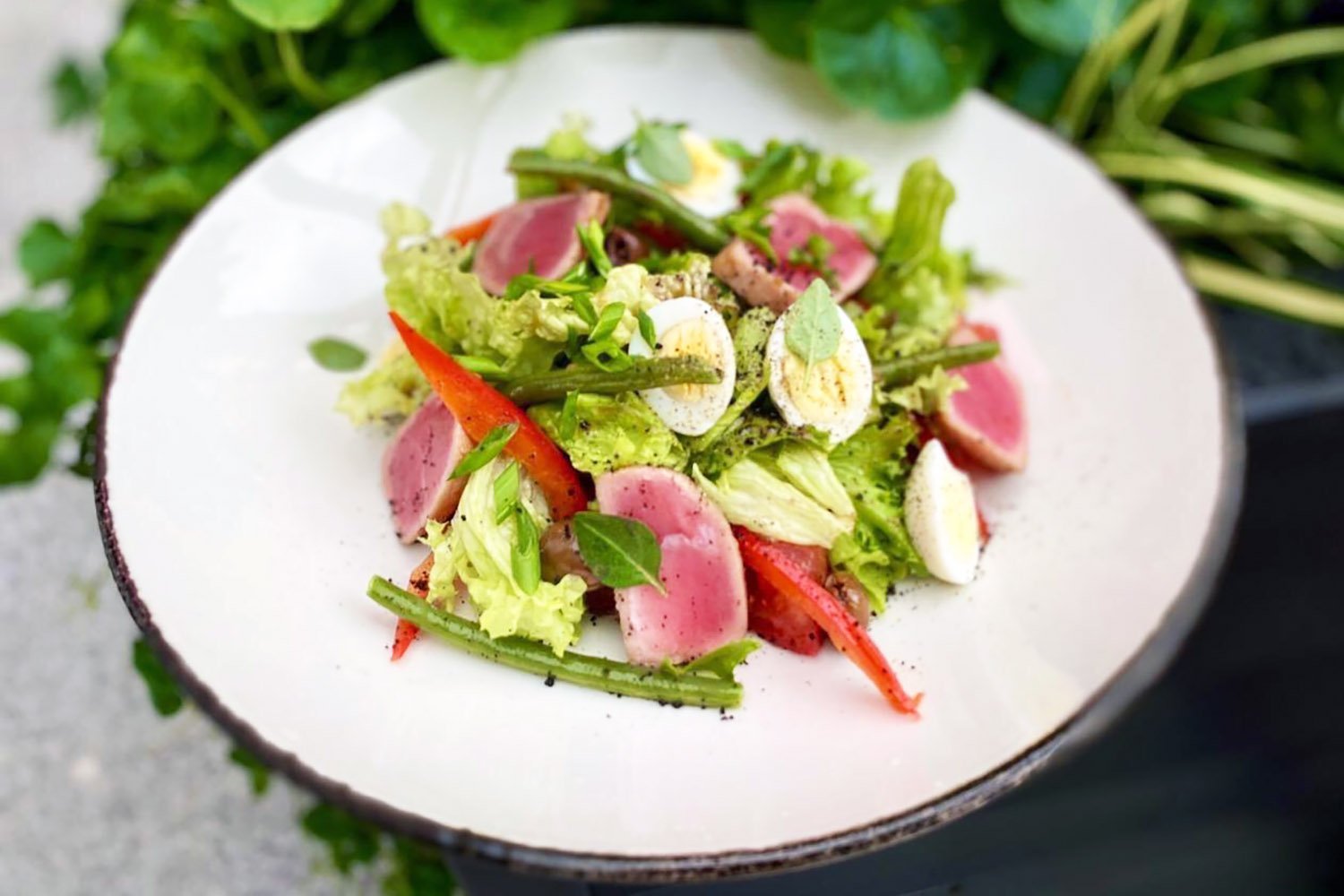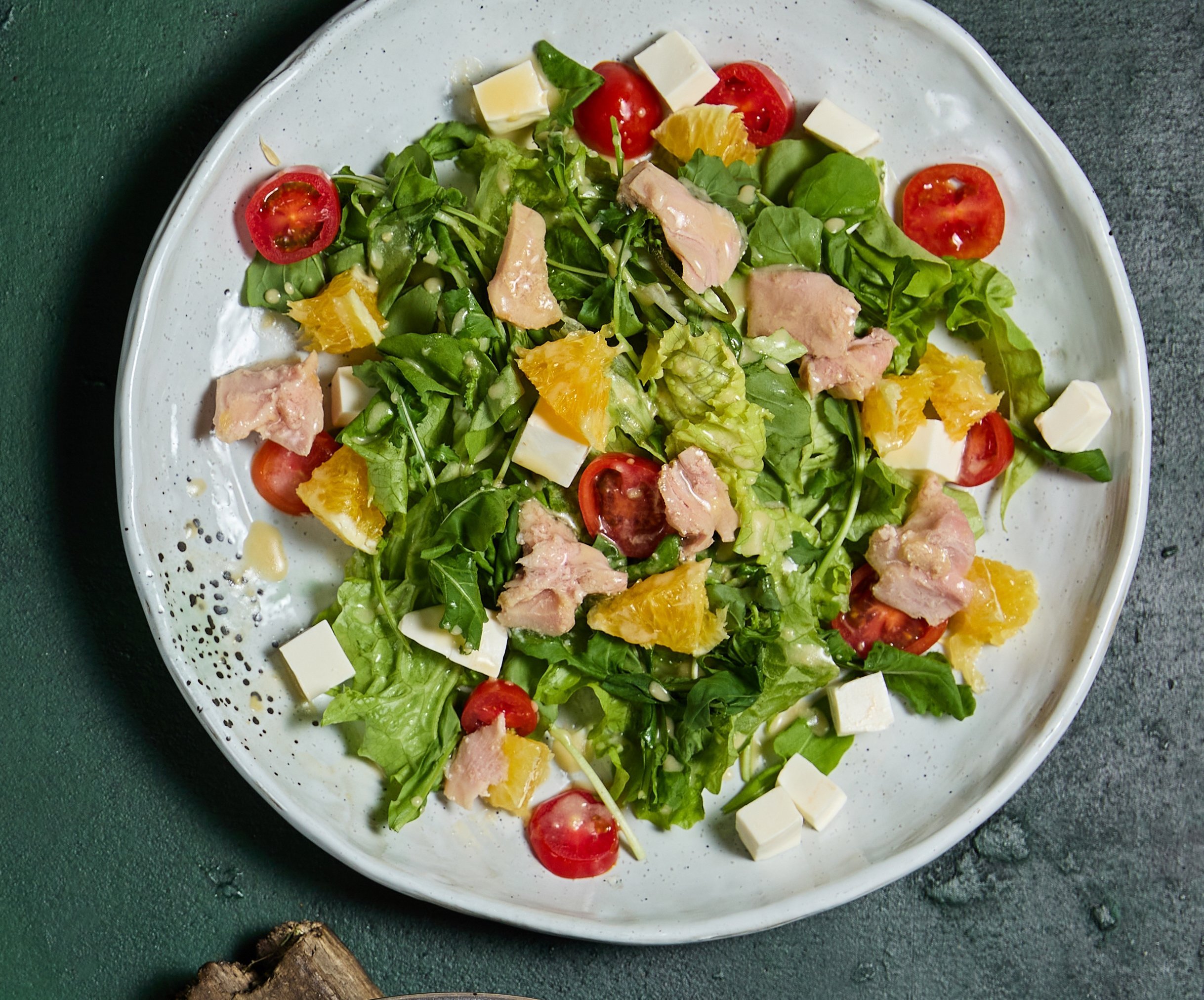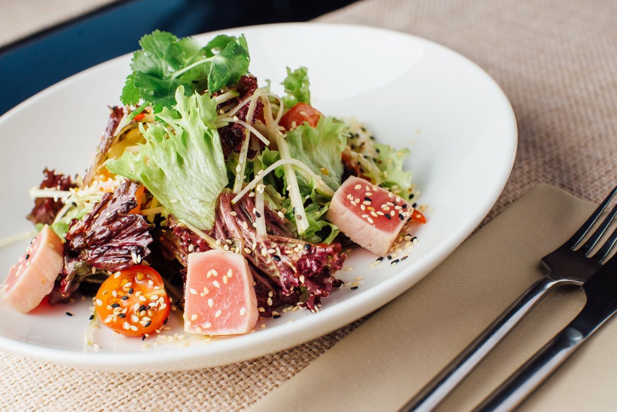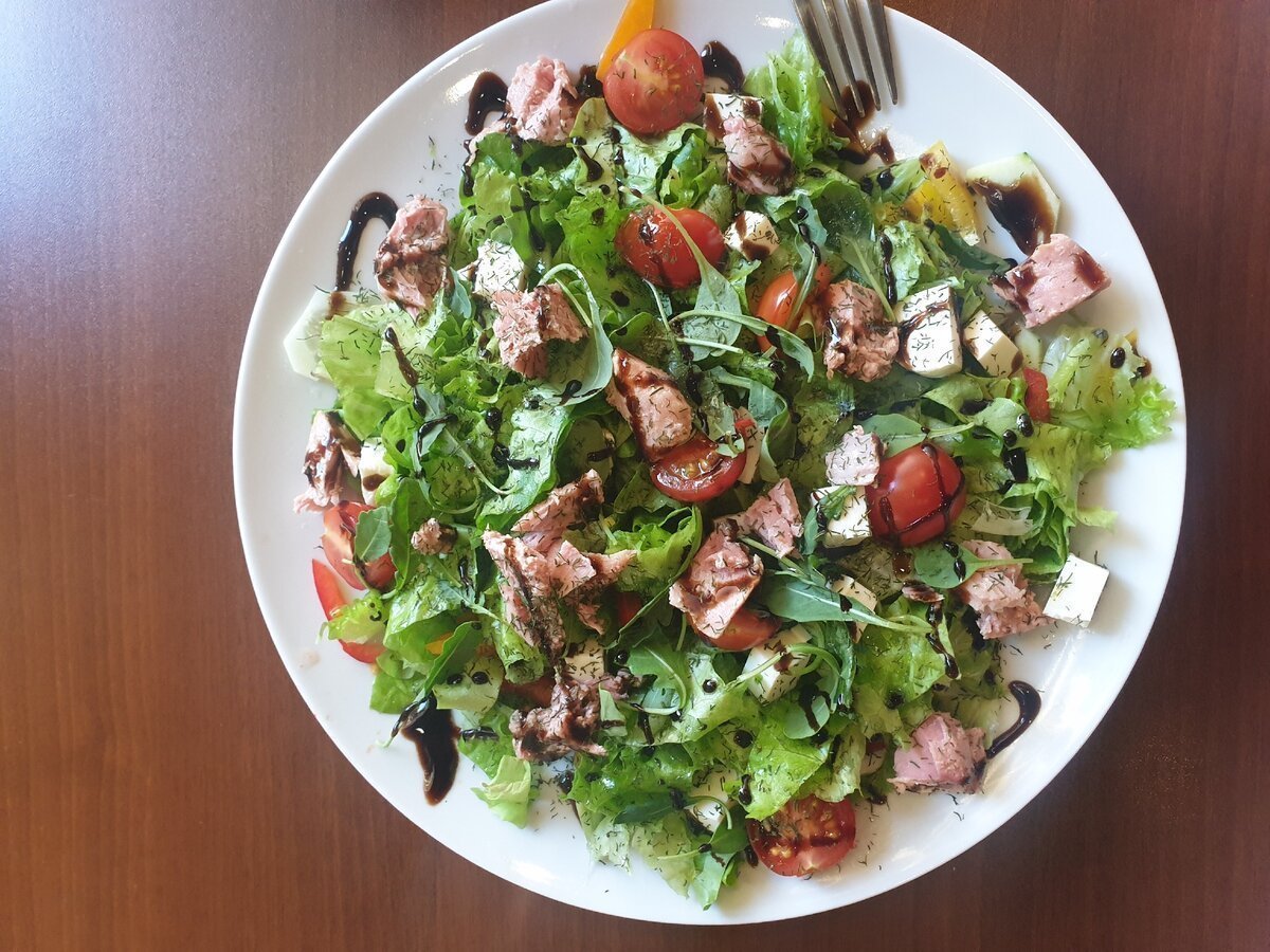 Салат с авокадо и красной рыбой и огурцом и яйцом