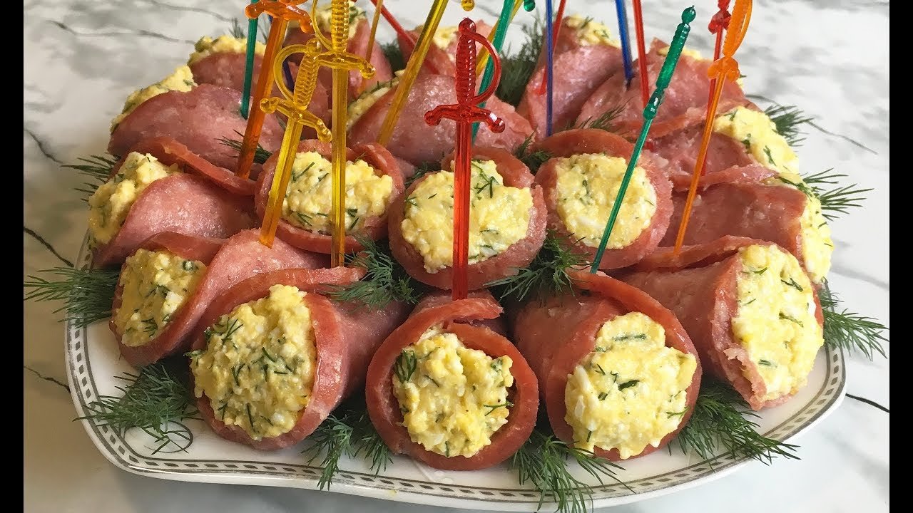 Закуски из колбасы на праздничный