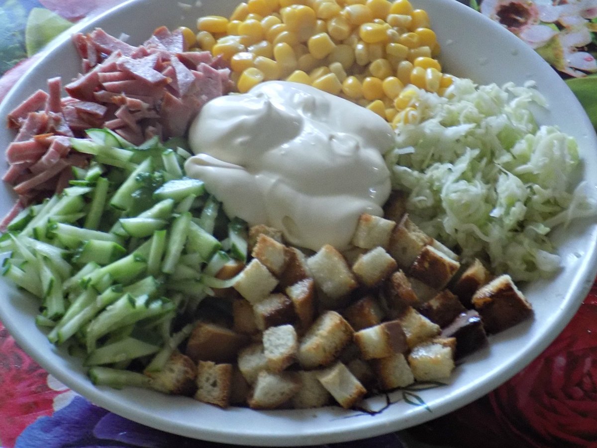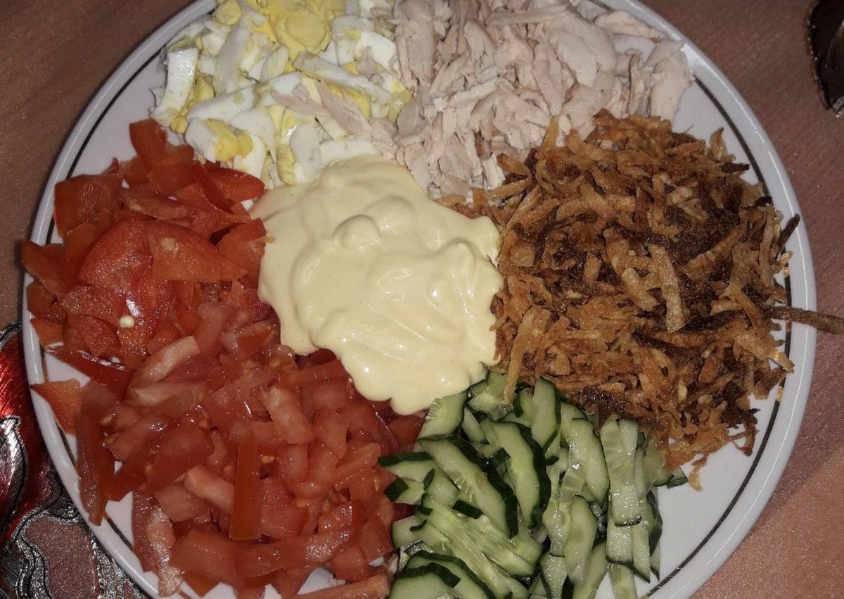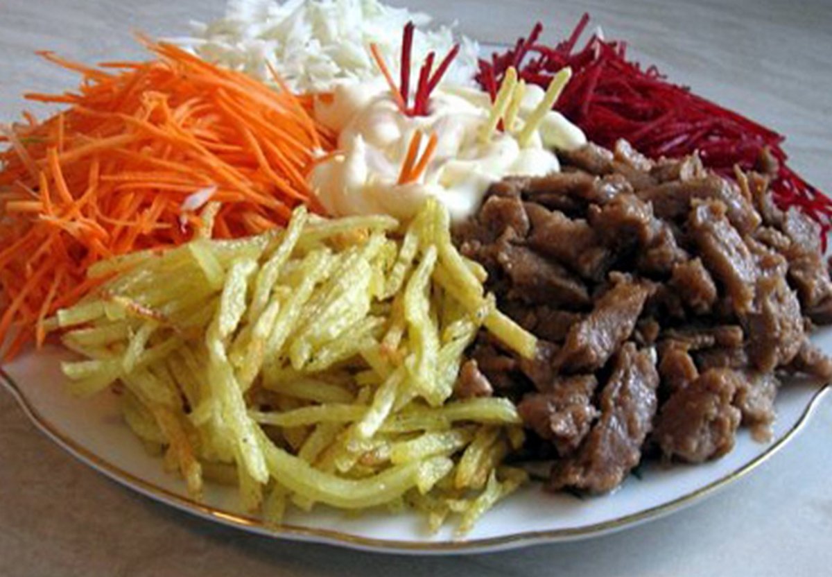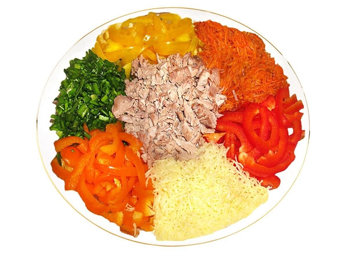 Салат из копчёной курицы с корейской морковкой и огурцом