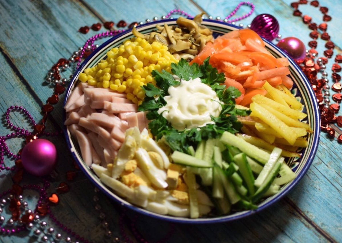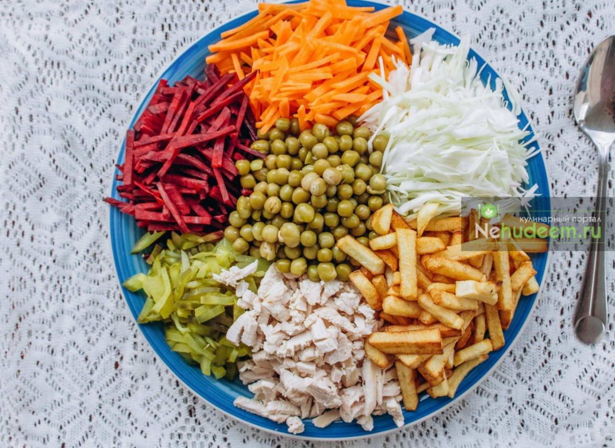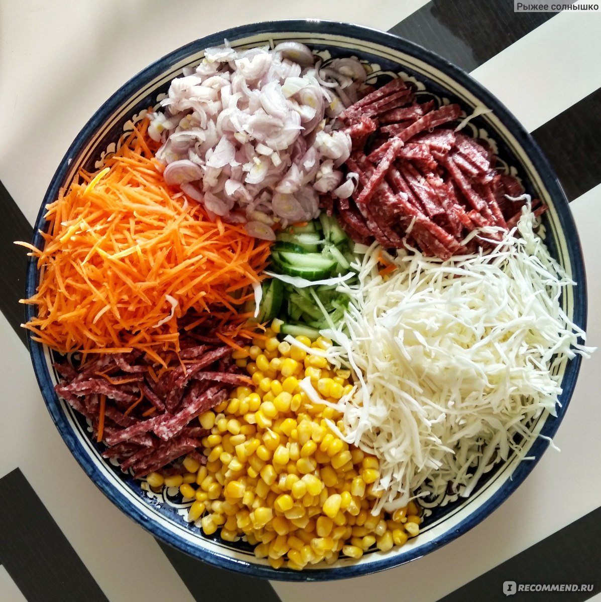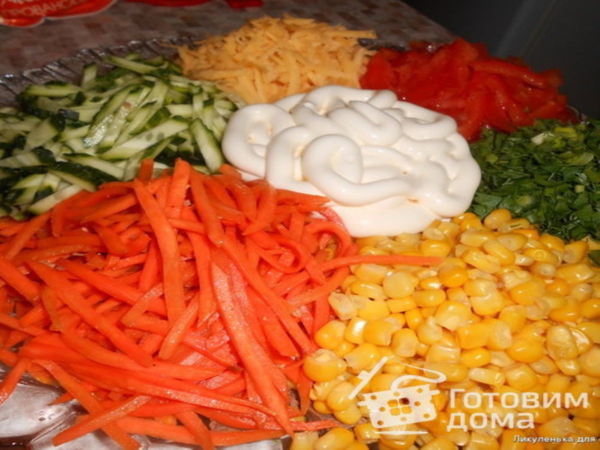 Салат Калейдоскоп с чипсами и корейской морковкой