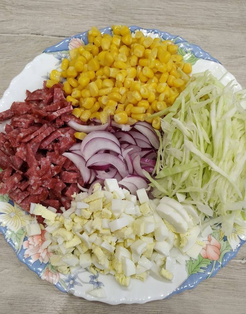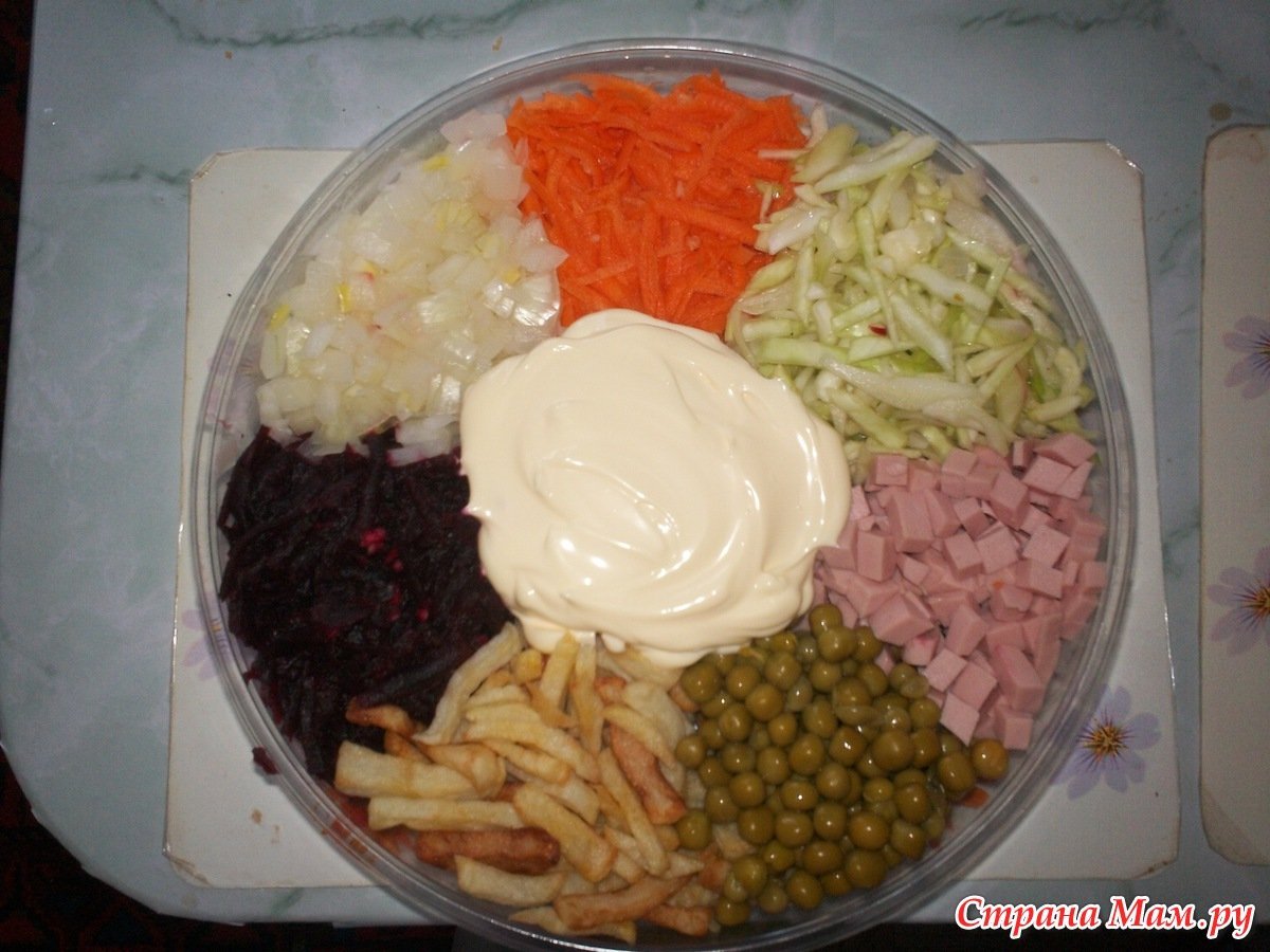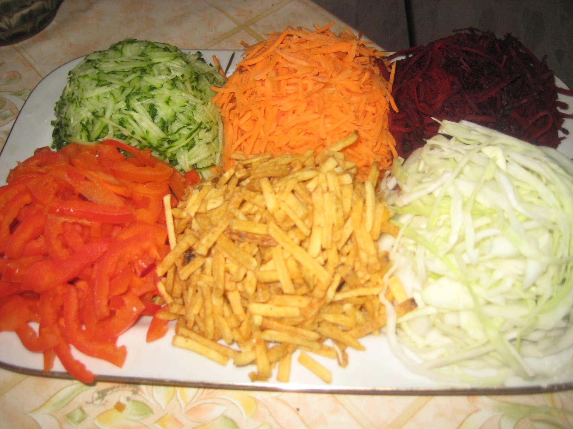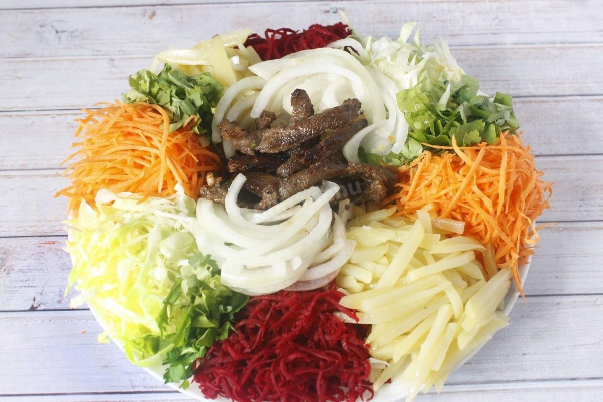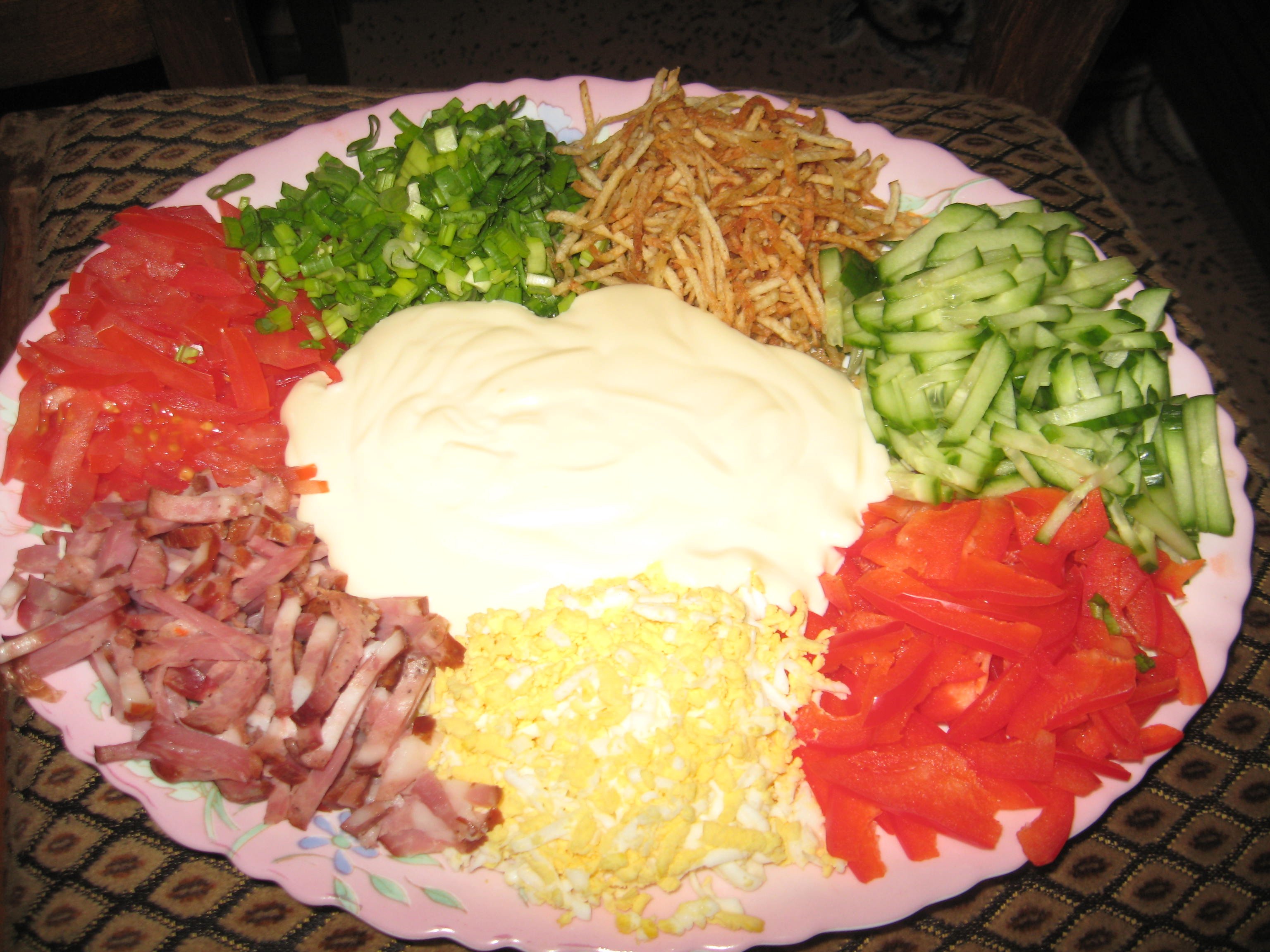 Салат Калейдоскоп с чипсами и корейской морковкой