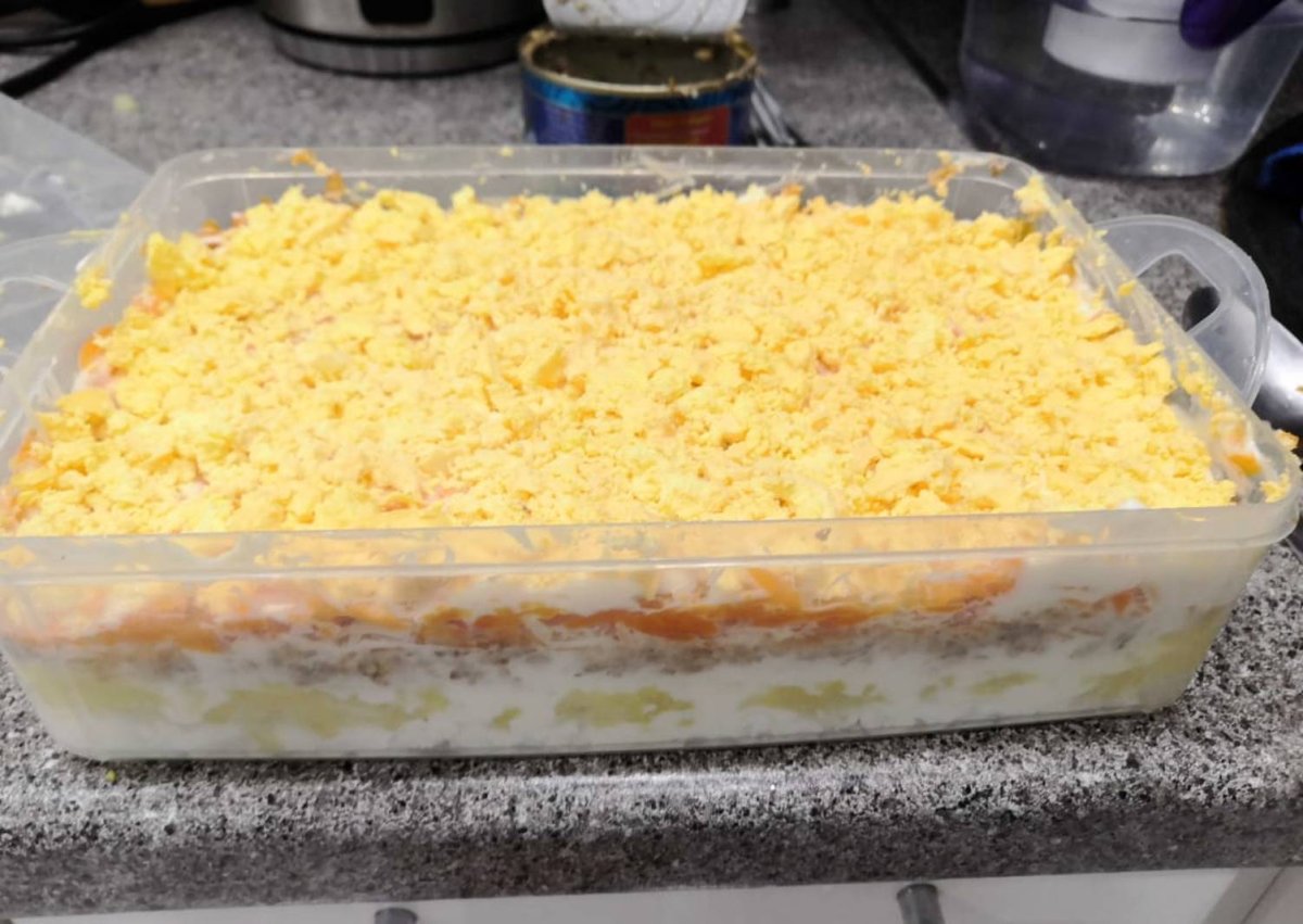 Пошаговый рецепт салата Мимоза с плавленным сыром
