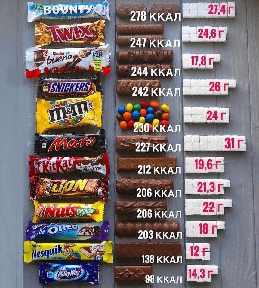 Калорийность шоколадных батончиков