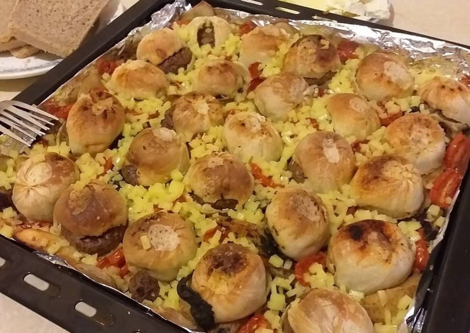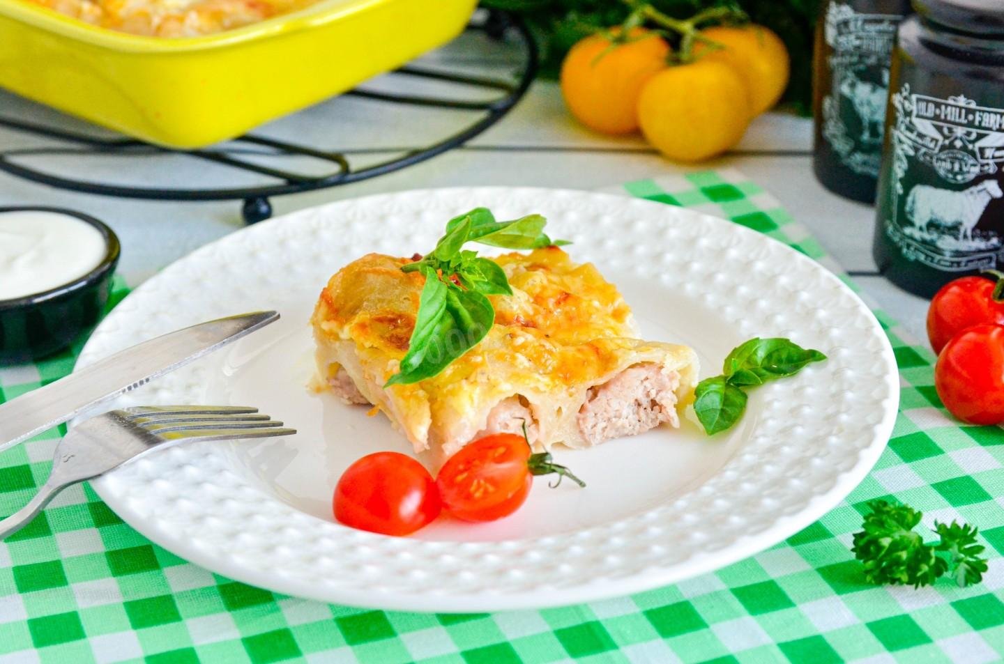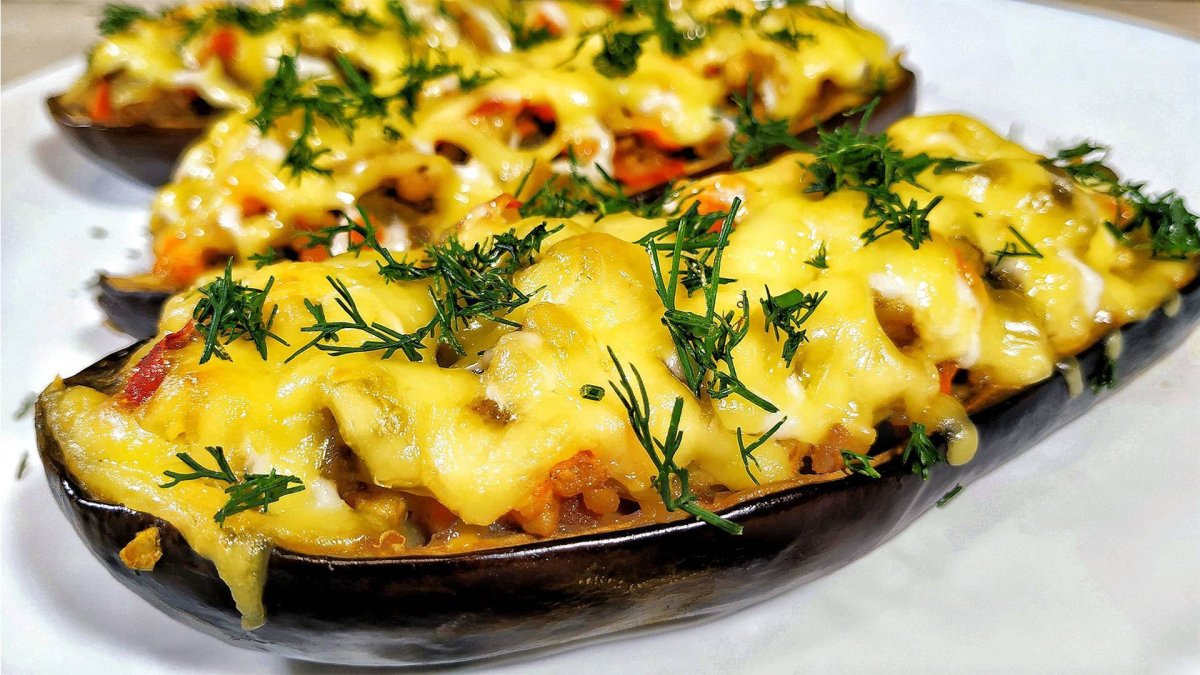 Баклажаны с фаршем и помидорами запеченные в духовке