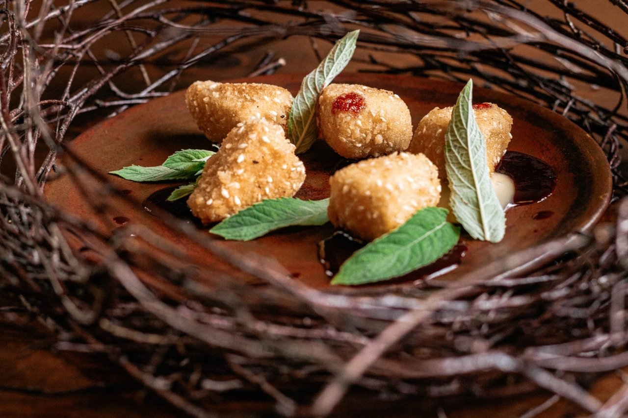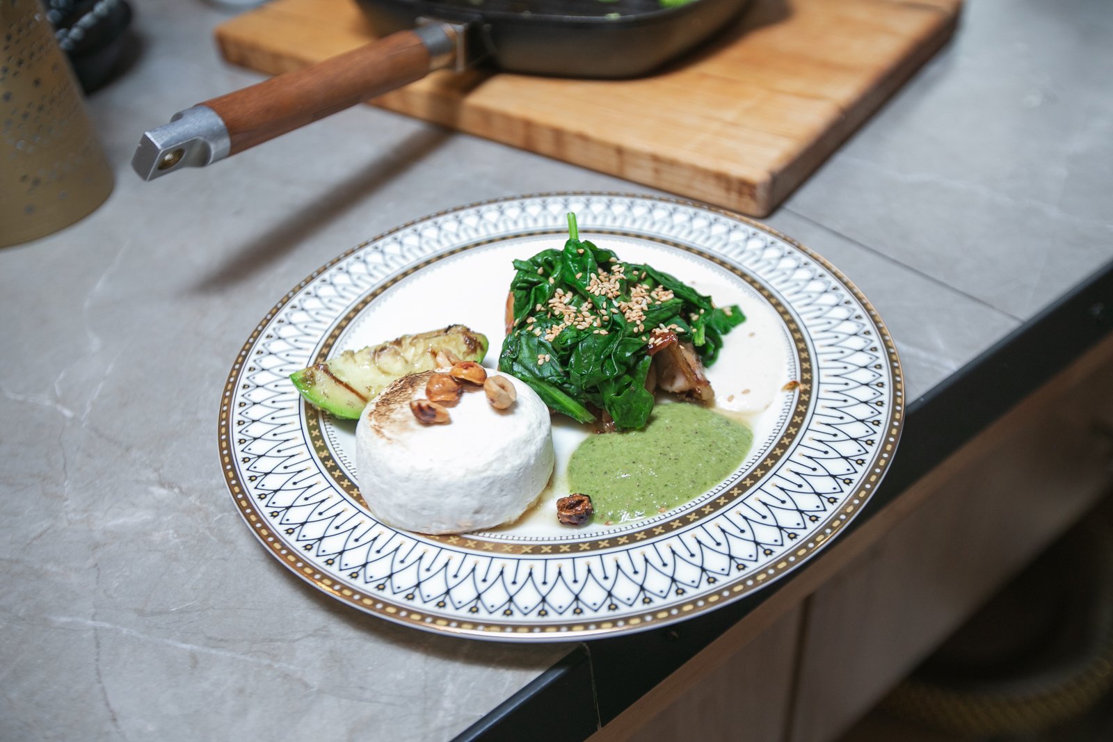 Брынза с зеленью ресторанная подача