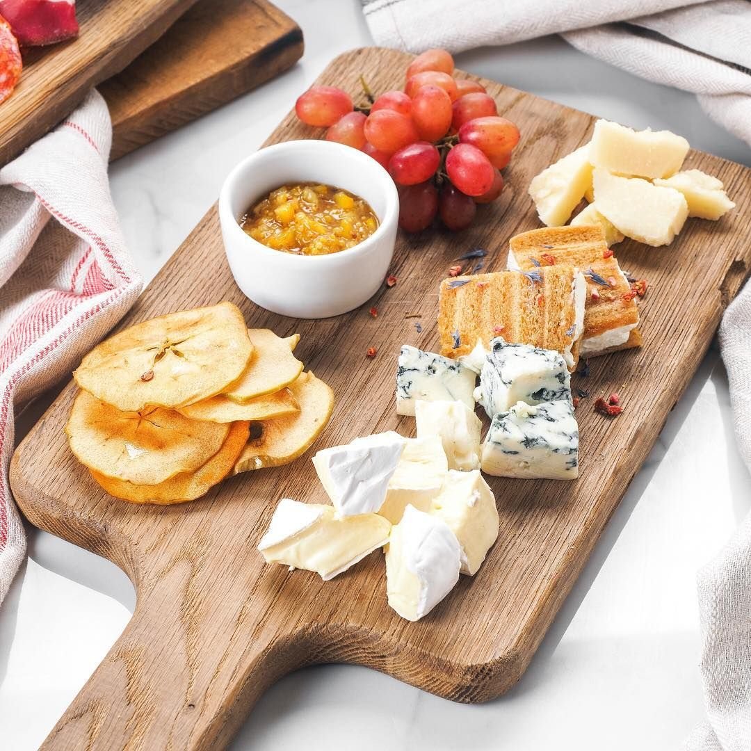 Сырная тарелка на деревянной доске